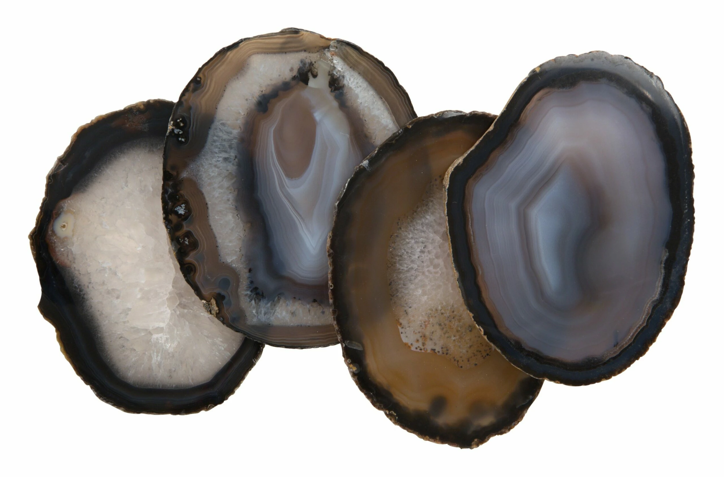With swirling patterns and striking hues, it isn’t hard to see why agate stones have been prized for ages. Add some of that organic beauty to your tabletop with a collection of our stunning Agate Coasters. Sliced from semi-precious stones formed from ancient volcanic lava, these partially translucent coasters have been polished to a smooth finish, enhancing their stunning ring-like striations. For a touch of contrast, their textured rocky edges have been left untouched. Perfectly sized for a mug or a cocktail glass, our Agate Coasters are so pretty you’ll want to leave them out on the coffee table or bar even when you’re not putting them to use. With natural colors and shapes formed by the earth itself, each is unique.