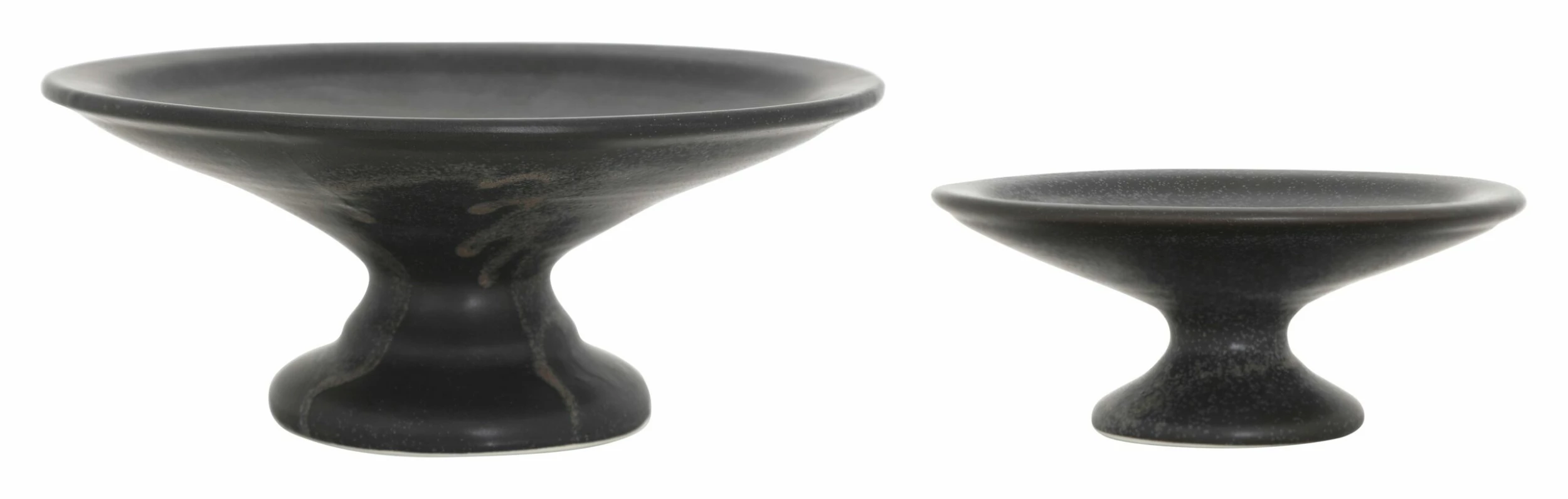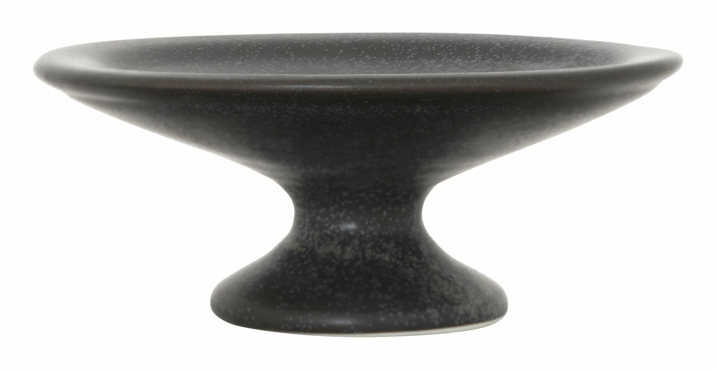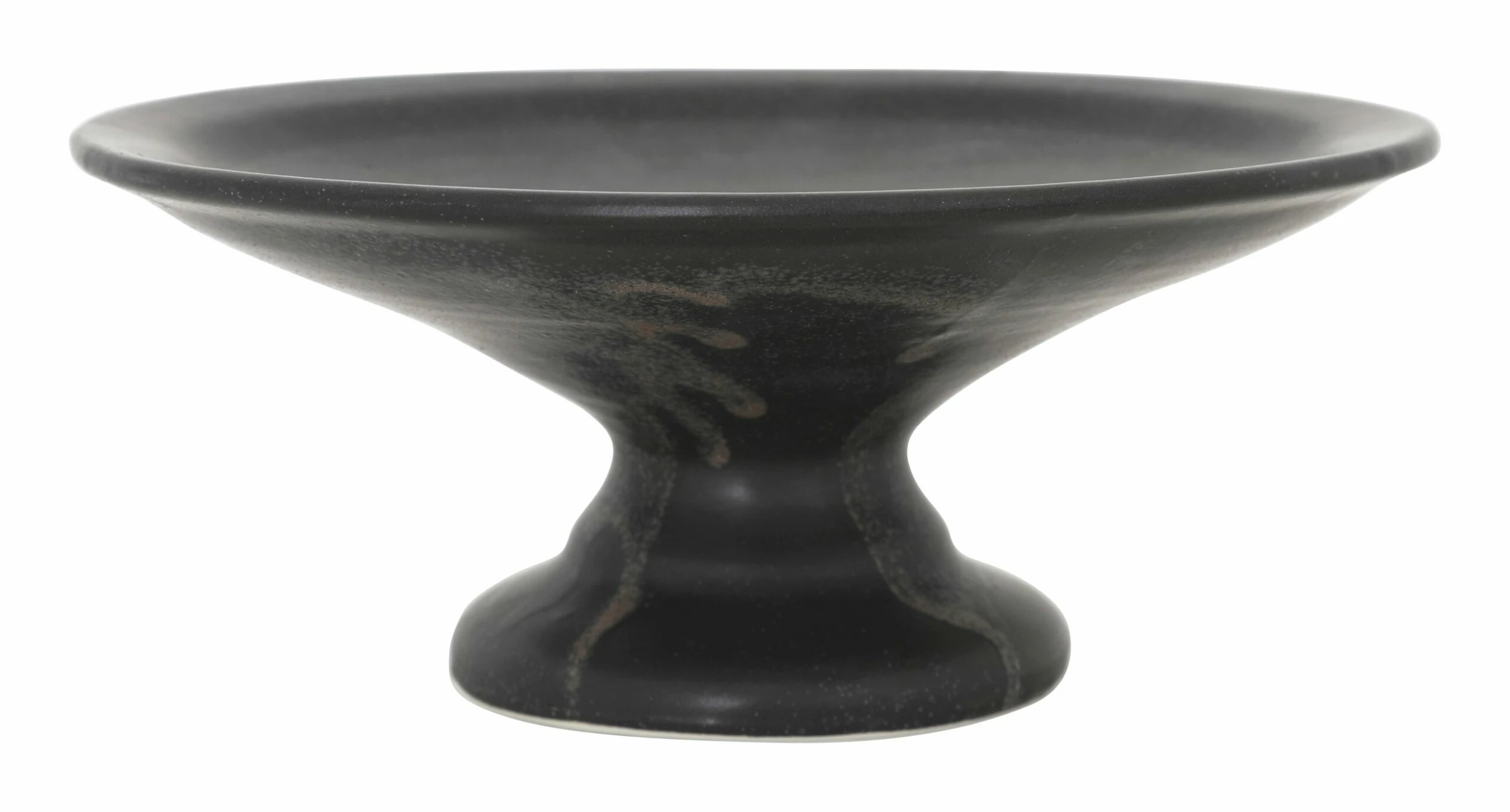 Give your tabletop a boost in height and style with our simple Apollo Footed Bowls. Sleek and streamlined in form, these pedestal dishes are crafted from stoneware and finished with a matte mottled black glaze. Perfect for serving up nuts and candies on the coffee table, we also love these vessels as catchalls for odds and ends on the entryway console, dressing table or powder room counter.