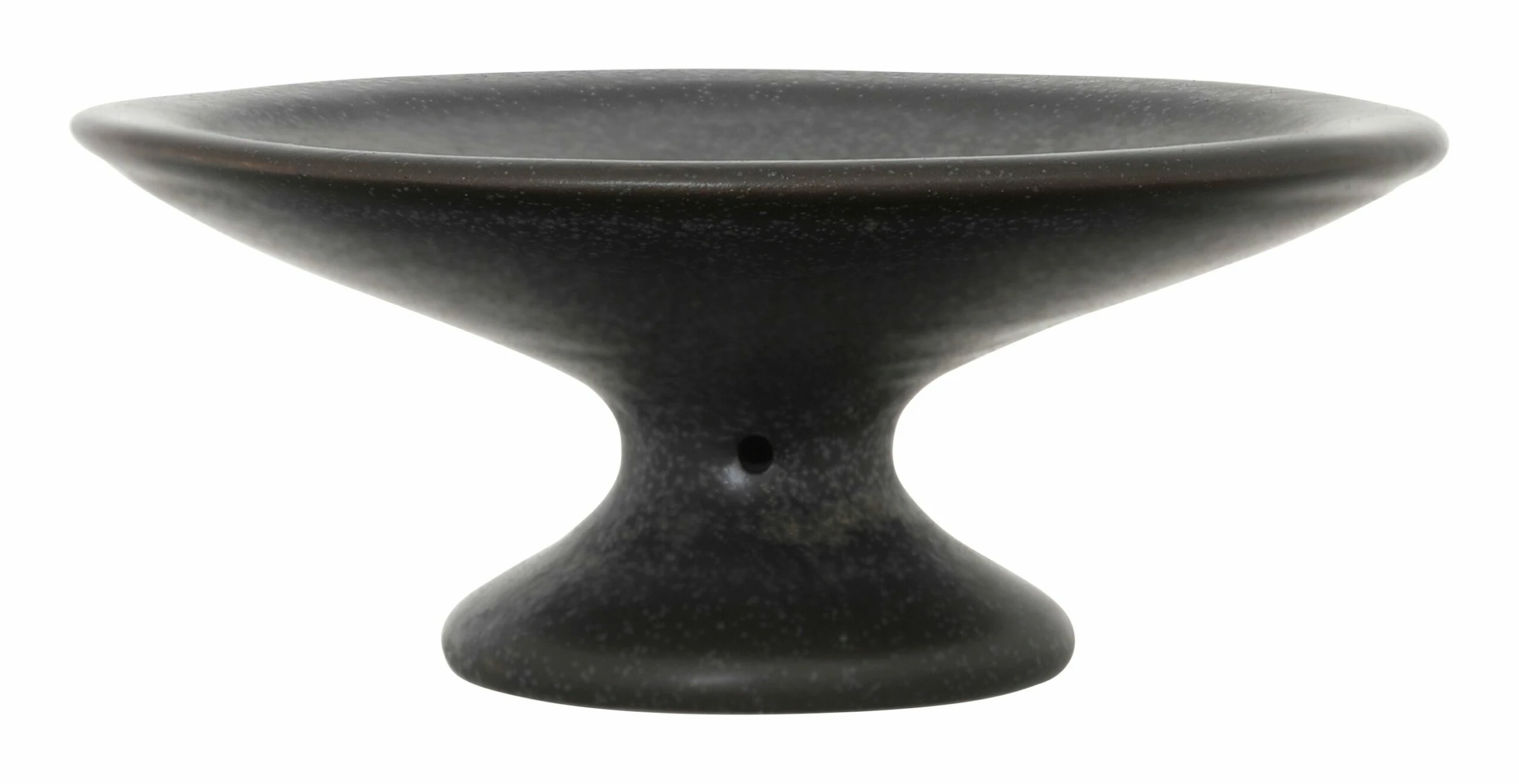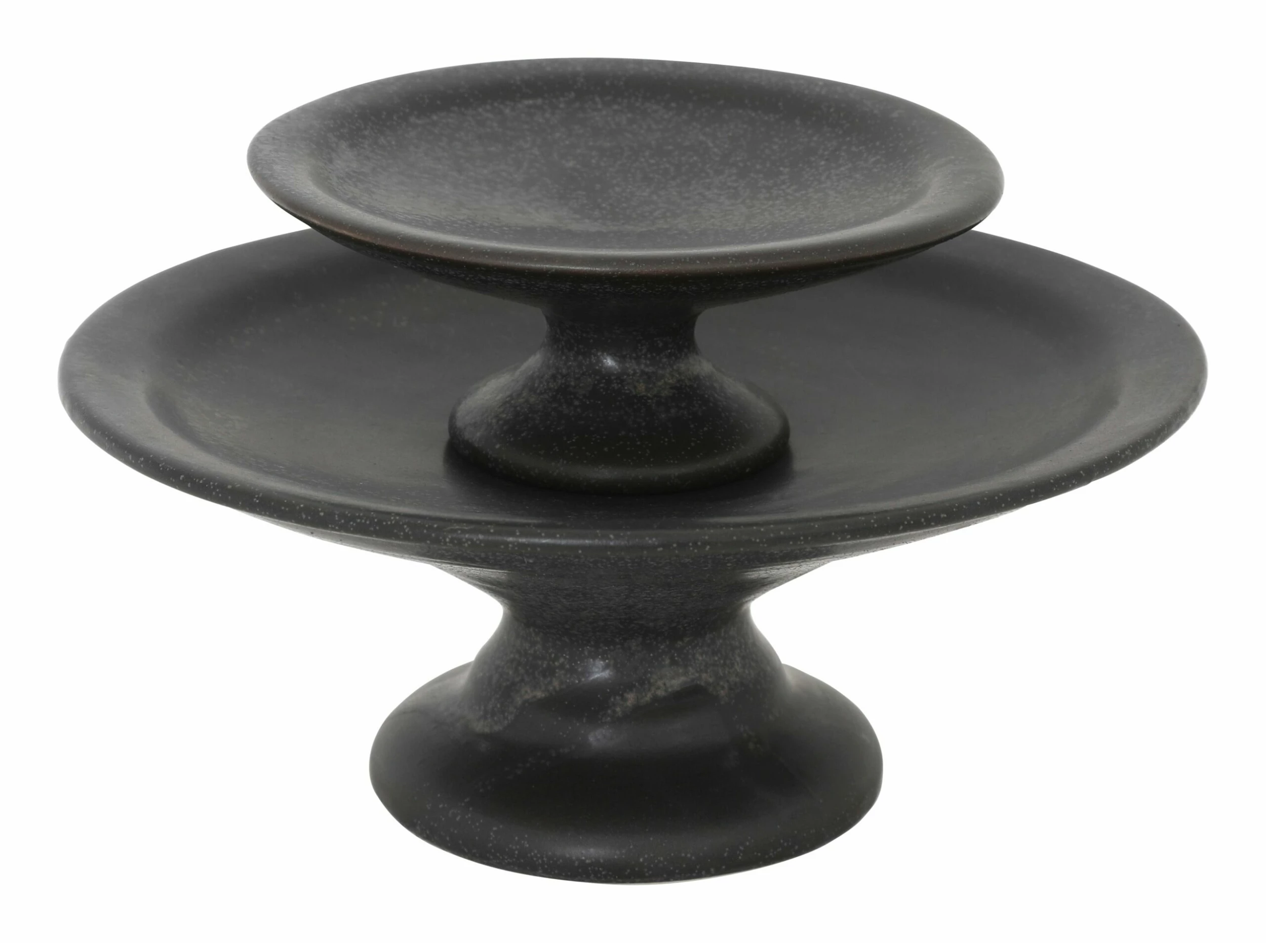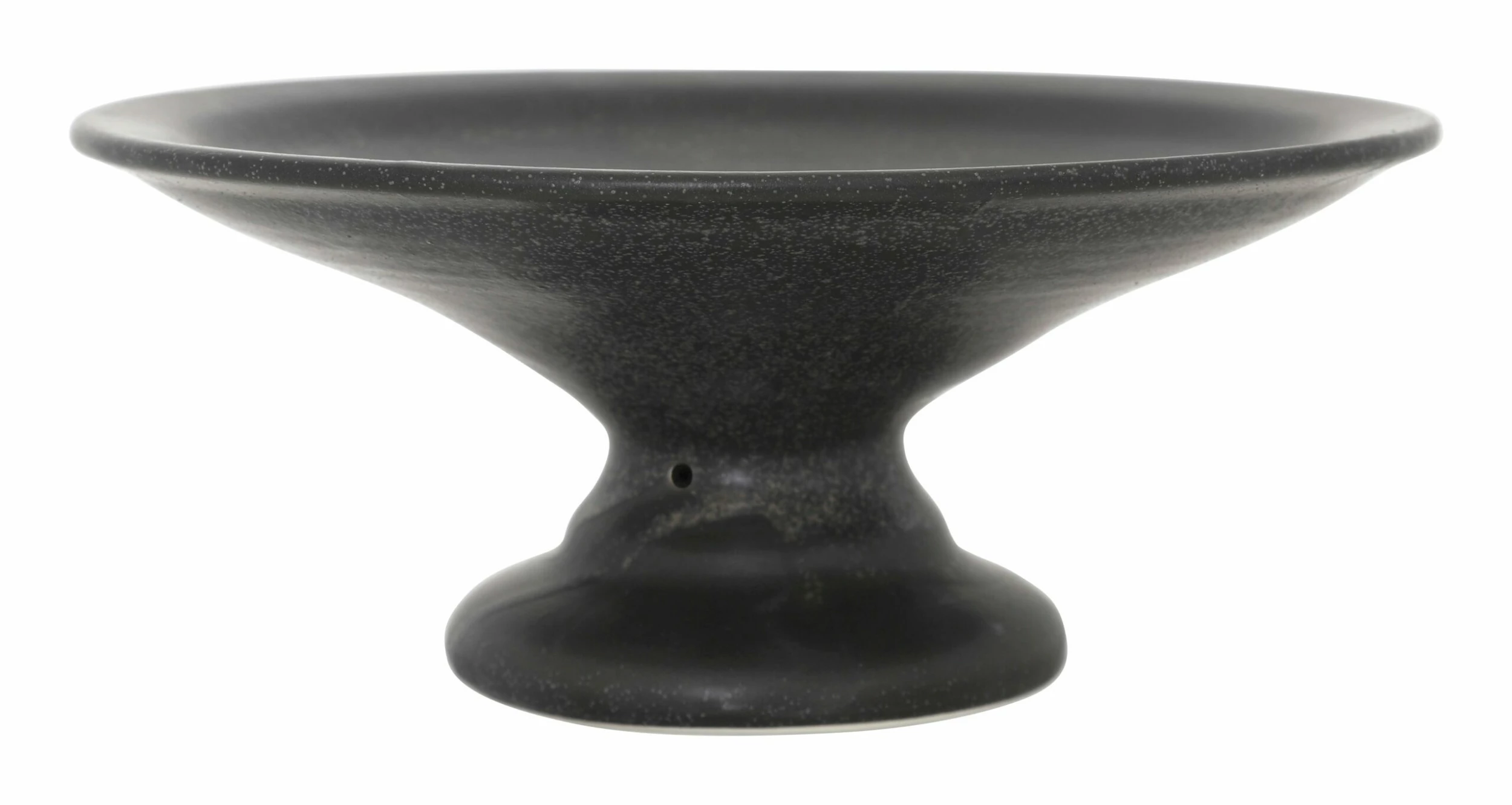 Give your tabletop a boost in height and style with our simple Apollo Footed Bowls. Sleek and streamlined in form, these pedestal dishes are crafted from stoneware and finished with a matte mottled black glaze. Perfect for serving up nuts and candies on the coffee table, we also love these vessels as catchalls for odds and ends on the entryway console, dressing table or powder room counter.