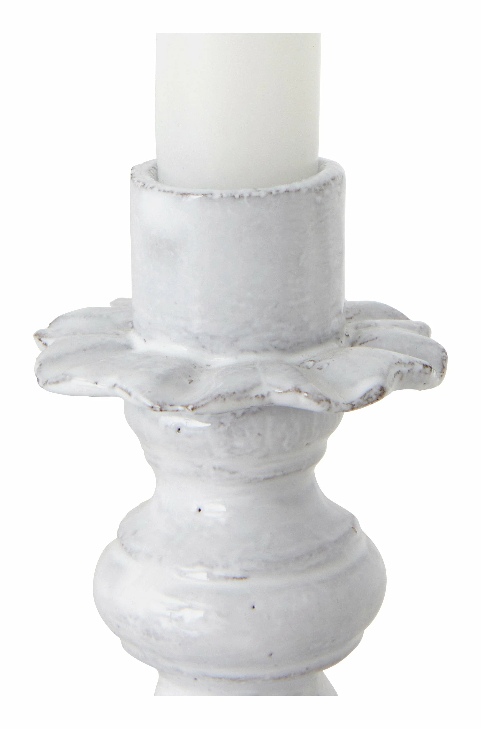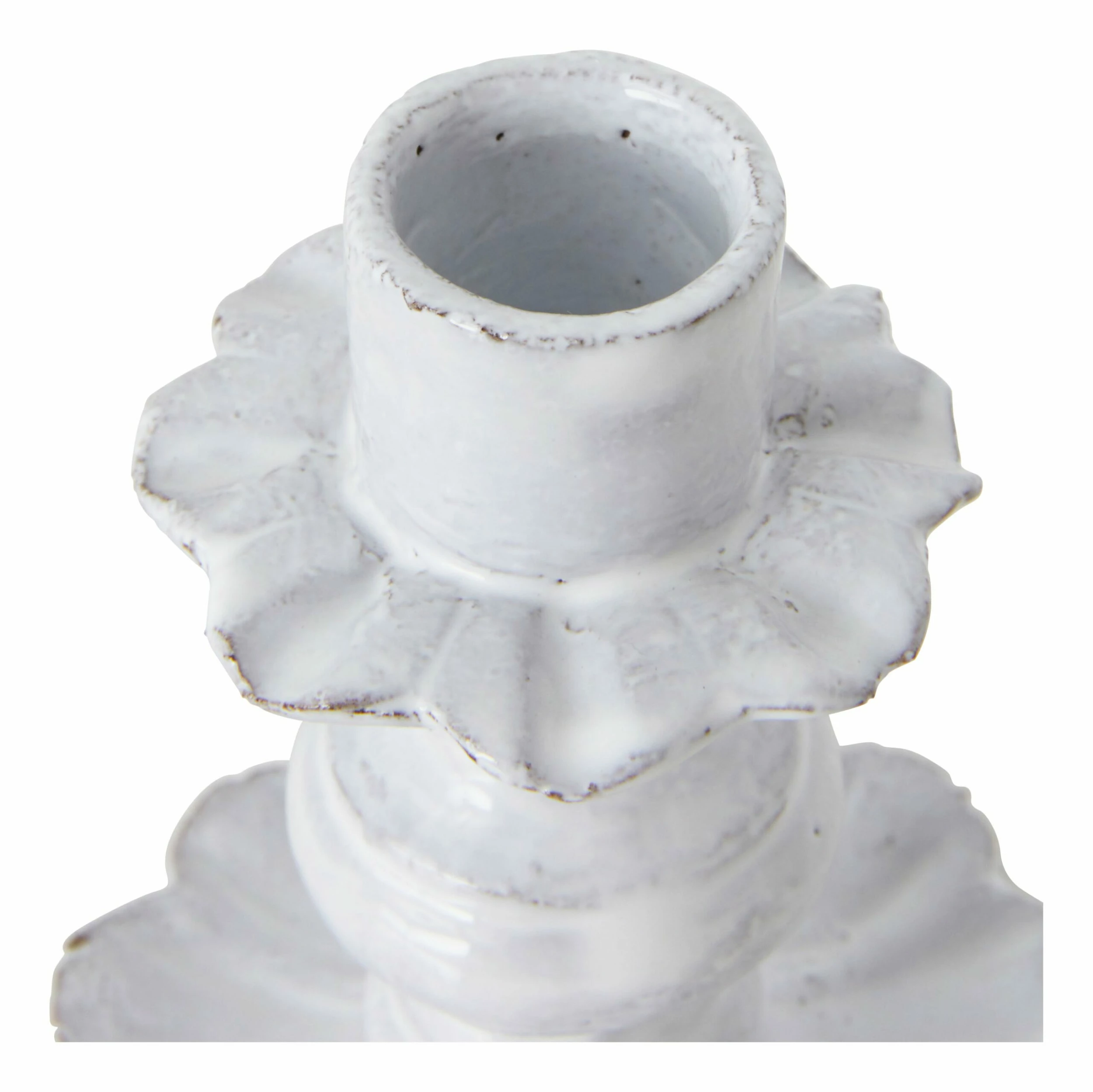 Cast an enchanting glow on your tabletop with the help of our Astier de Villatte Fifi Candleholder. From legendary ceramicist Astier de Villatte, this petite taper holder was handcrafted in Paris from black terracotta clay following old-school methods and finished with the brand’s signature milky white glaze. Small in size, its elegant silhouette and ruffled, flower-like details give it vintage charm in spades. Perfectly sized for a standard taper holder, our Fifi Candleholder would be perfect mixed in with a posh tabletop vignette or mixed in with florals and a few of our other Astier de Villatte Candleholders on the dining table for a timeless centerpiece display.