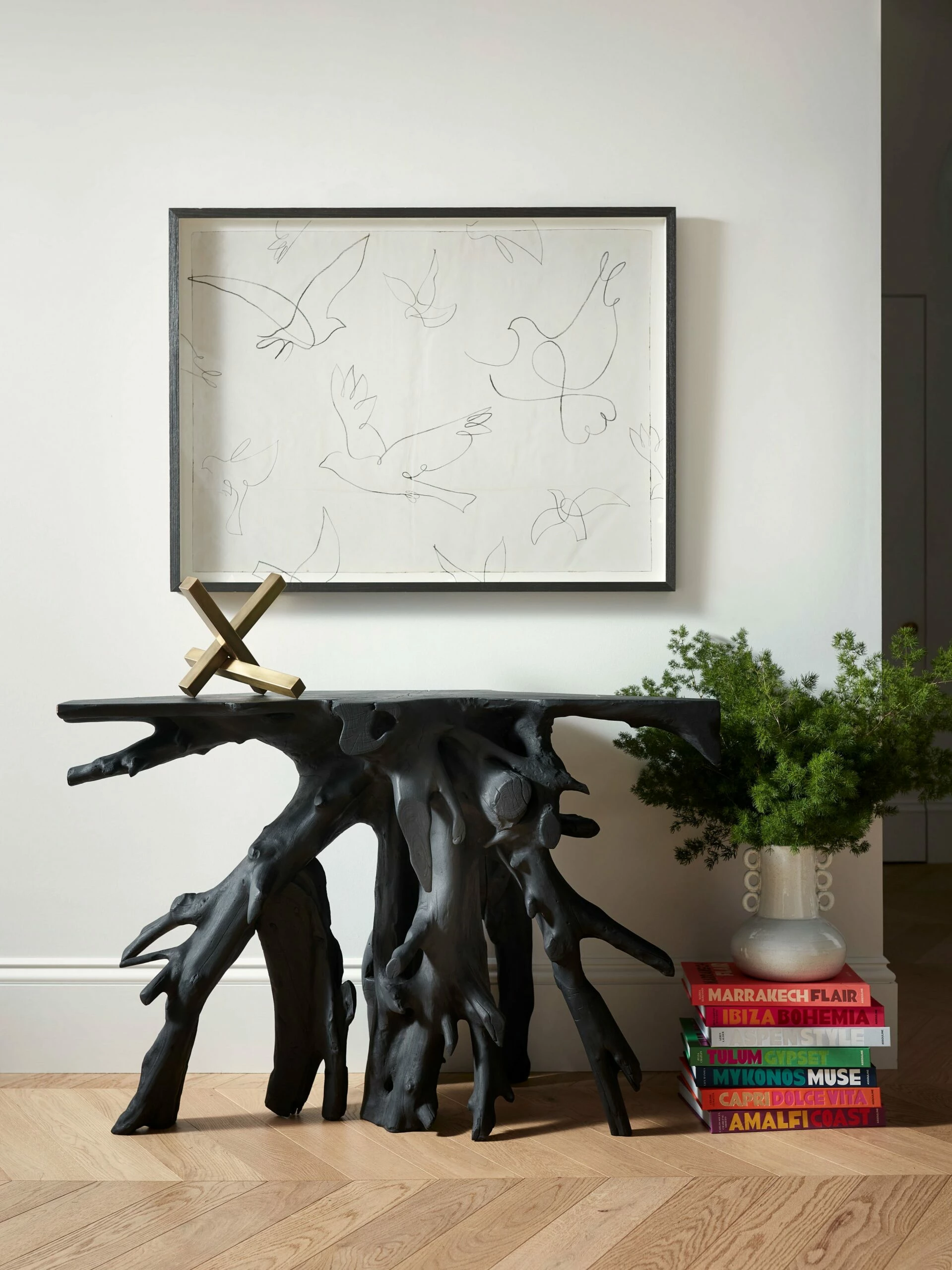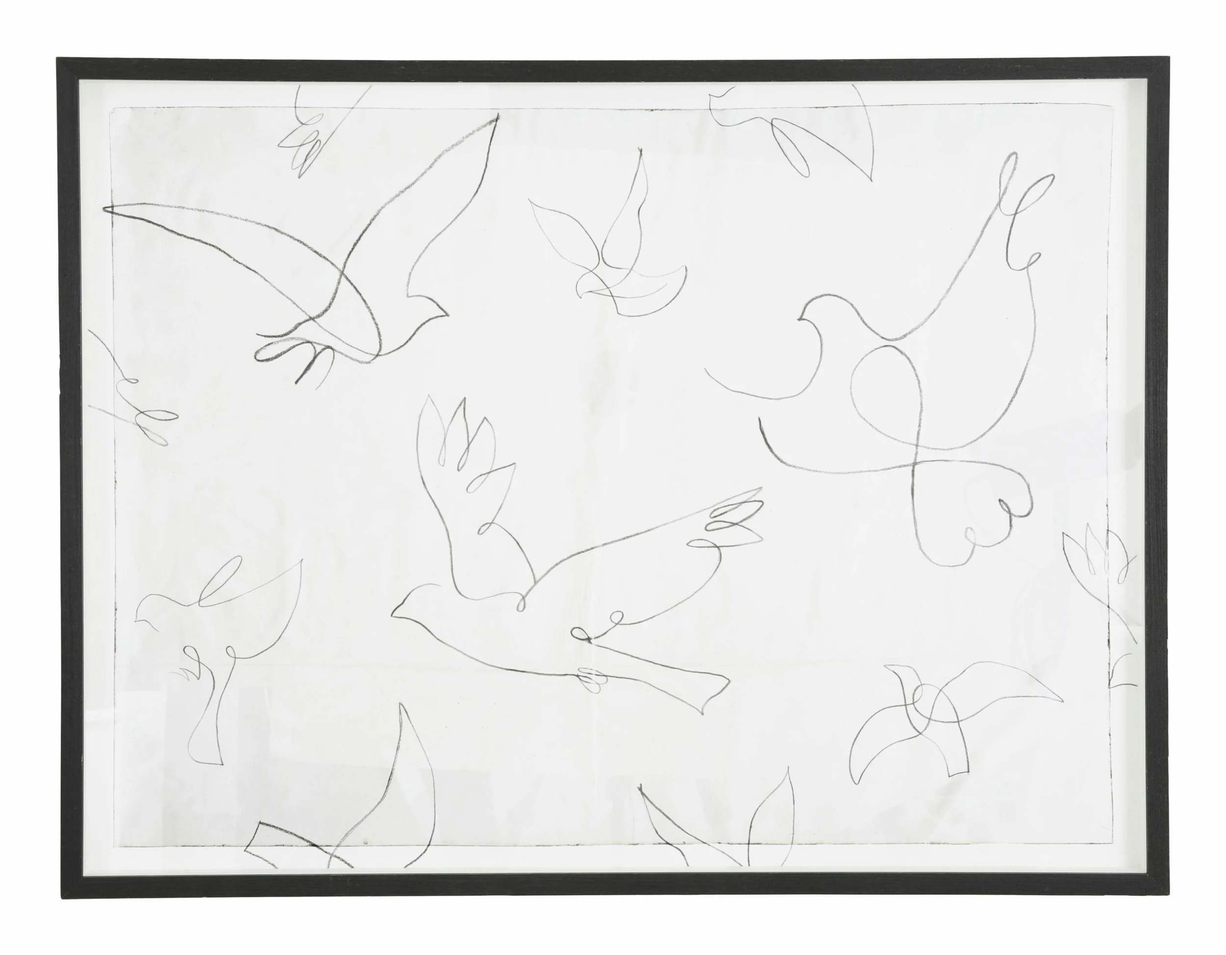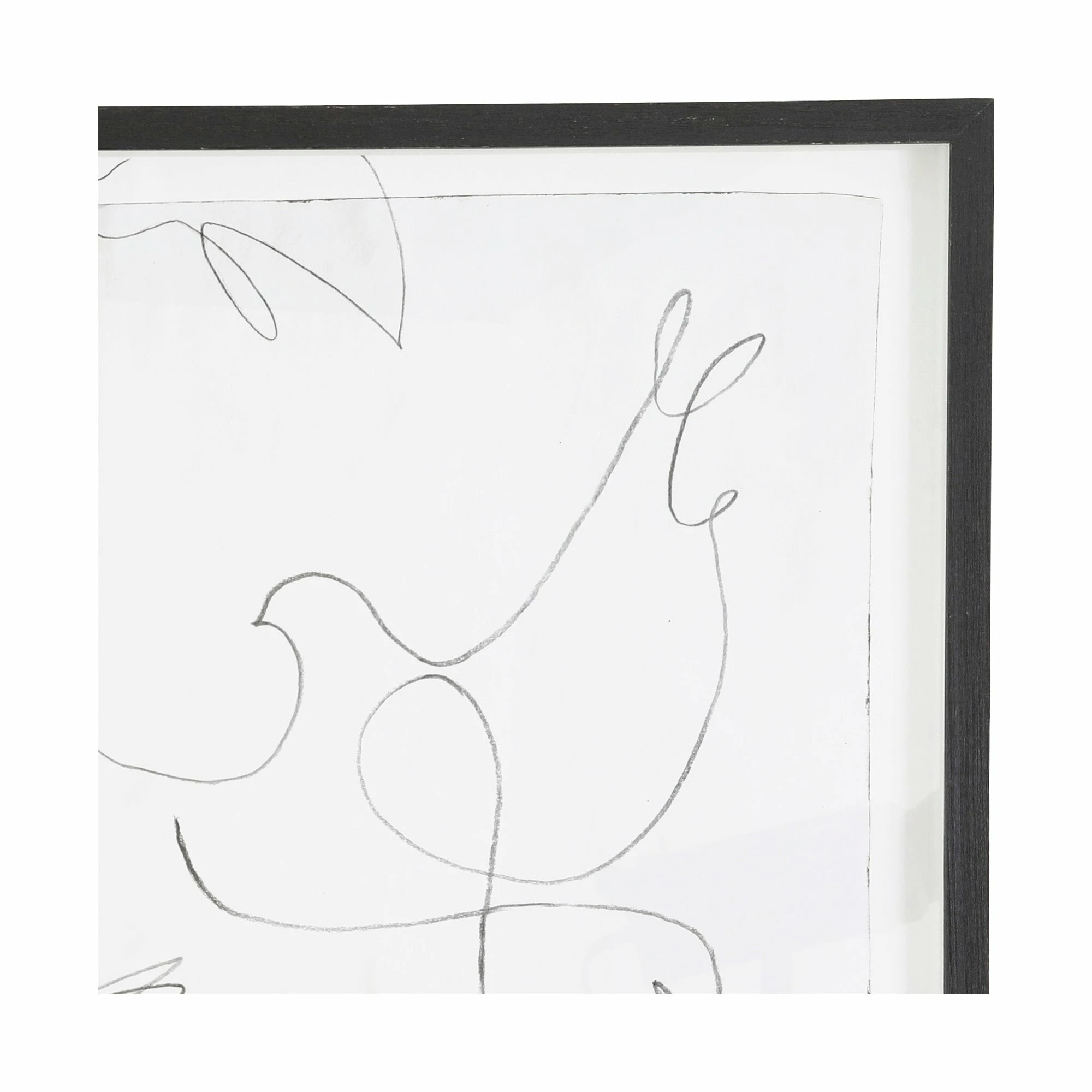 Bring your walls to life with our Aviary Gestural Sketch. Minimal yet full of movement, this giclée print features a flock of simple, stylized birds in flight drawn with continuous, looping lines for a dynamic feel. We’ve displayed it in a sleek black wood frame, which keeps the viewer’s eye focused on the piece itself. The perfect finishing touch for any modern space, we love our Aviary Gestural Sketch hung on its own or mixed in with other works in a similar, monochromatic palette for a collected feel.