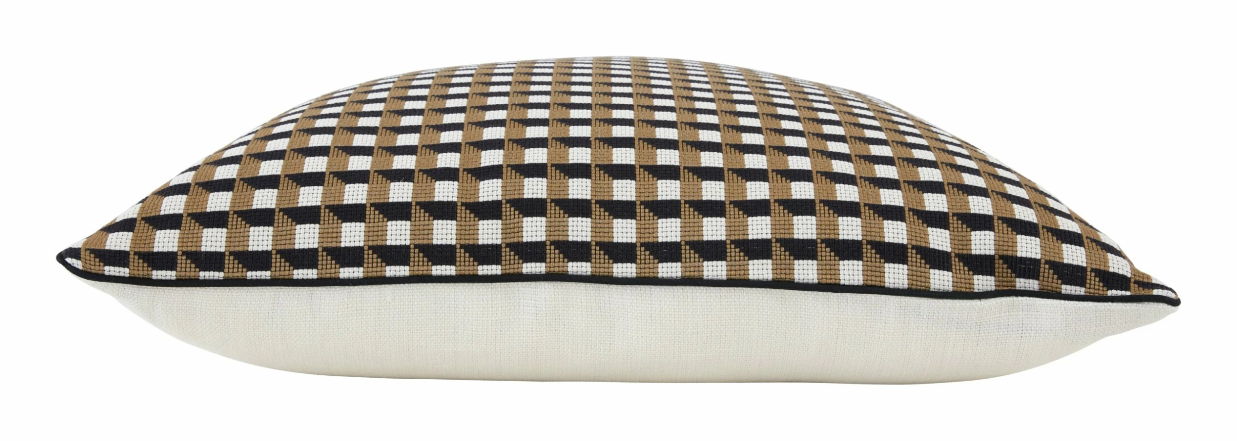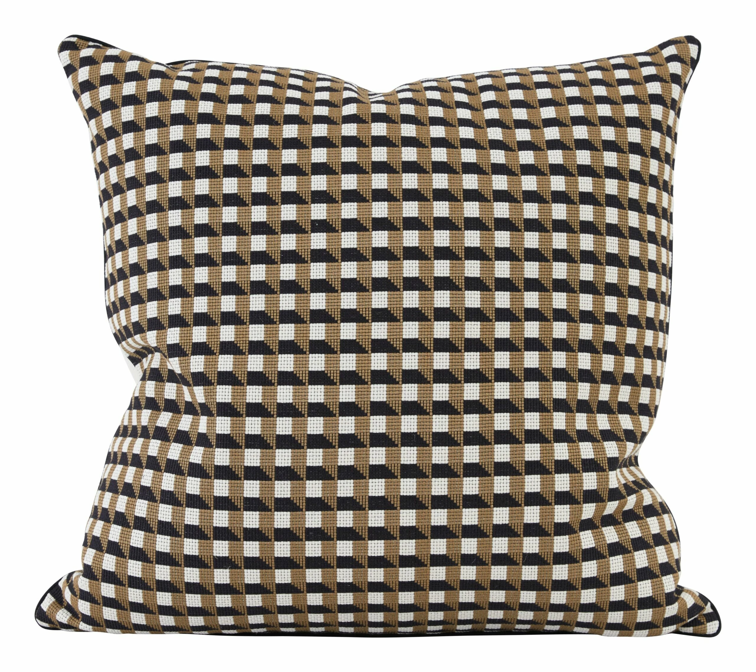 With its classic pattern and goes-with-everything palette, our Barrett Pillow is the perfect way to add a pop of geometry to any space. Simple yet oh-so-cool, Barrett is covered with a blocky, grid-like pattern in white, black and goldenrod. We’ve finished it with a solid white line backing fabric, matching black piping, a hidden zipper closure and a soft down and feather pillow insert for a plush feel. A seamless addition to any modern home, w love it as a single on a cozy armchair or mixed in with other layers in similar hues on the sofa or bed. Â