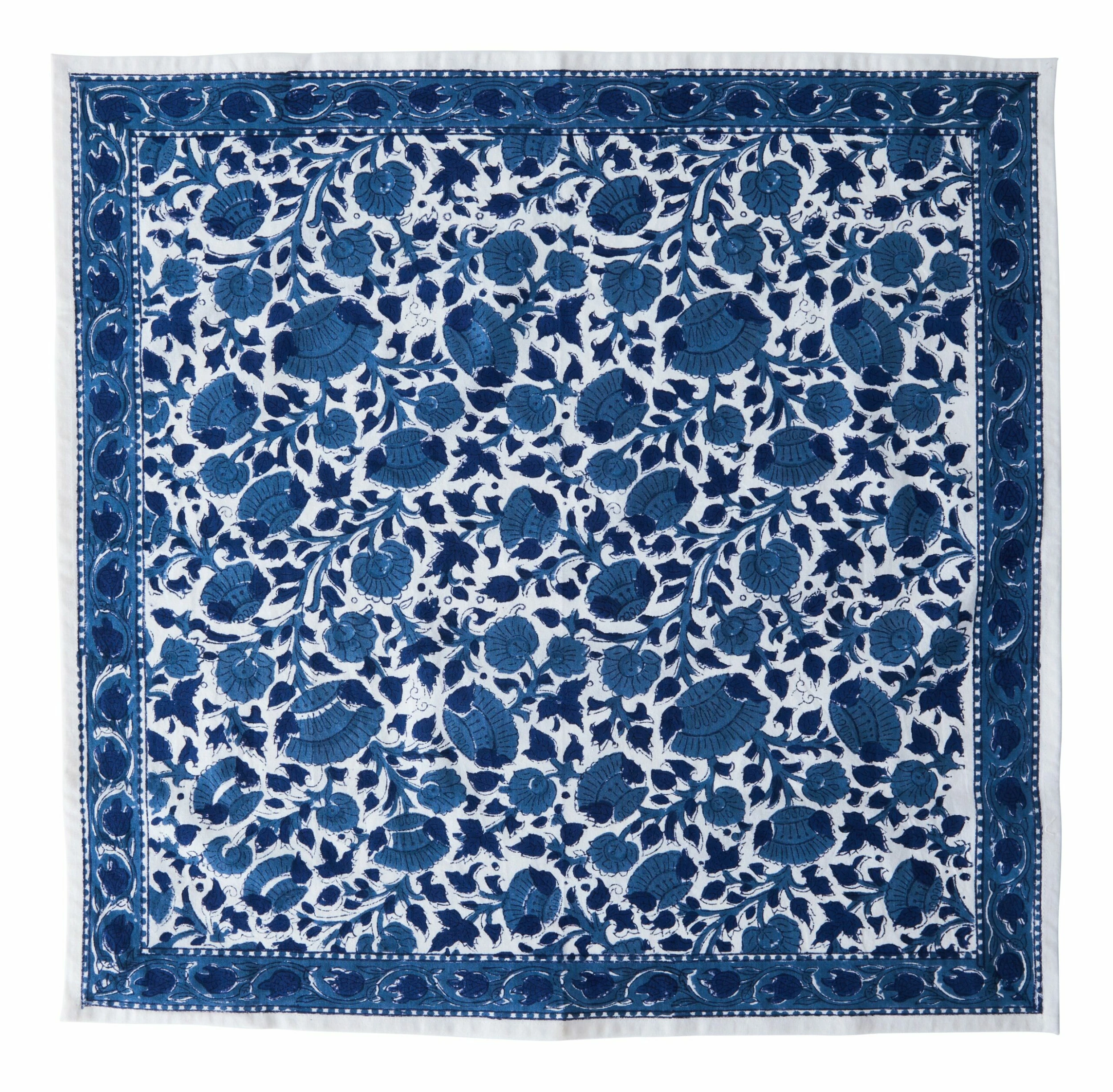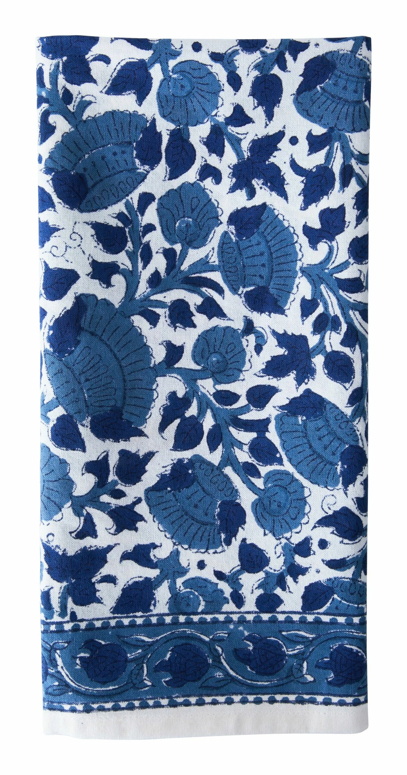 Is there a color combination more perfect than blue and white? We certainly don’t think so. Bring this fresh palette to your place settings with our global-chic Bixby Napkins. Handmade in India from soft, lightweight white cotton, these table linens are block-printed following traditional methods to feature a stylized floral design in shade of indigo. Great for entertaining and everyday meals alike, our Bixby Napkins are perfect for brightening up a casual kitchen table or mixed in with other vibrant table linens for a festive summer fête. Â