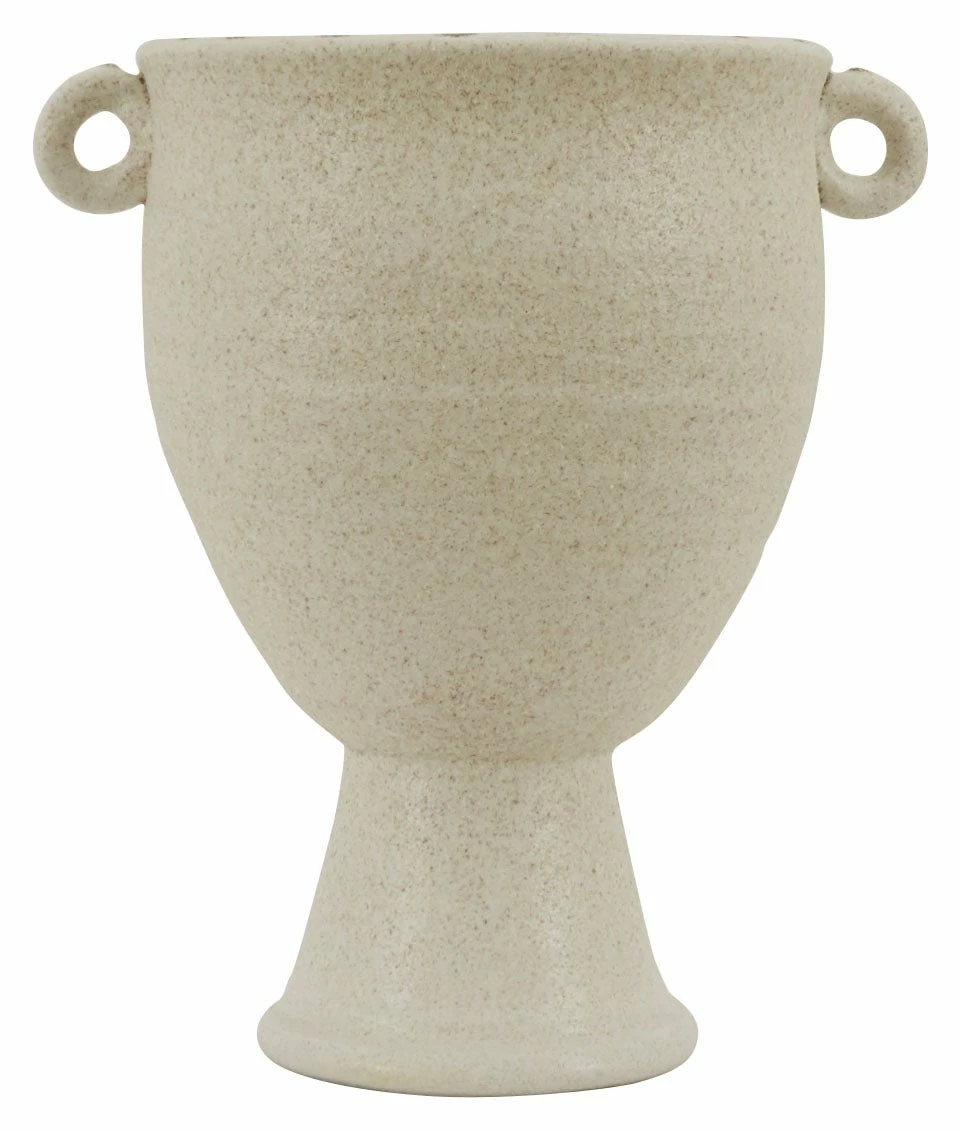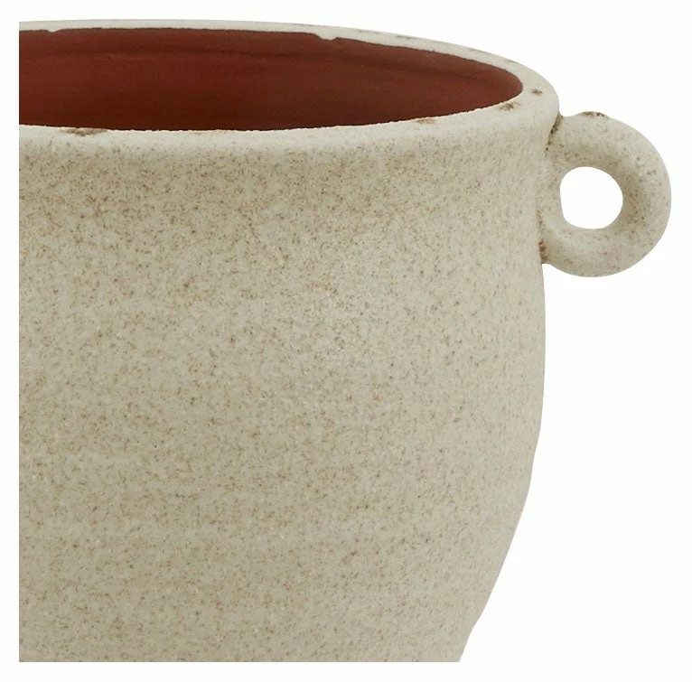 Our earthy Bram Urn makes the perfect companion for your flora. Crafted from terracotta, this simple footed vessel gets a touch of extra character thanks to its textured cream glaze and charming circular handles. Pretty all on its own, we love Bram as a cachepot for a lush leafy houseplant when paired with a liner.