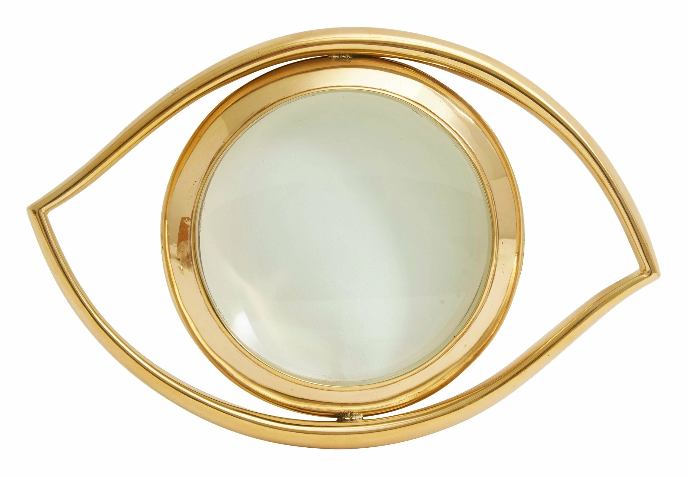 Get a close-up look at the fine print with our clever Brass Eye Magnifying Glass. This vintage-inspired desk accessory is modeled after the iconic Eye of Cleopatra Loupe, originally created for Hermès by French artist and designer Jean Cocteau in the 1960s. Pretty and practical, it’s crafted from solid brass, set with a round magnifying glass at its center. Our Brass Eye Magnifying Glass makes a useful addition to any workspace, perfect as a chic paperweight or for enlarging any small text you may encounter. We also love it on the coffee or end table as a stunningly unique accent.