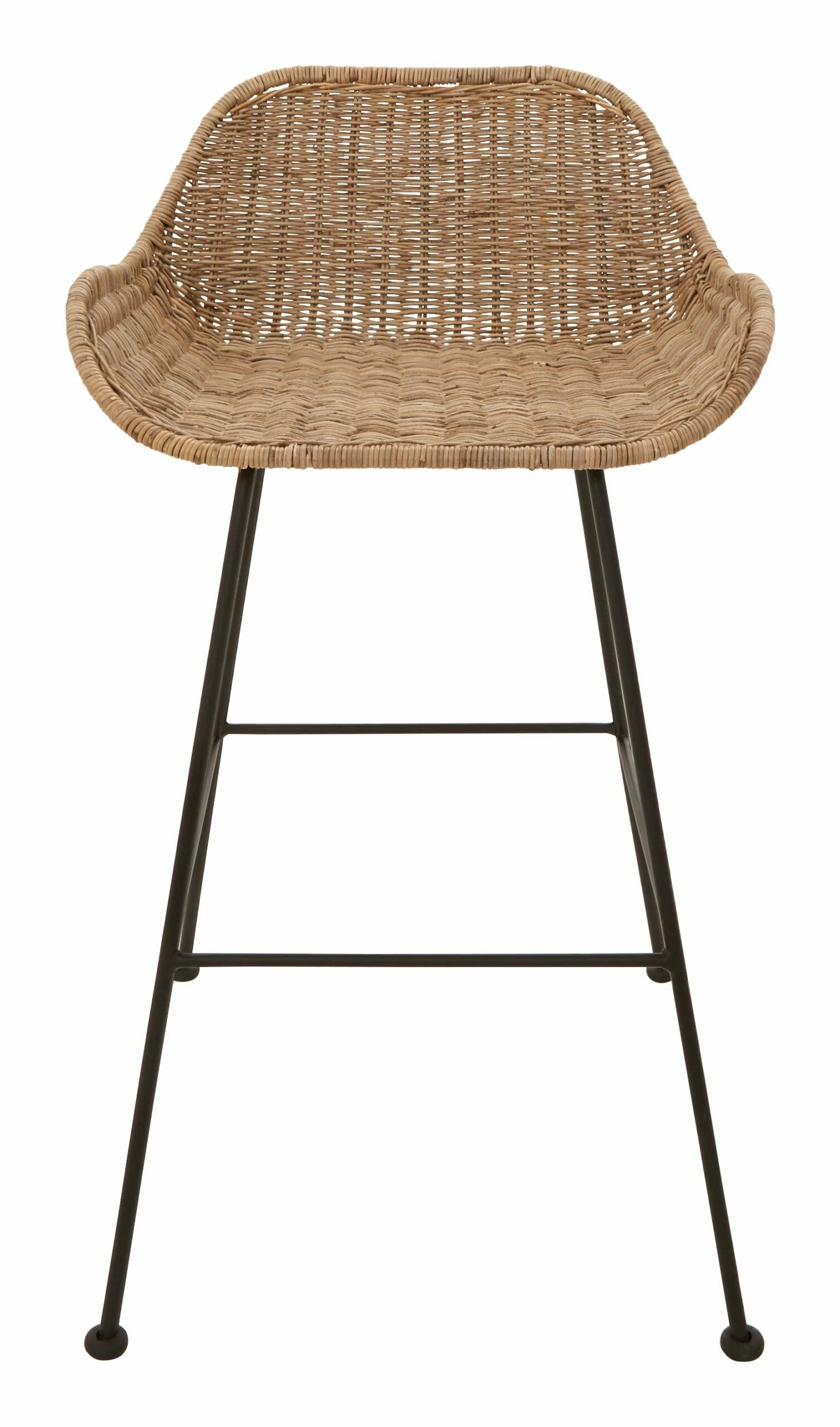 Our Brisbane Counter Stool strikes the perfect balance of earthy and modern. Sleek in design, this textural stool is crafted from woven rattan for a warm, natural feel and supported by a slim black iron frame for a bit of industrial-inspired contrast. Along with these striking good looks, it also features a supportive, sheltering seat, a low-lying back rest and a perfectly placed foot bar for a comfortable sit. Great for bringing a pop of mid-century style to any rustic space (or vice versa), we especially love Brisbane in multiples pulled up to a casual-chic home bar or kitchen island counter.