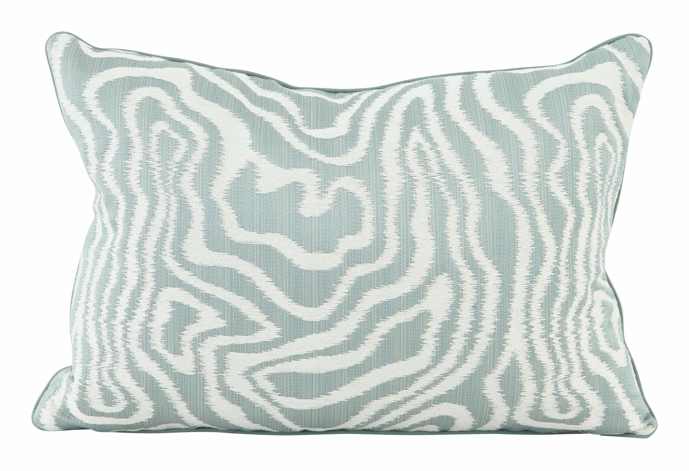 Add a fresh pop of pattern to any seat with our Brook Pillow. Crafted from cotton, this chic little lumbar pillow is covered with watery, abstract swirls in white and pale aqua hues. It’s finished with a neutral white linen backing, matching aqua piping, a hidden zipper closure and a soft down and feather pillow insert for a plush feel. The perfect finishing touch for a solid-colored armchair, we also love Brook mixed in with other layers in a similar palette on the sofa or bed.Â