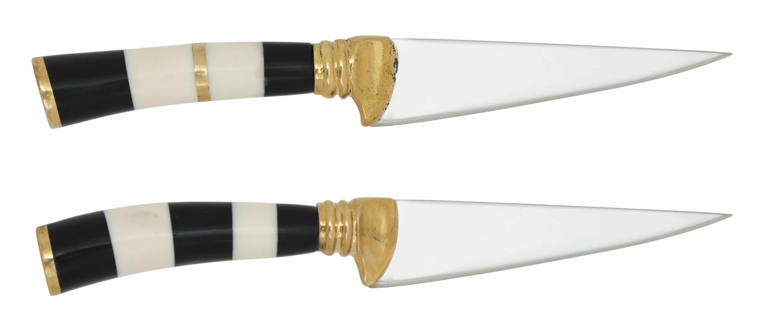 Upgrade your charcuterie board spread with our handsome Cedric Cheese Knives. These striking utensils are crafted from natural pieces of black and white horn with hints of bright brass for a bit of shine. Perfect for slicing cheeses and serving up spreads at your next get-together, our Cedric Cheese Knives would also make a thoughtful gift to your favorite entertainer — especially when paired with one of our chic serveboards.