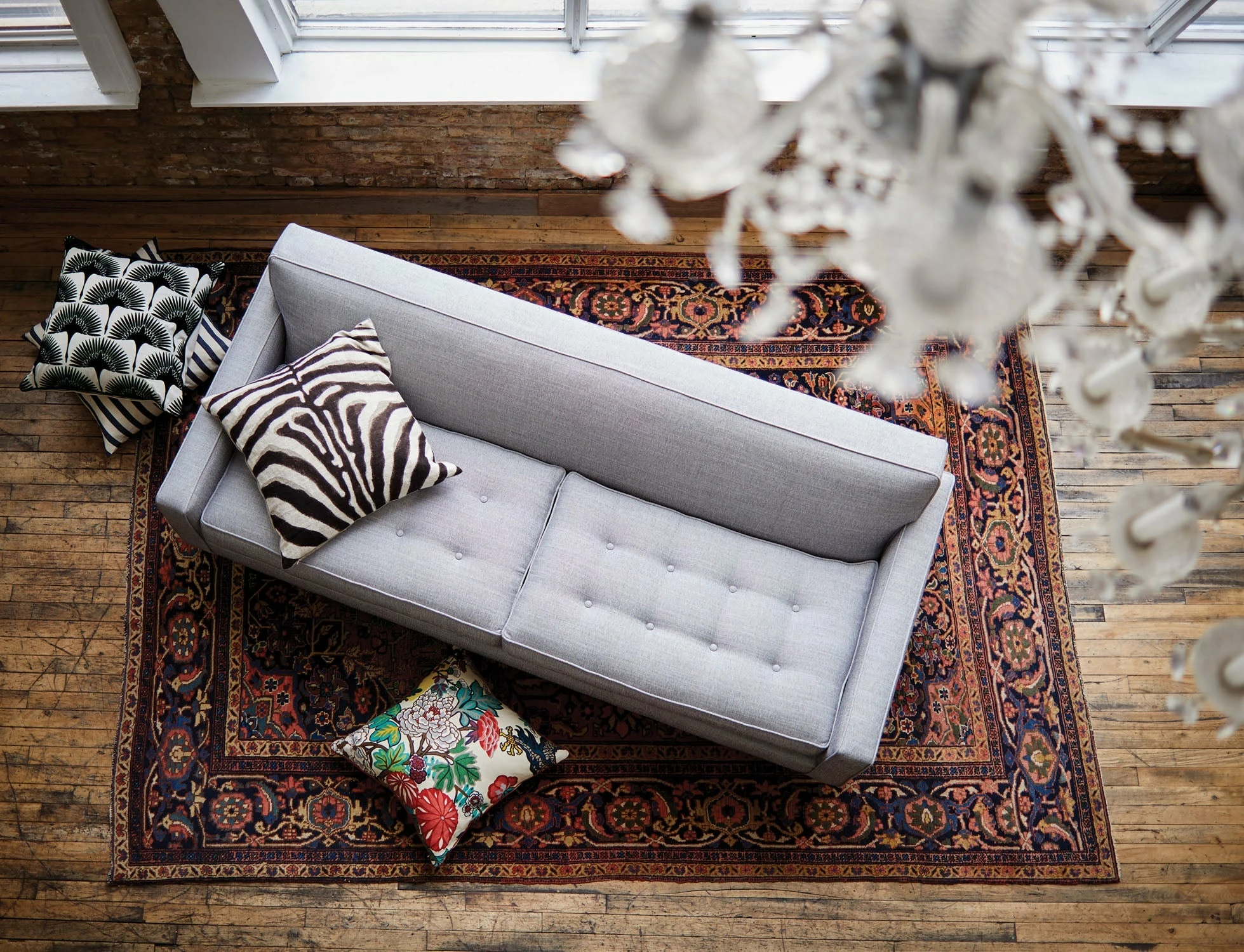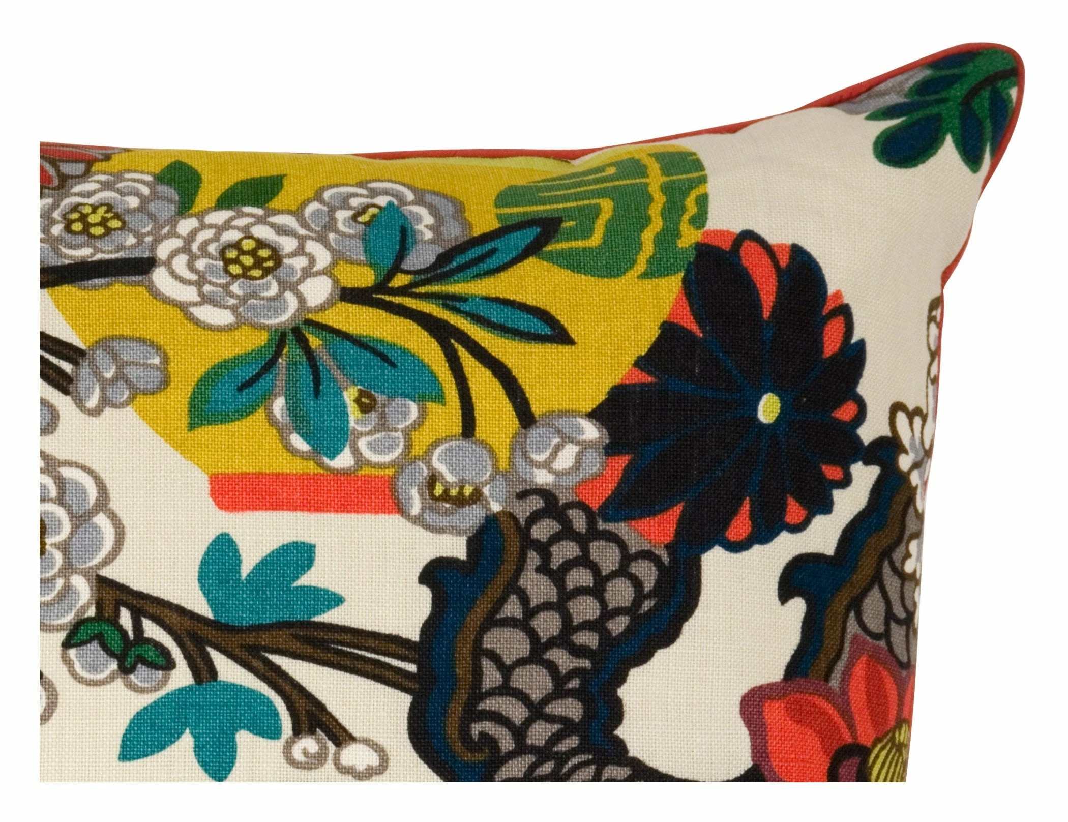 Change out a winter velvet with this striking linen print pillow to welcome spring and summer.