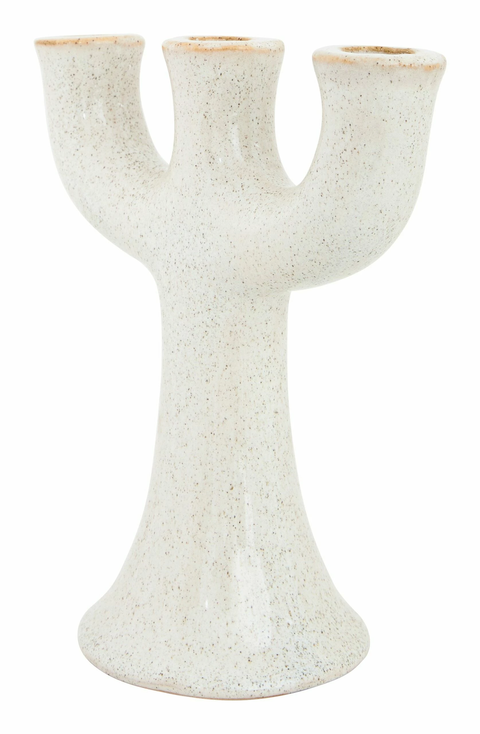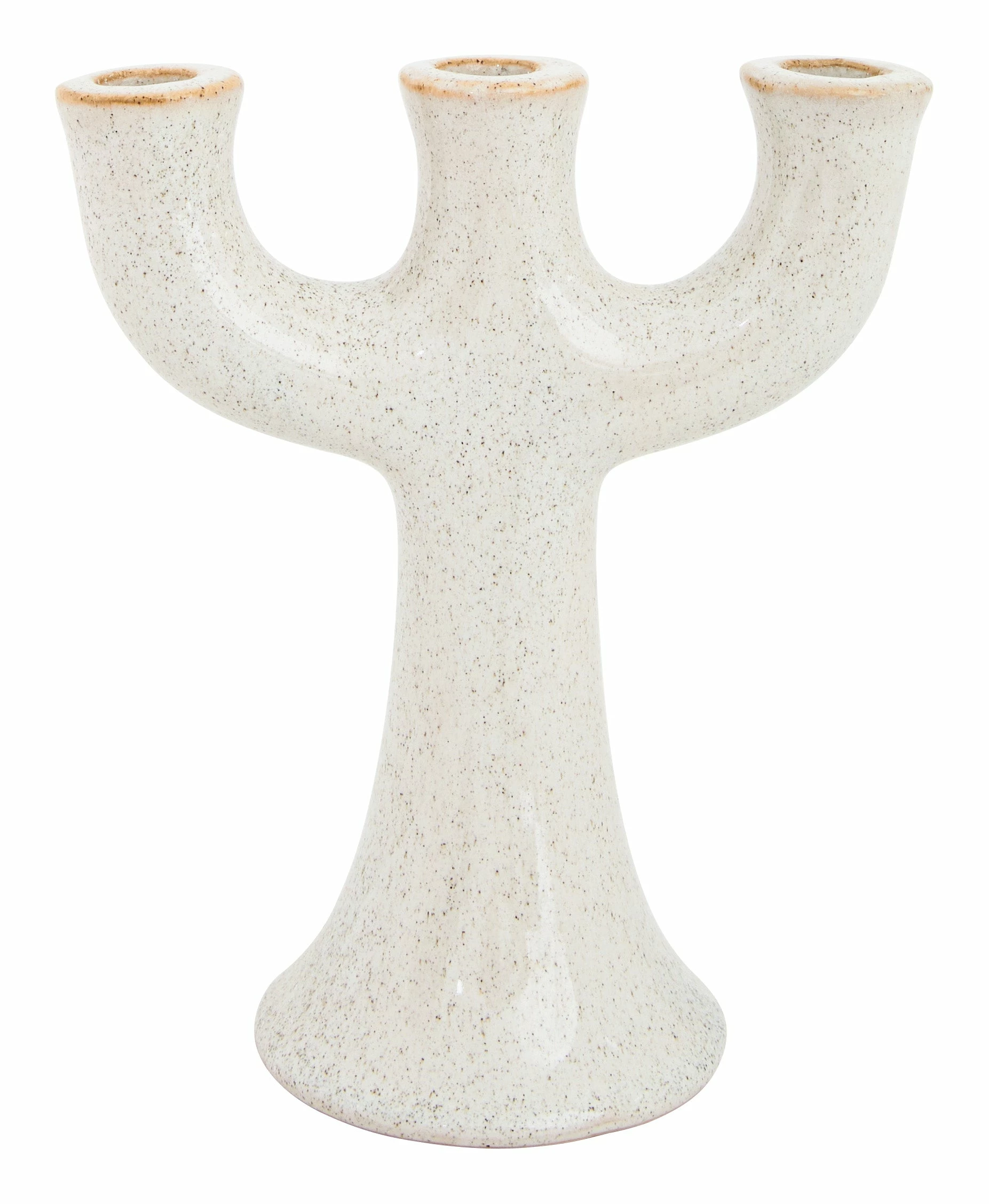 Cast a cozy candlelit glow on your tablescape with the help of our Coventry Taper Holder. A wonderfully unfussy take on the classic candelabra, Coventry is crafted from stoneware to hold three standard-sized taper candles. With its simple shape, charming rounded edges and glossy speckled cream glaze, it makes the perfect finishing touch in any organic-modern space. Add it to your dinner table’s centerpiece for a bit of height and laid-back style or mix it in with other tapers and tealights on the mantel for an effortless, eclectic feel.