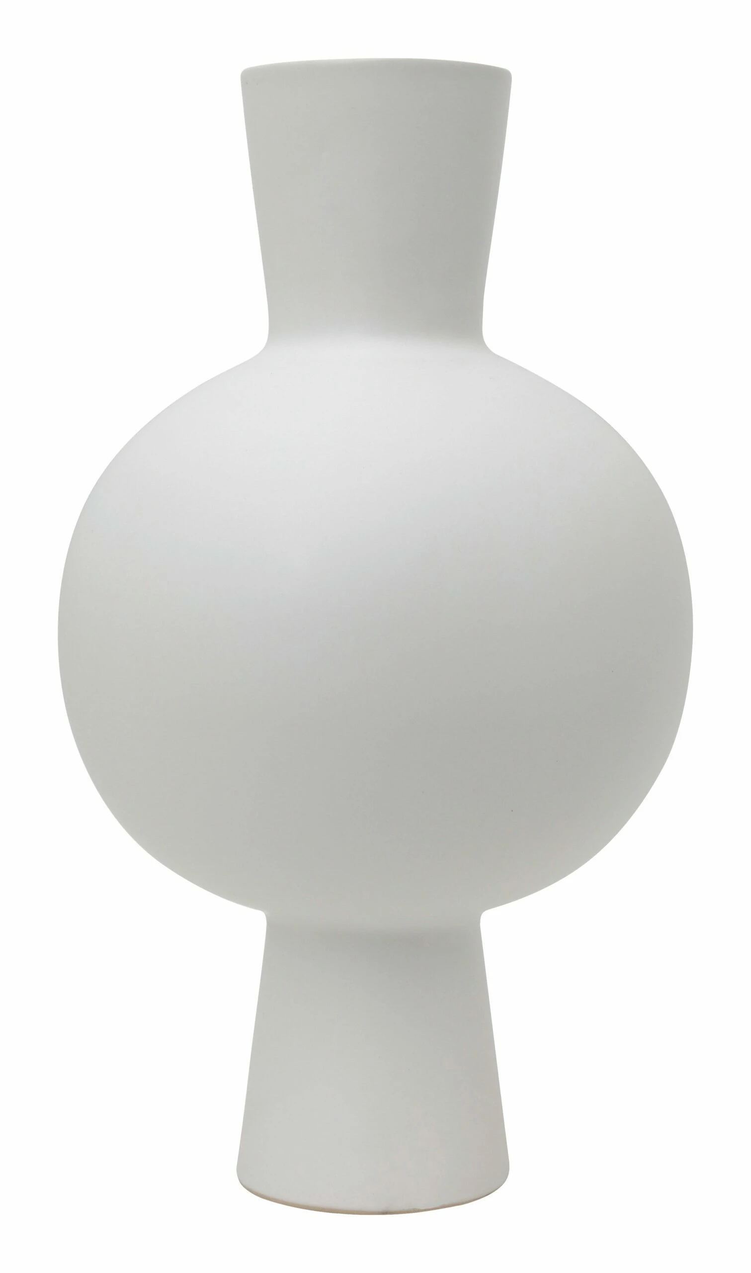 Our classic Crete Vase is simplicity at its finest. Minimal and modern in design, this stoneware vessel is formed into a curvy, spherical shape and coated with a bright white glaze that is reminiscent of Greece’s whitewashed architecture. Standalone perfection on a mantel, sideboard or console table, Crete would be even more stunning filled with an arrangement of earthy branches or textural dried grasses.