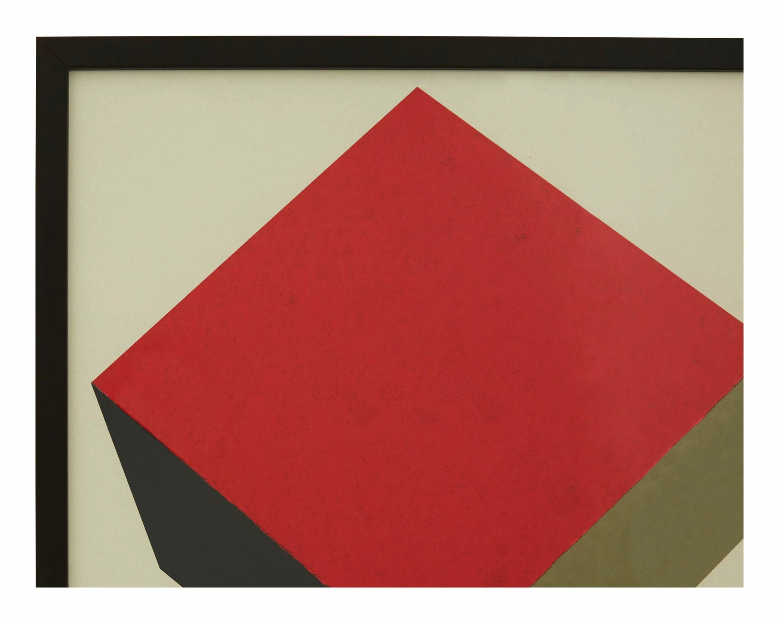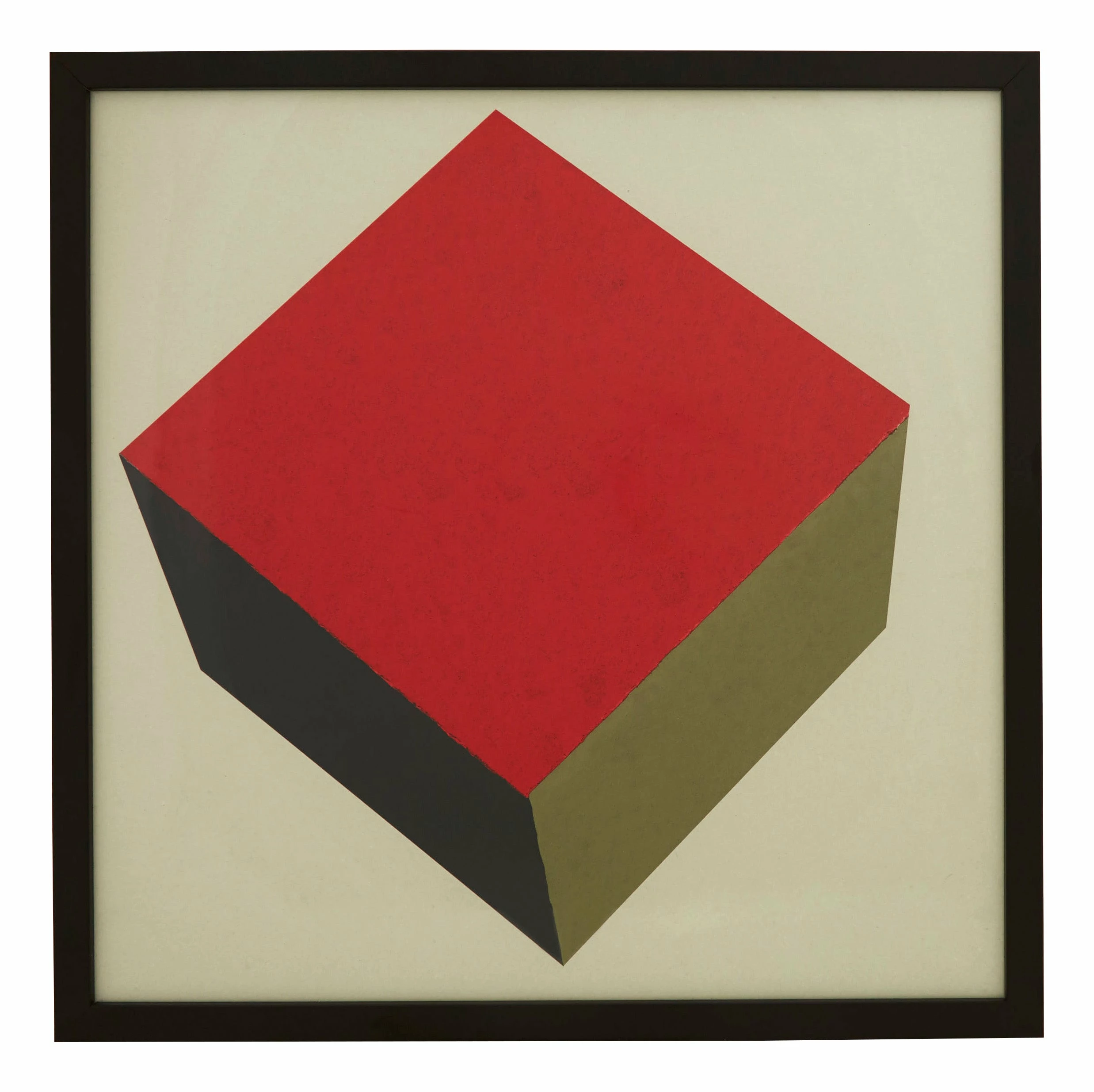 Add a geometric element to your walls with our striking Cube Study IV. Inspired in composition by an original mid-century era design, this striking giclée print features a simple cube in red, black and olive green, floated on a contrasting cream-colored ground. A clean-lined black frame makes the perfect finishing touch without pulling focus from the piece itself. An instant favorite in any art collection, we love it hung on its own or grouped with any (or all) of our other Cube Studies for a chic, modern installation.