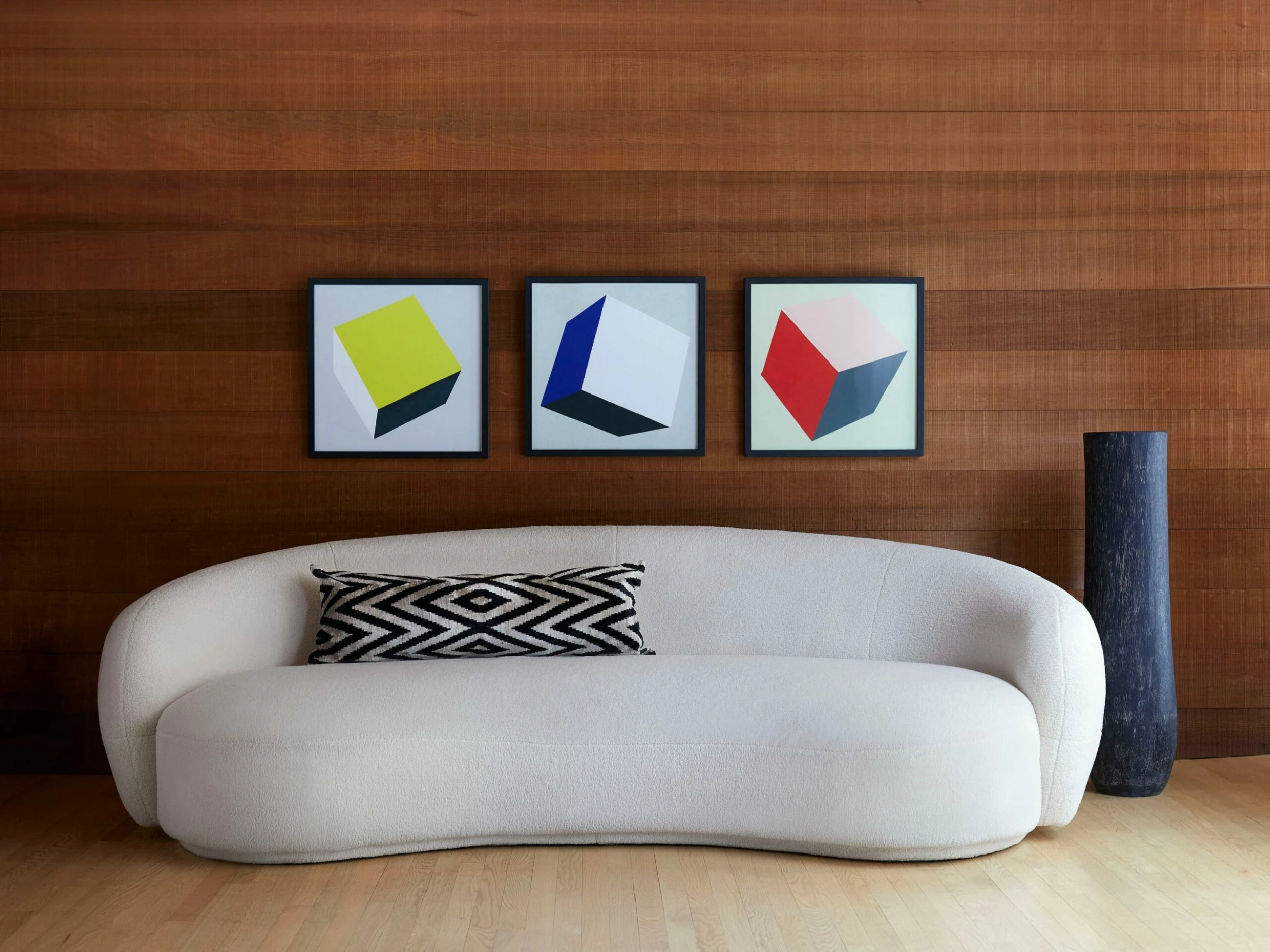 Wake up your walls with our geometric Cube Study IX. Inspired in composition by an original mid-century era design, this striking giclée print features a simple cube in red, black and pale pink, floated on a contrasting pale yellow ground. A clean-lined black frame makes the perfect finishing touch without pulling focus from the piece itself. An instant favorite in any art collection, we love it hung on its own or grouped with any (or all) of our other Cube Studies for a chic, modern installation.