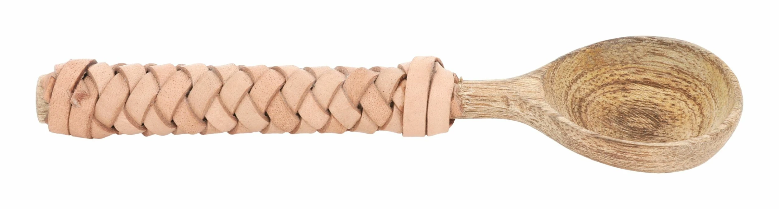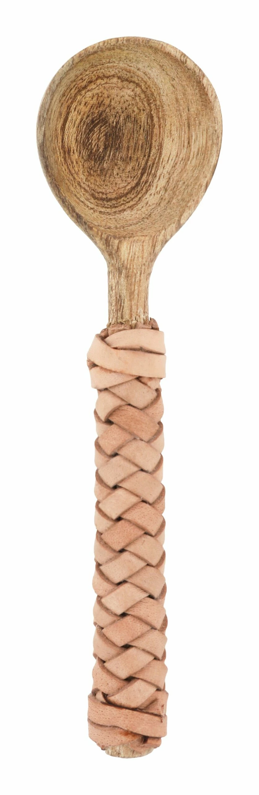 Bring a touch of rustic texture to your tabletop with our Eve Spoons. Handcarved from richly grained mango wood, these simple utensils feature handsome handles wrapped in black or natural top-grain leather. Perfect for dishing up snacks or condiments or for sprinkling an extra touch of sugar or salt, we also love them paired with one of our tea towels for a thoughtful hostess gift.