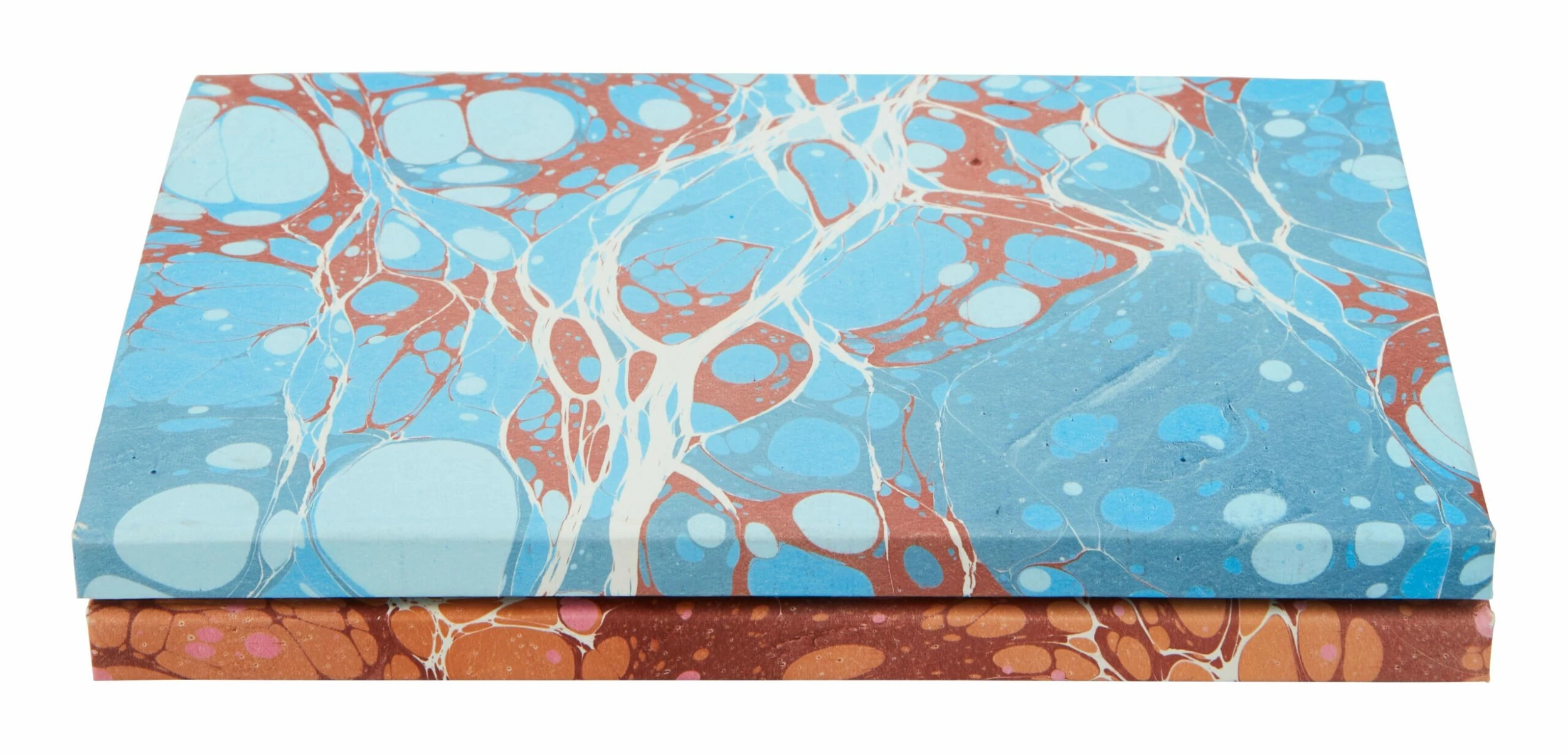 Let your creative juices flow with the help of our gorgeous Firenze Notebook. Handmade in Florence, Italy, this one-of-a-kind journal is covered with a swirling marbleized motif in your choice of two vibrant palettes, created using traditional paper marbling techniques. Following this centuries-old process, skilled craftspeople drip paint onto the surface of water and swirl the pigments together to create organic, marmoreal-inspired designs. A single sheet of paper is carefully dipped into this colorful bath, allowing it to pick up that unique design. Once dried, the paper is wrapped around Firenze’s outer and inner covers, creating a journal that’s just as unique as whatever entries you fill it with. Use our Firenze Notebook as a spot to jot down notes and new ideas or slip it into a purse or tote bag for on-the-go writing and sketching.