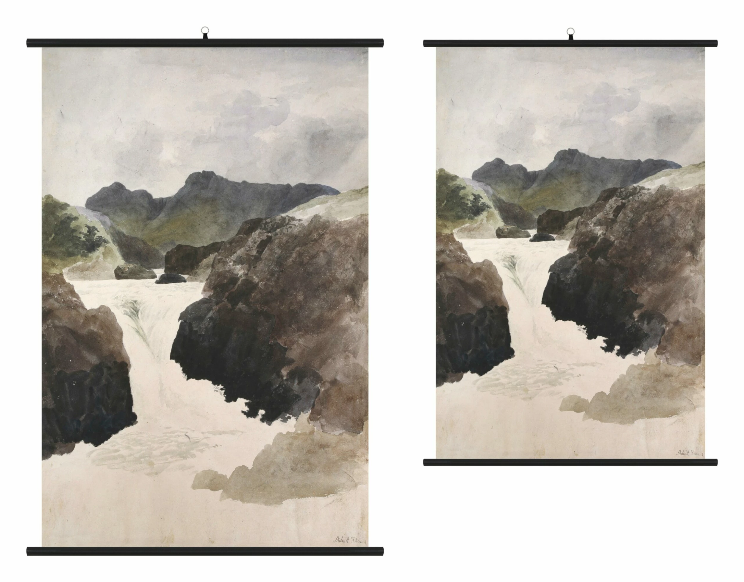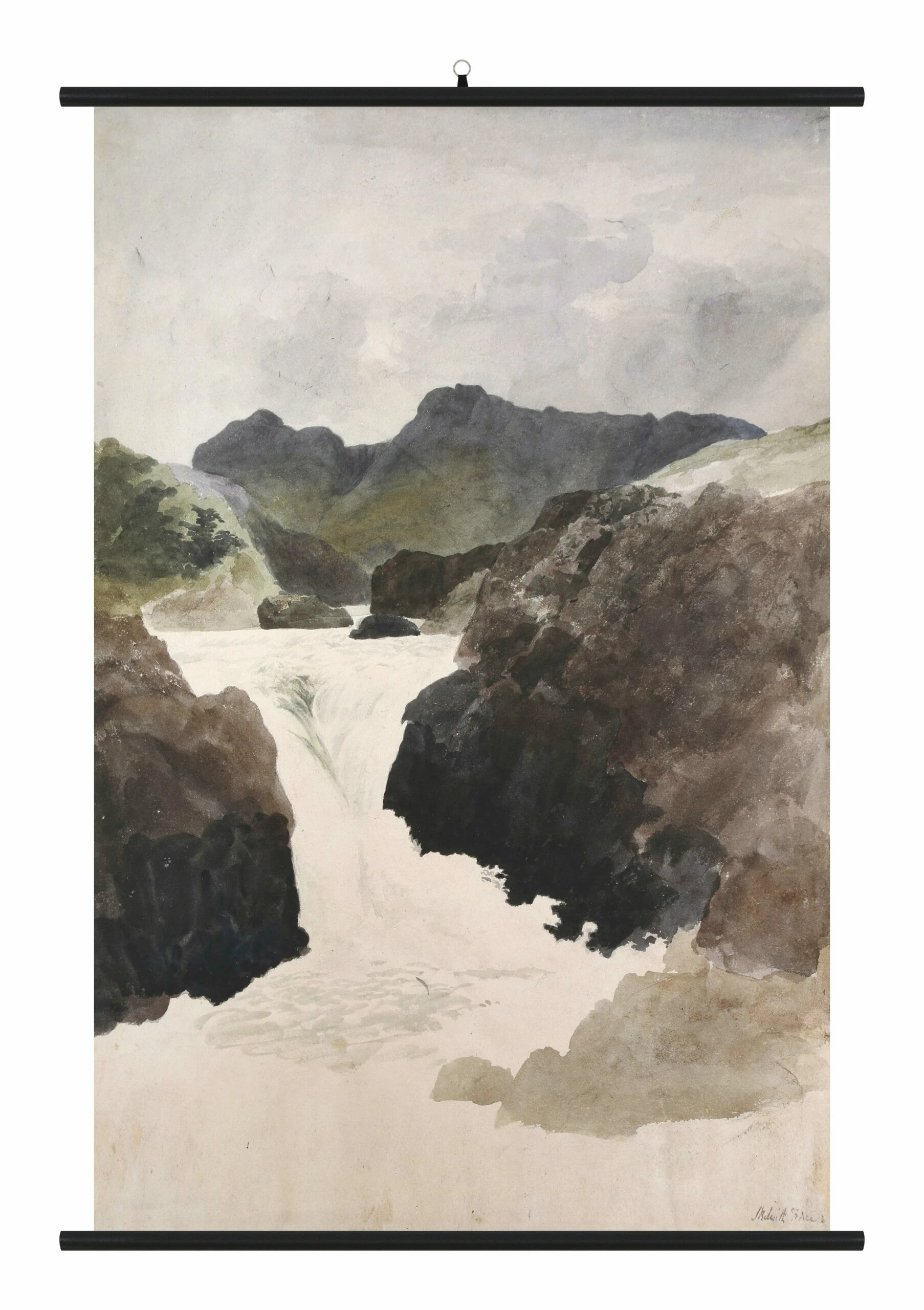 With soft lines and a muted earthy color palette, our Flume Watercolor Print is a stunning tribute to the ethereal beauty of nature. A reproduction of an original vintage landscape painting, this piece depicts a cascading waterfall as it winds its way through a rocky, mountainous terrain. Printed on thick cotton canvas, it’s displayed between two dowel hanging rods in place of a more traditional frame for a fresh and decidedly casual feel. Looking every bit the handmade original, our Flume Watercolor Print is the perfect way to wake up any empty wall in an organic-chic space.