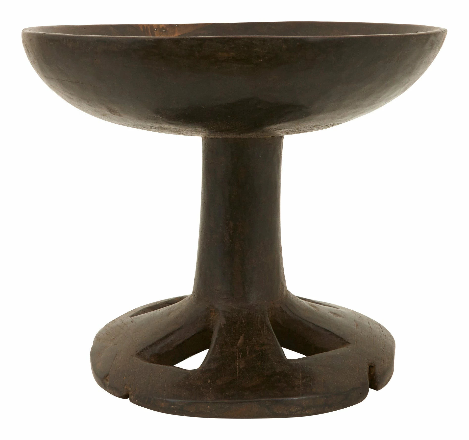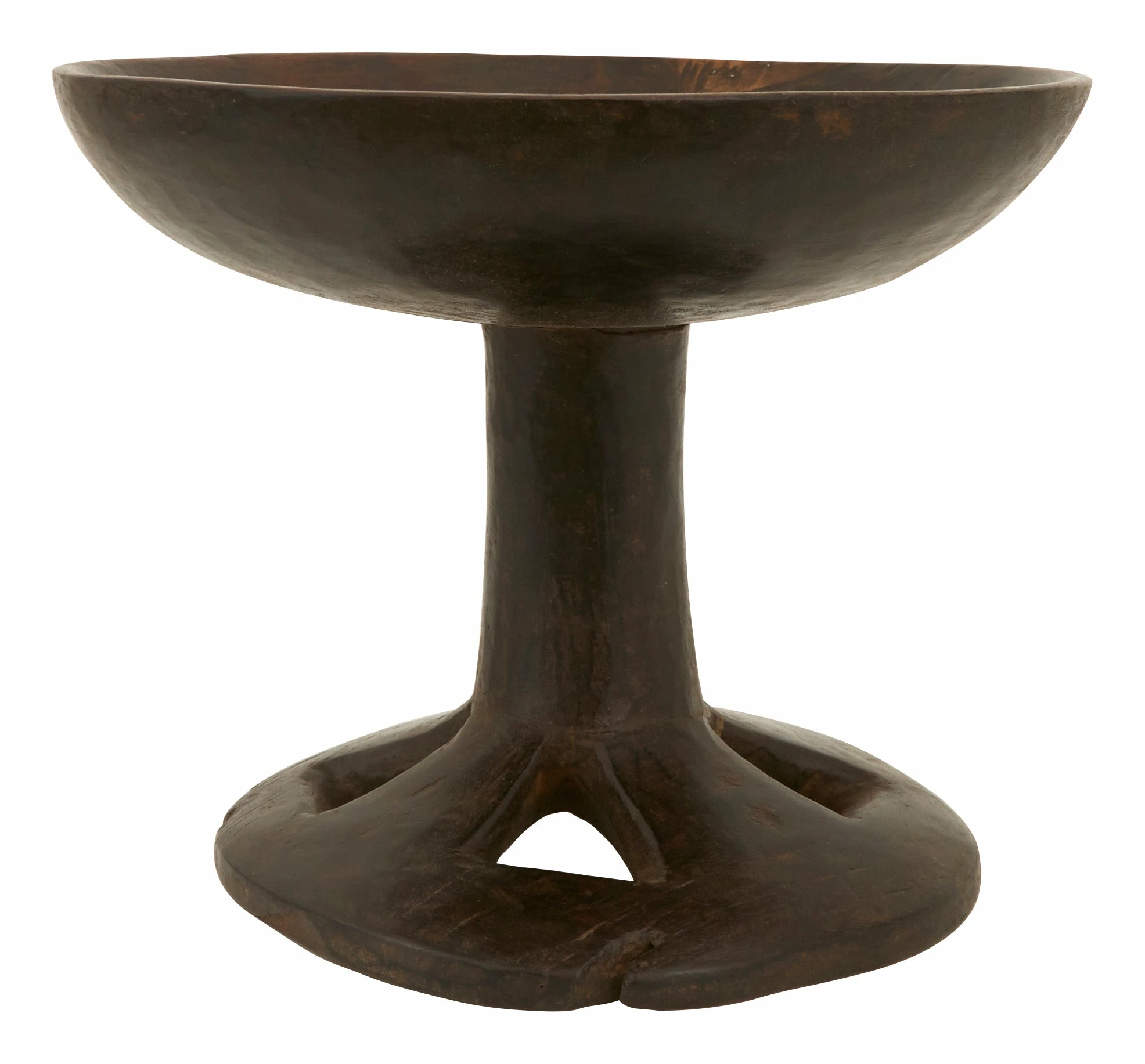 Our Found Naga Pedestal Trays come to us from the northeastern Indian state of Nagaland, where each one was handcarved from a solid piece of wood. Originally used as serving dishes, these one-of-a-kind beauties will make themselves useful all around the house today. We love a single Found Naga Pedestal Tray for a display of fresh fruits on the kitchen counter, as a global-chic stand for a small houseplant or adding a boost of height to an eclectic tabletop vignette as a catch-all. True handcrafted treasures, each is unique in shape, size and patina.
