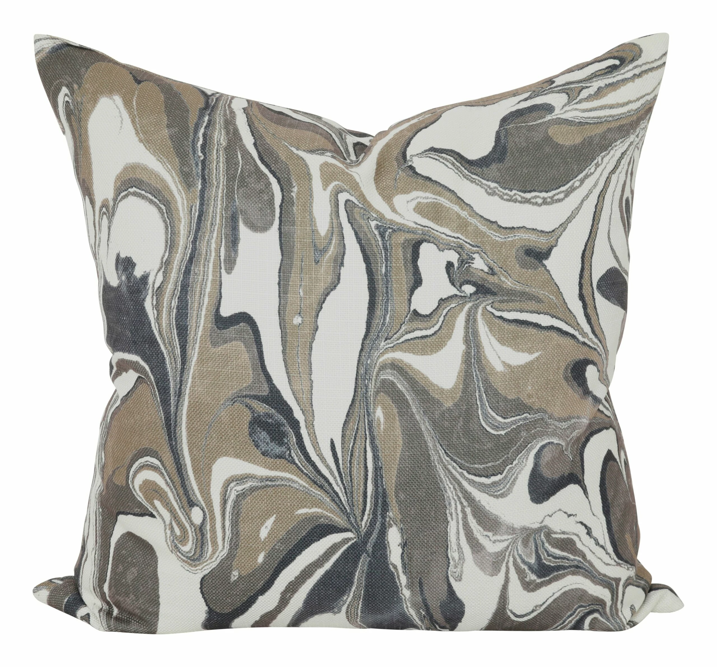 Equal parts neutral and chic, our Geode Pillow would make an effortless addition to almost any modern space. This pretty pillow pairs a swirling, marbleized pattern with an earthy tones of white, taupe, brown and black. We’ve finished it with a hidden zipper closure and a super-soft down and feather insert for a plush feel. With its abstract, organic design and go-anywhere palette, Geode is sure to stand out as a single on a solid-colored sofa or chair but would also shine layered in with other pillows in similar hues.