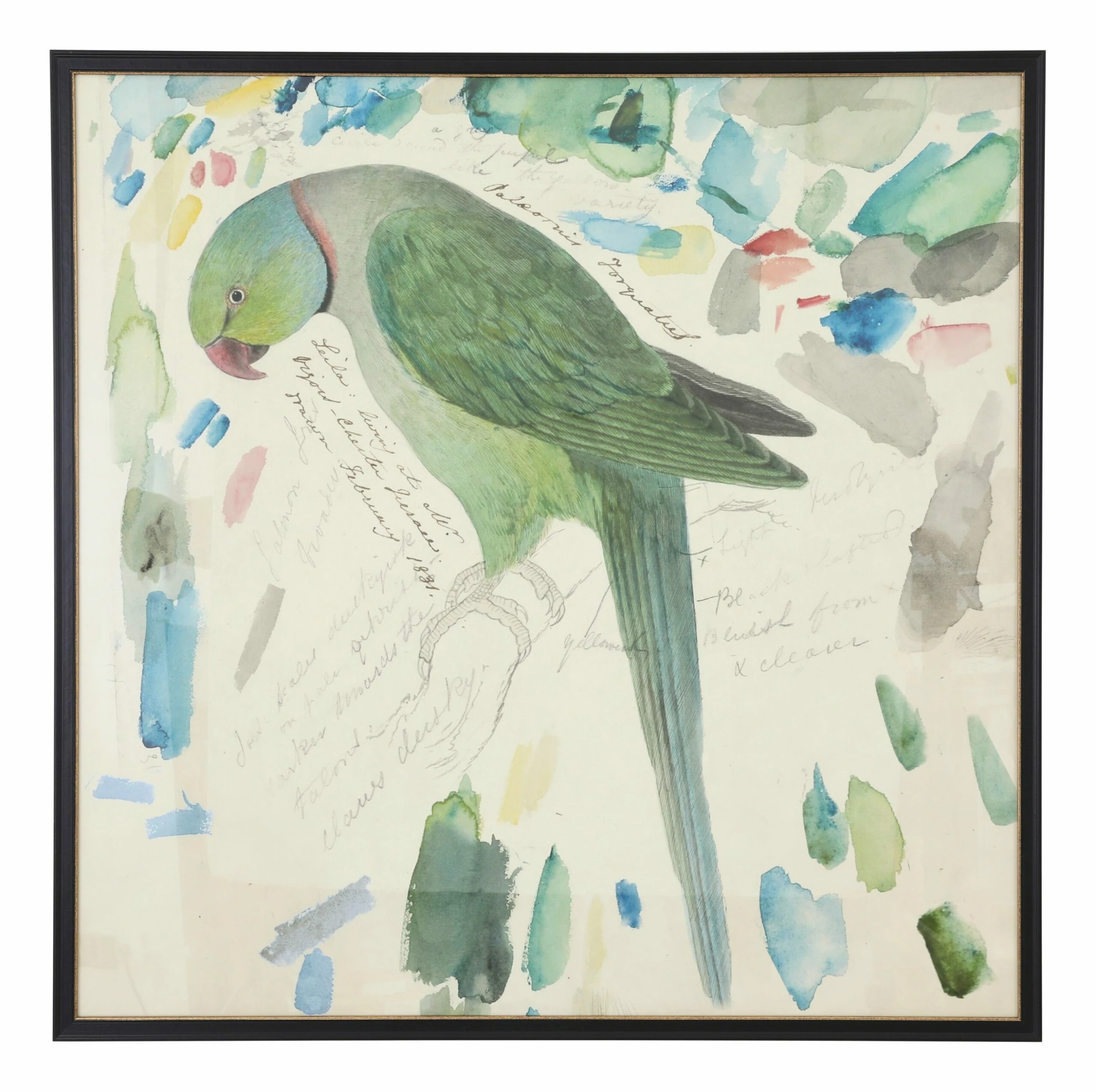 We all know Edward Lear for his delightfully nonsensical verses, but few remember that the 19th-century poet and limericist also had a short career as an ornithological illustrator in his teenage years. Using the live birds housed at London’s Zoological Gardens as models, the young artist created beautiful ink, graphite and watercolor sketches of countless exotic species. Many of these colorful and unusual sketches were recreated as lithographs and bound together as Illustrations of the Family of Psittiacidae, or Parrots, published before Lear had even turned twenty. Our Green Parrot Print is a stunning facsimile of a portrait from this collection, depicting a vibrant species now commonly known as the rose-ringed parrakeet. This naturalistic illustration is surrounded by the artist’s hand-written notations and color samples, which together give it all the feel of a true one-of-a-kind original. We’ve stuck with its antique vibe and finished it in a classic black frame with a gilded interior edge for just a hint of shine. Perfect for bringing a bit of history to any space, we love this print on its own or mixed in with our other vintage-inspired works for a gallery wall with a collected feel.