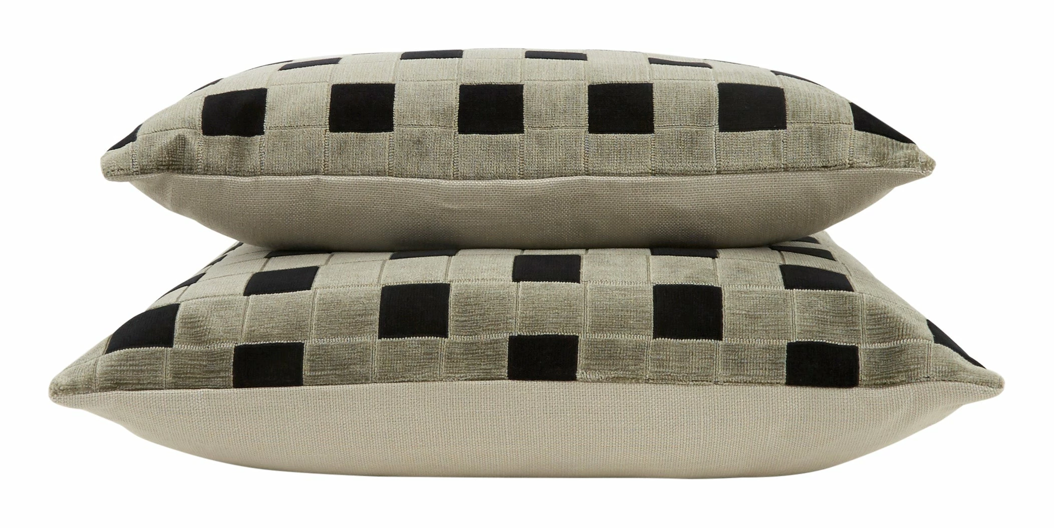 Give your space a subtle pop of geometry with our Grid Black Pillow. A modern take on the classic checkered pattern, this soft, velvety pillow is decorated with contrasting blocks of color in black and grey to create a simple yet eye-catching motif. It’s finished with a neutral linen back, a hidden zipper closure and a plush down and feather insert. Sure to stand out on a solid colored sofa, we also love our neutral Grid grouped with other pillows in a similar palette.