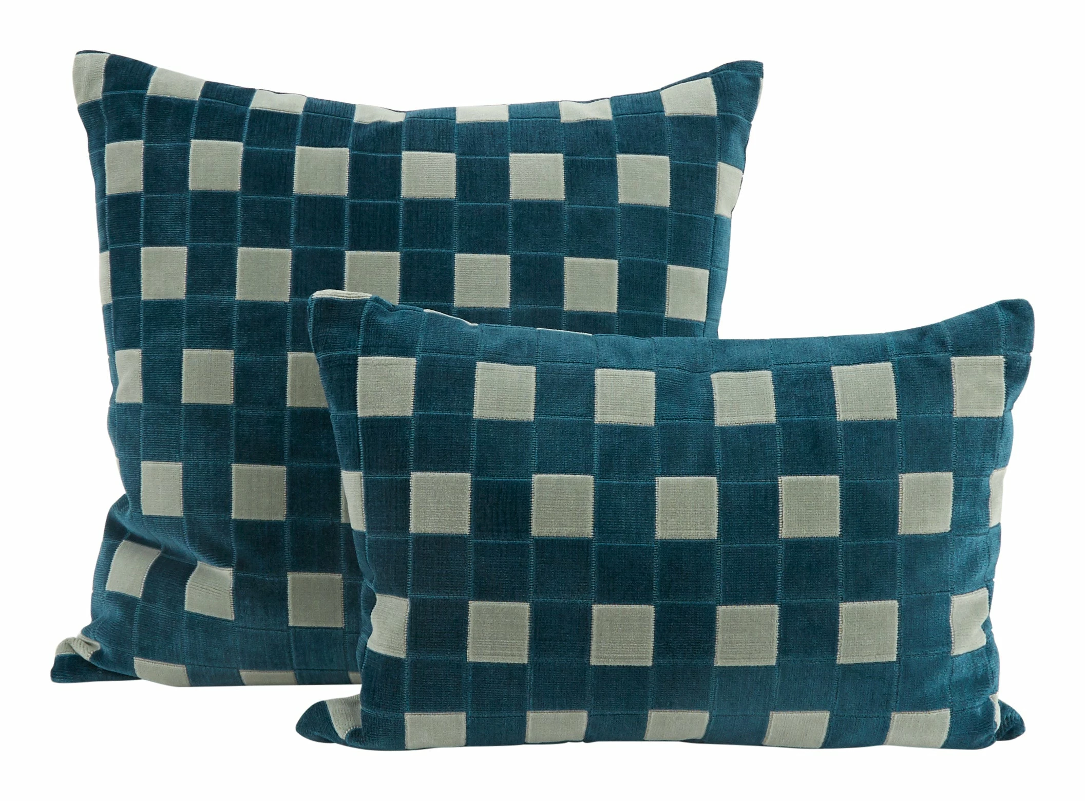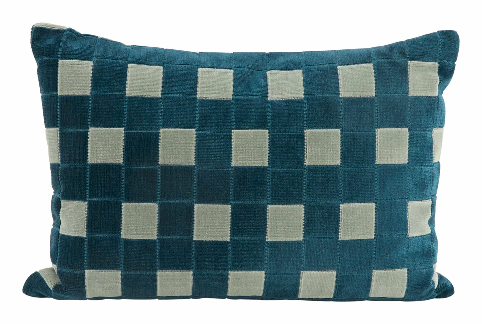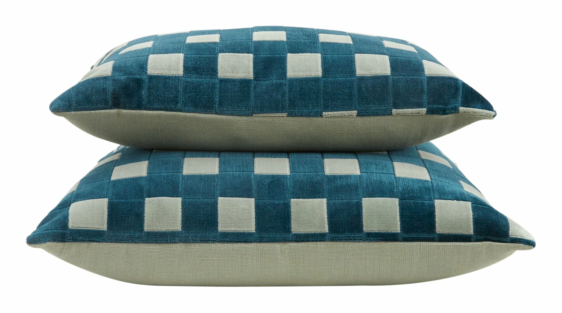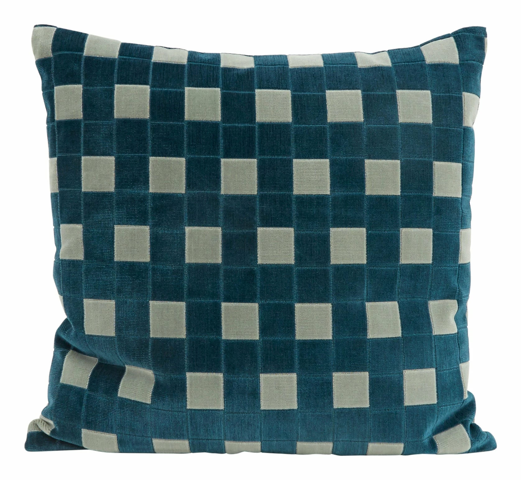 Give your space a subtle pop of geometry with our Grid Blue Pillow. A modern take on the classic checkered pattern, this soft, velvety pillow is decorated with contrasting blocks of color in blue and cream to create a simple yet eye-catching motif. It’s finished with a neutral linen back, a hidden zipper closure and a plush down and feather insert. Sure to stand out on a solid colored sofa, we also love Grid grouped with other pillows in a similar palette.