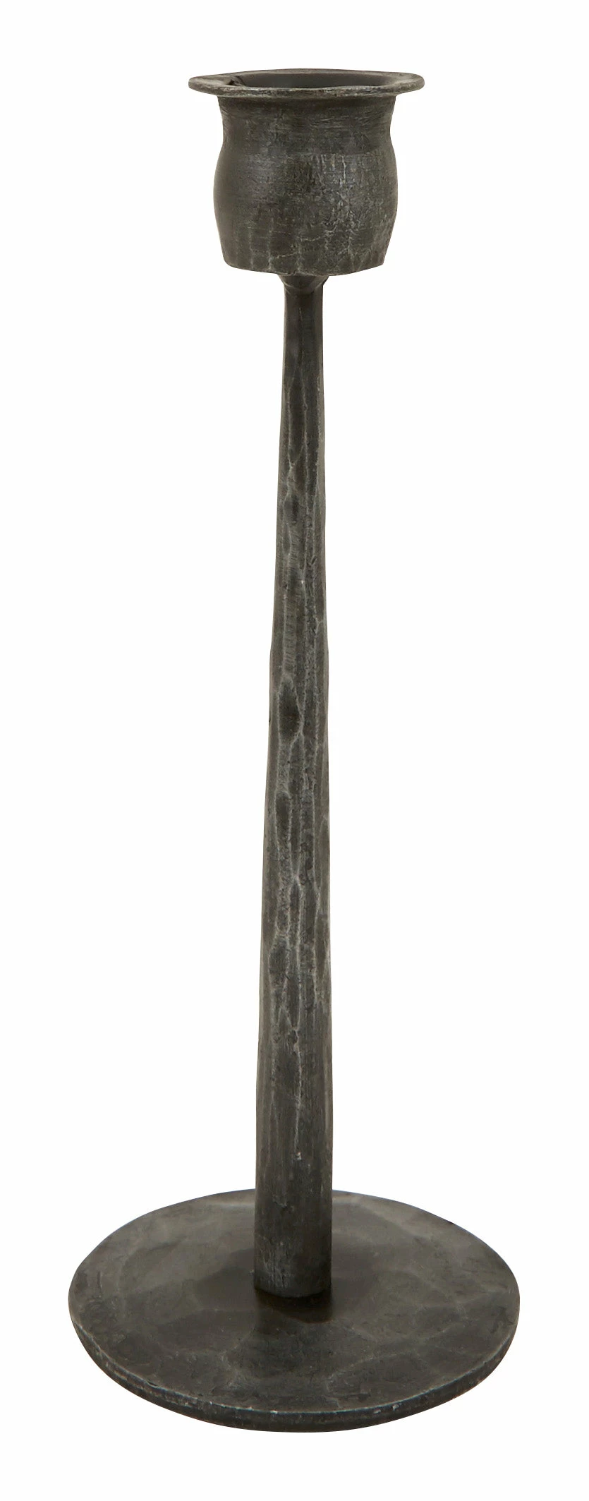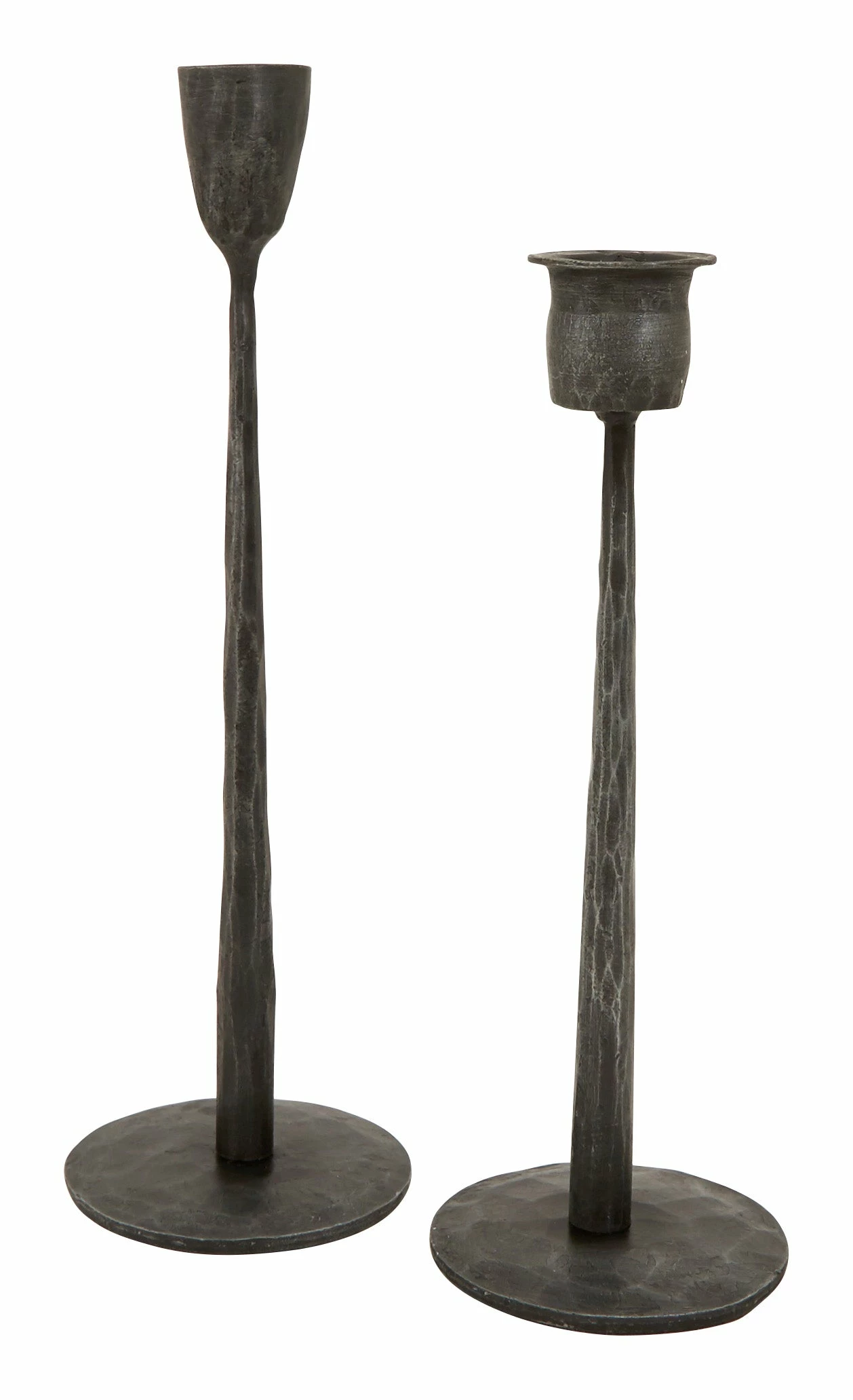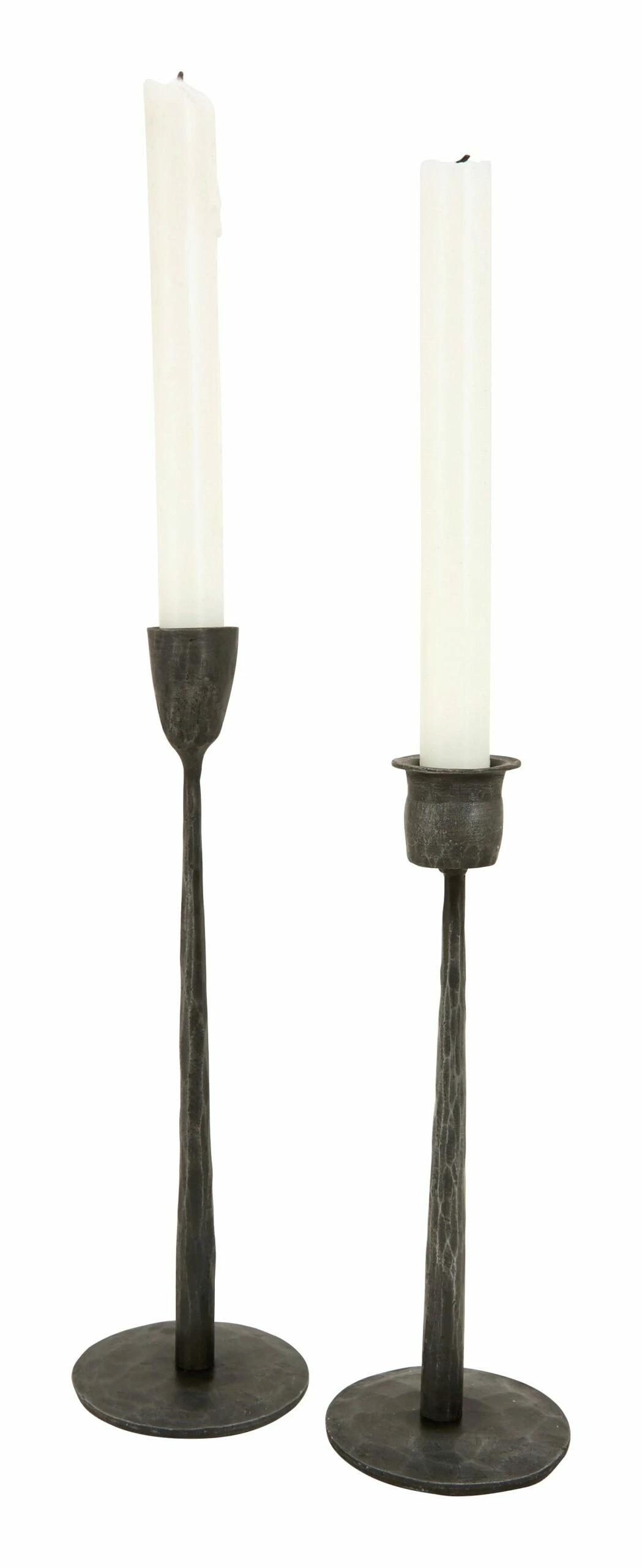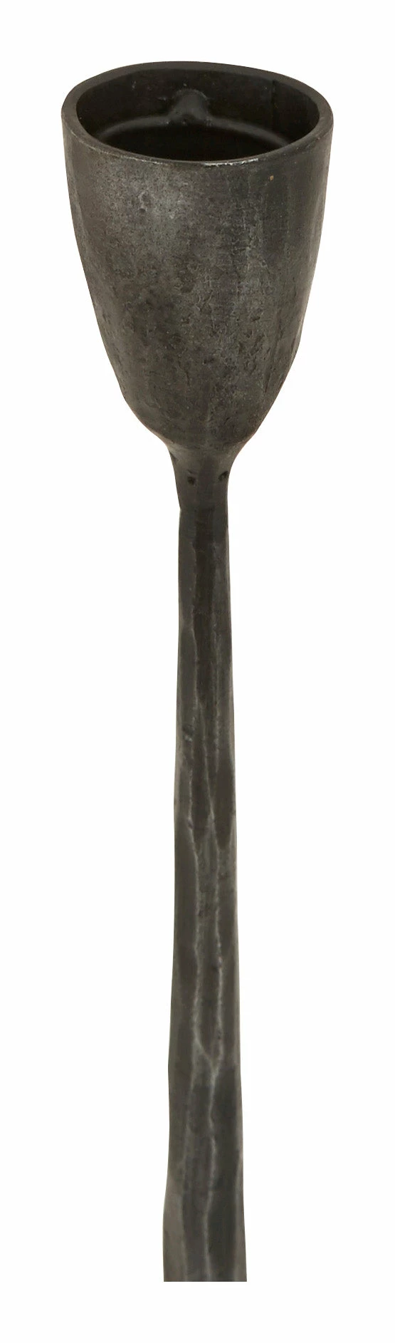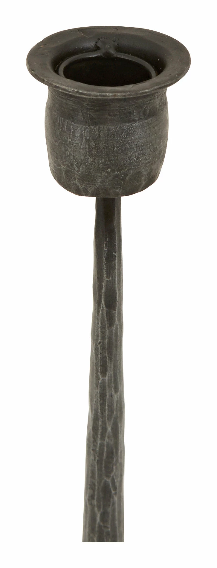 Create the perfect ambiance for an evening in with the help of our Irvine Taper Holders. Vintage-inspired with an industrial feel, these slender taper holders are crafted from wrought iron into simple shapes with a blackened steel finish. Sized for a standard taper candle, we love our Irvine Taper Holders as a pair clustered together on the sideboard, mixed in with an eclectic collection of other candlesticks and votives on the mantel or in multiples casting their glow on the dining room table.