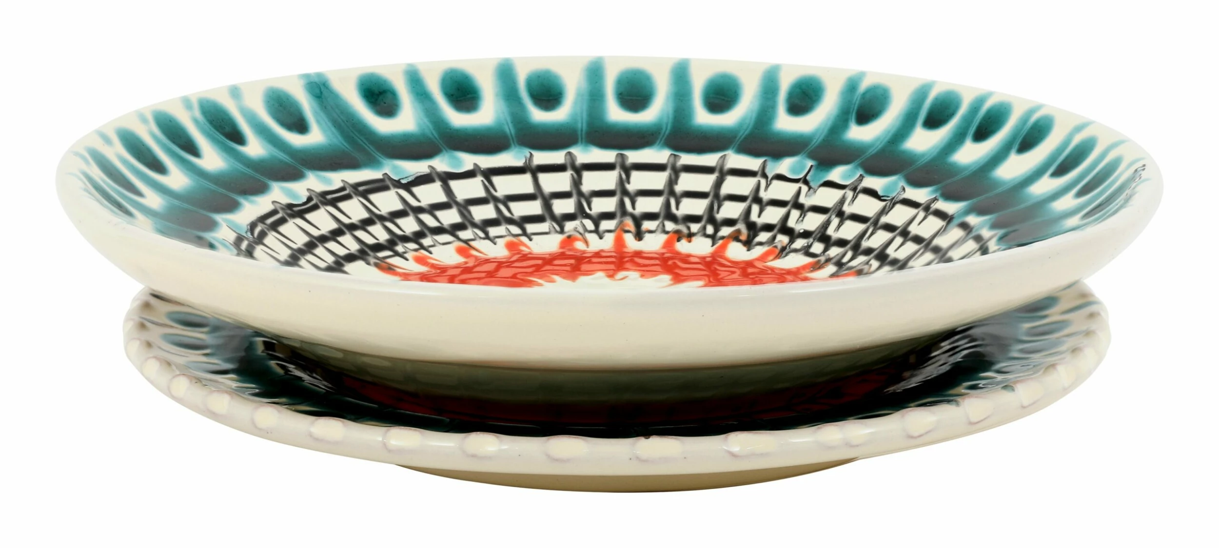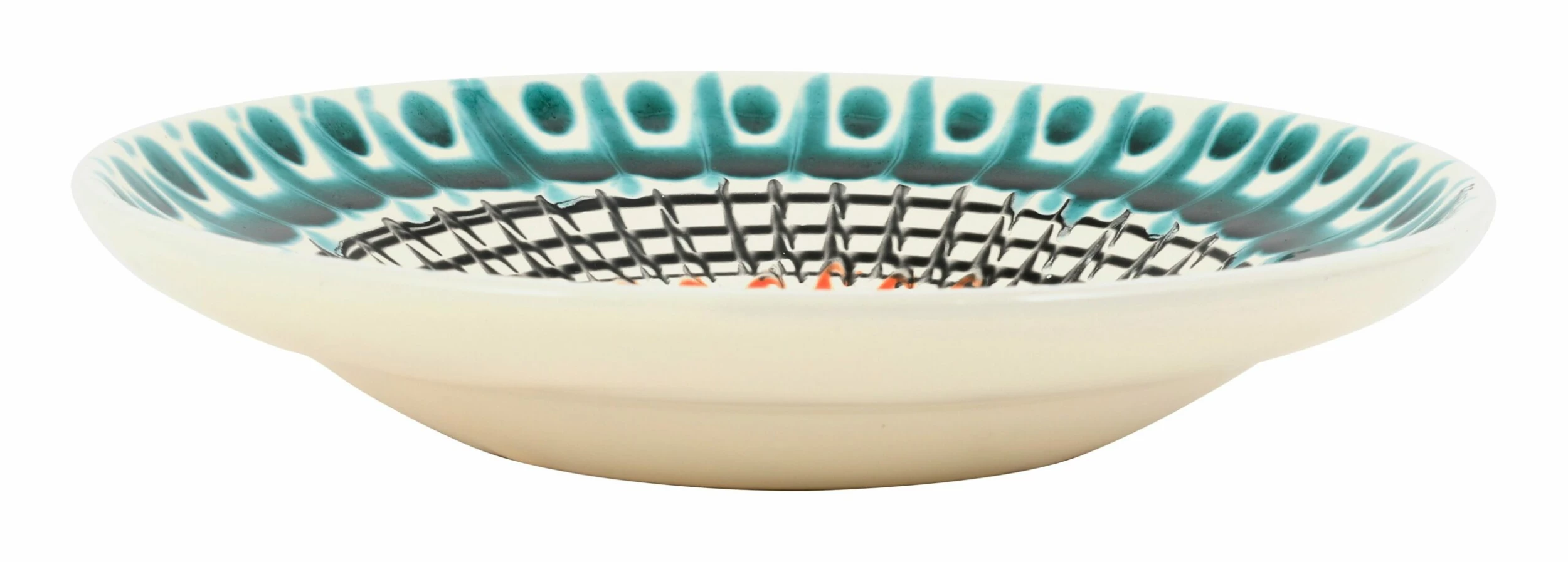 Bring a fresh, summery feel to your fare with our one-of-a-kind Italian Ceramic Serveware Collection. These gorgeous ceramic dishes come to us from the Puglia region of southern Italy, where each piece was handcrafted into a simple shape following traditional techniques and finished with a kaleidoscopic hand-painted finish in vibrant, swirling shades of orange, teal, white and black. Perfect for bringing an artful feel to your everyday meals, both the plate and shallow bowl would be great for plating pasta or salad. We also love them mixed in with solid-colored dishes or pieces from our other Italian Ceramic Serveware Collections for a truly unique tablescape.