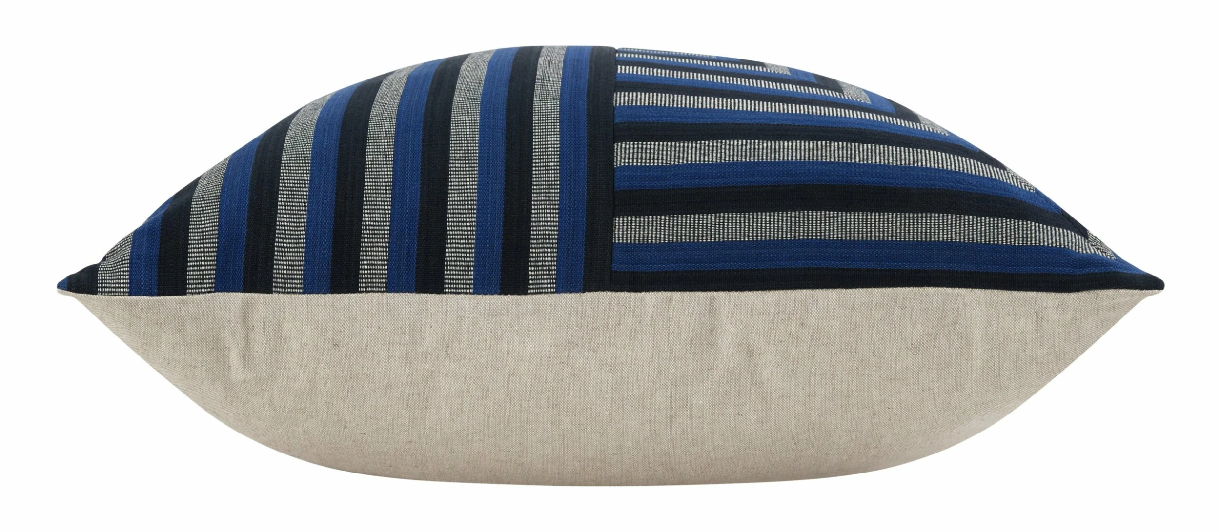 Add a fresh pop of pattern to your sofa or bed with our JH x Tensira Porter Maze Pillow. A riff on our timeless JH x Tensira Porter Pillow, this throw pillow was created in collaboration with Tensira — a celebrated textile house founded by a Guinean and Finnish husband-and-wife duo that blends Scandinavian aesthetics with ancestral West African weaving and dyeing methods. We dreamed up Porter’s original design in-house, drawing on the motifs found on antique French parquet flooring to create an unexpectedly dimensional, blocky feel. Tensira’s team of skilled craftswomen then brought our design to life using cotton that was spun and woven by hand and traditional indigo-dyeing techniques that were passed down for generations. Once completed, smaller sections of this fabric were then carefully stitched together to create a mesmerizing, maze-like design that we just can’t get enough of. Finally, we finished it with a plush down and feather pillow insert for soft, sink-in comfort. We couldn’t be happier with the end result, which blends a blue, black and white palette with European elegance and global authenticity. Perfect for adding a little interest to a favorite armchair as a single, we also love our Porter Maze Pillow layered with our other JH x Tensira Pillows for an effortlessly chic feel.
