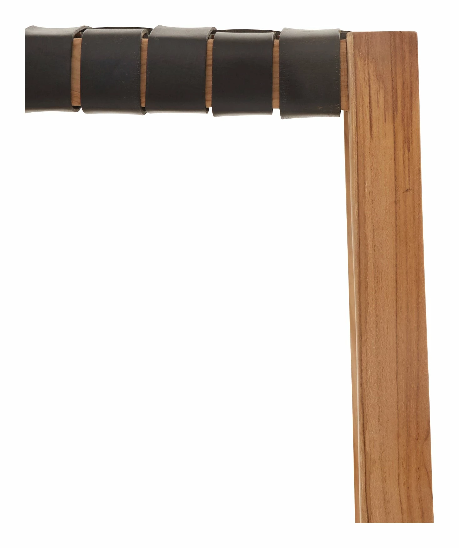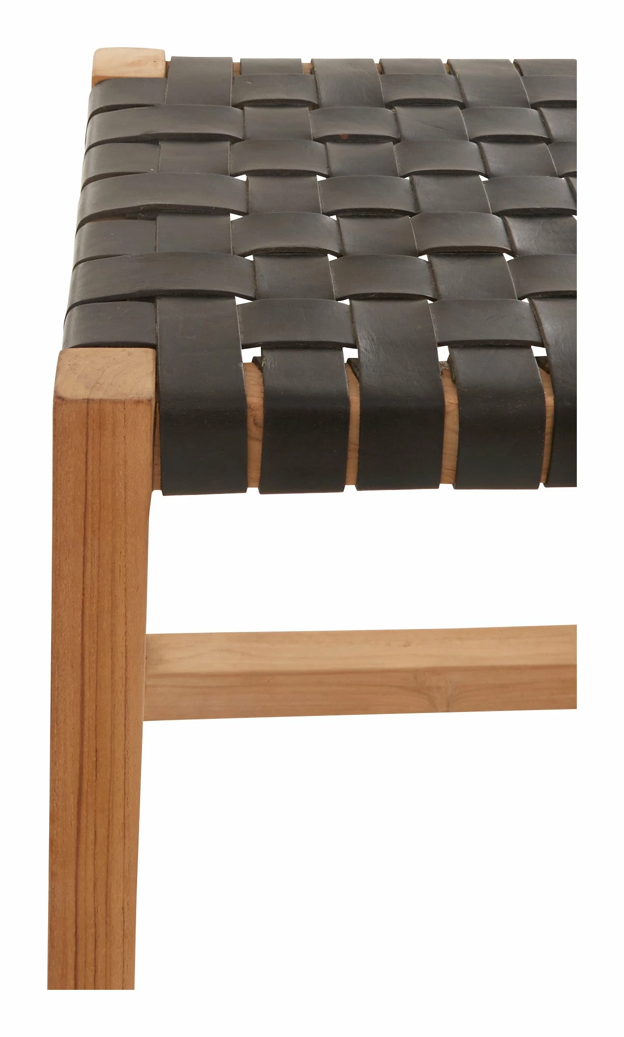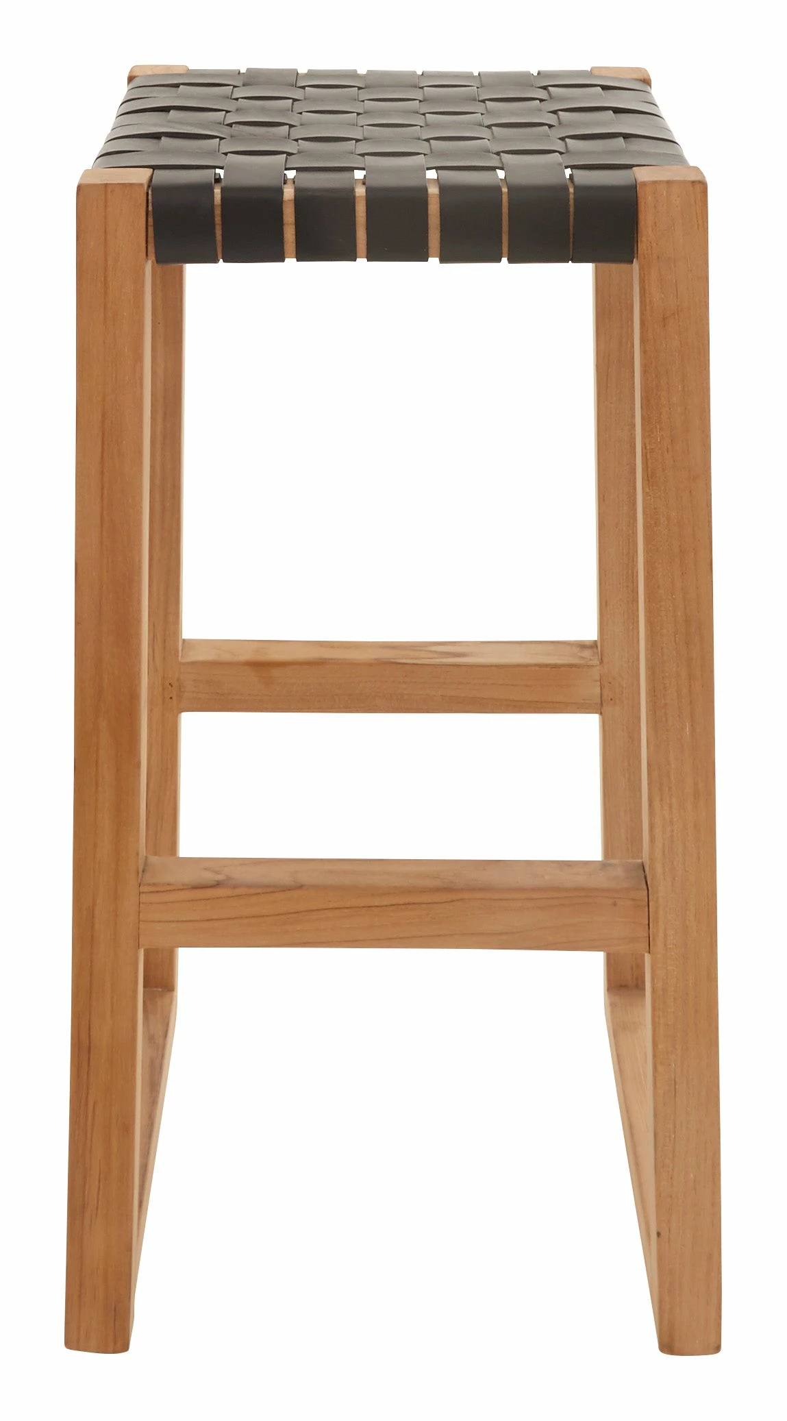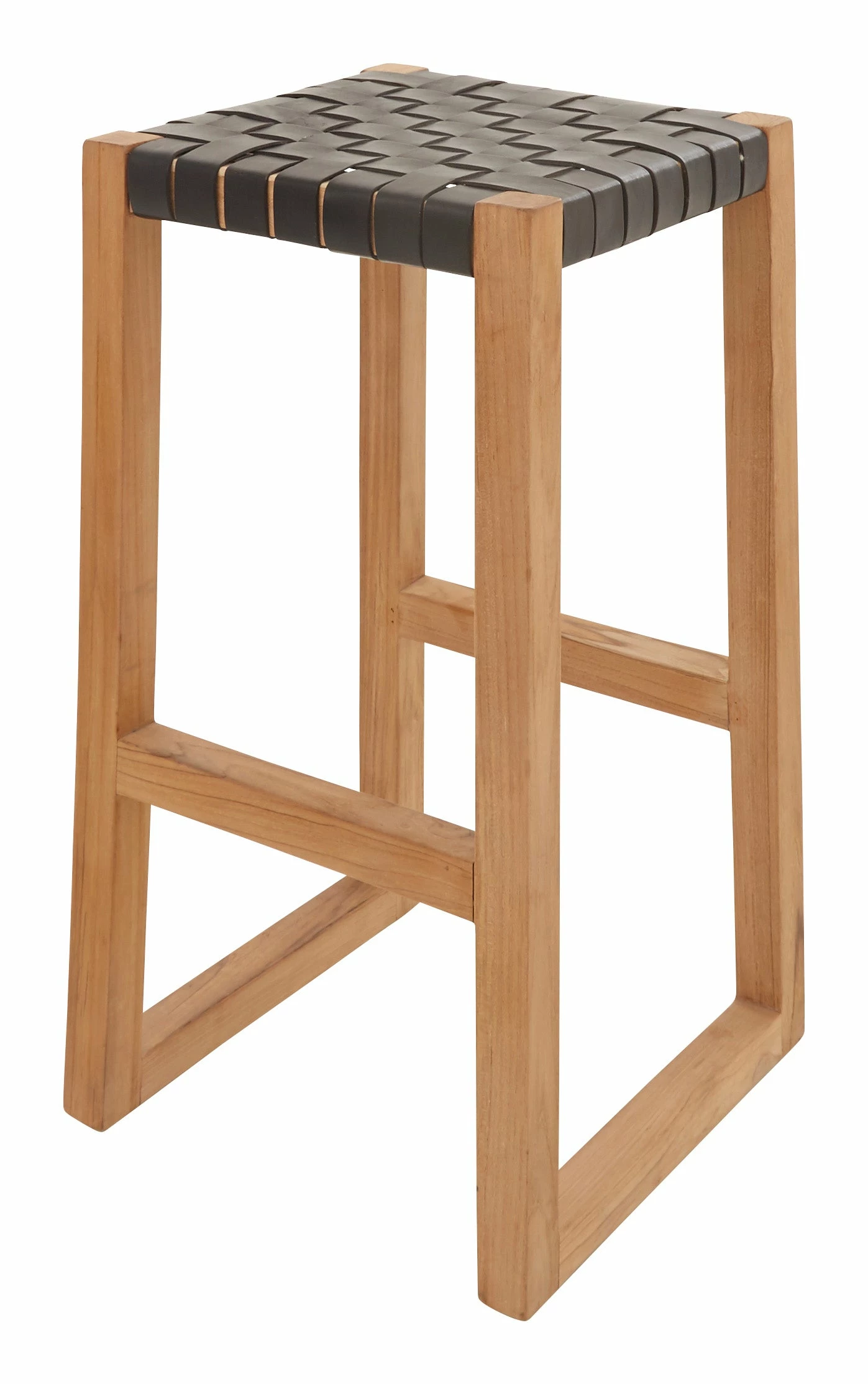 Pull a seat up with our clean-lined Josh Bar Stool. Inspired by an iconic mid-century design, Josh’s seat is crafted from strips of black leather woven over a chunky teak wood frame. With the addition of its perfectly placed foot bar, this handsome stool offers a comfortable, supportive sit along with its good looks. Right at home in any casual-modern space, Josh makes a great addition to a kitchen island, cozy home bar or anywhere else you need a pop of warmed-up minimalism.