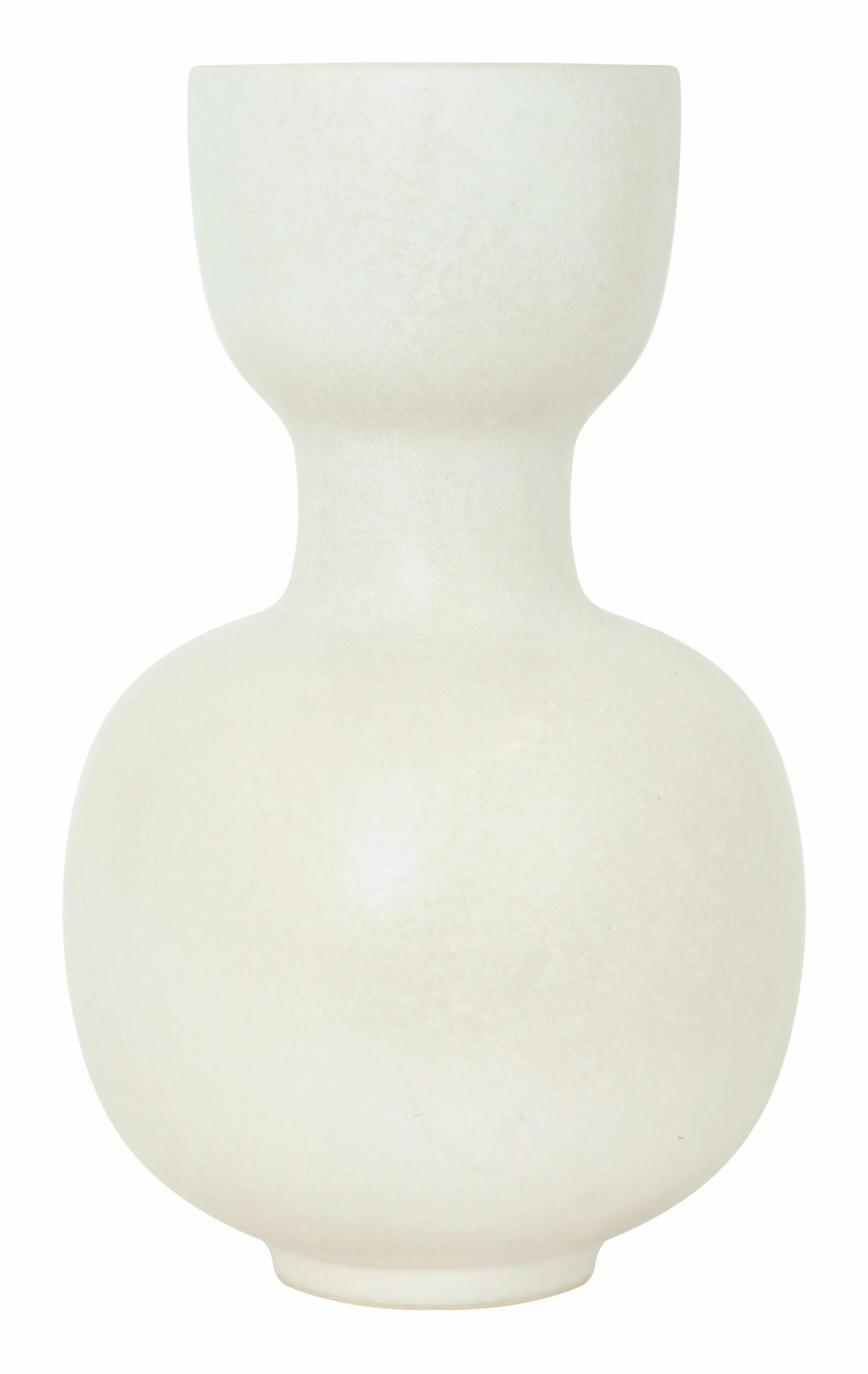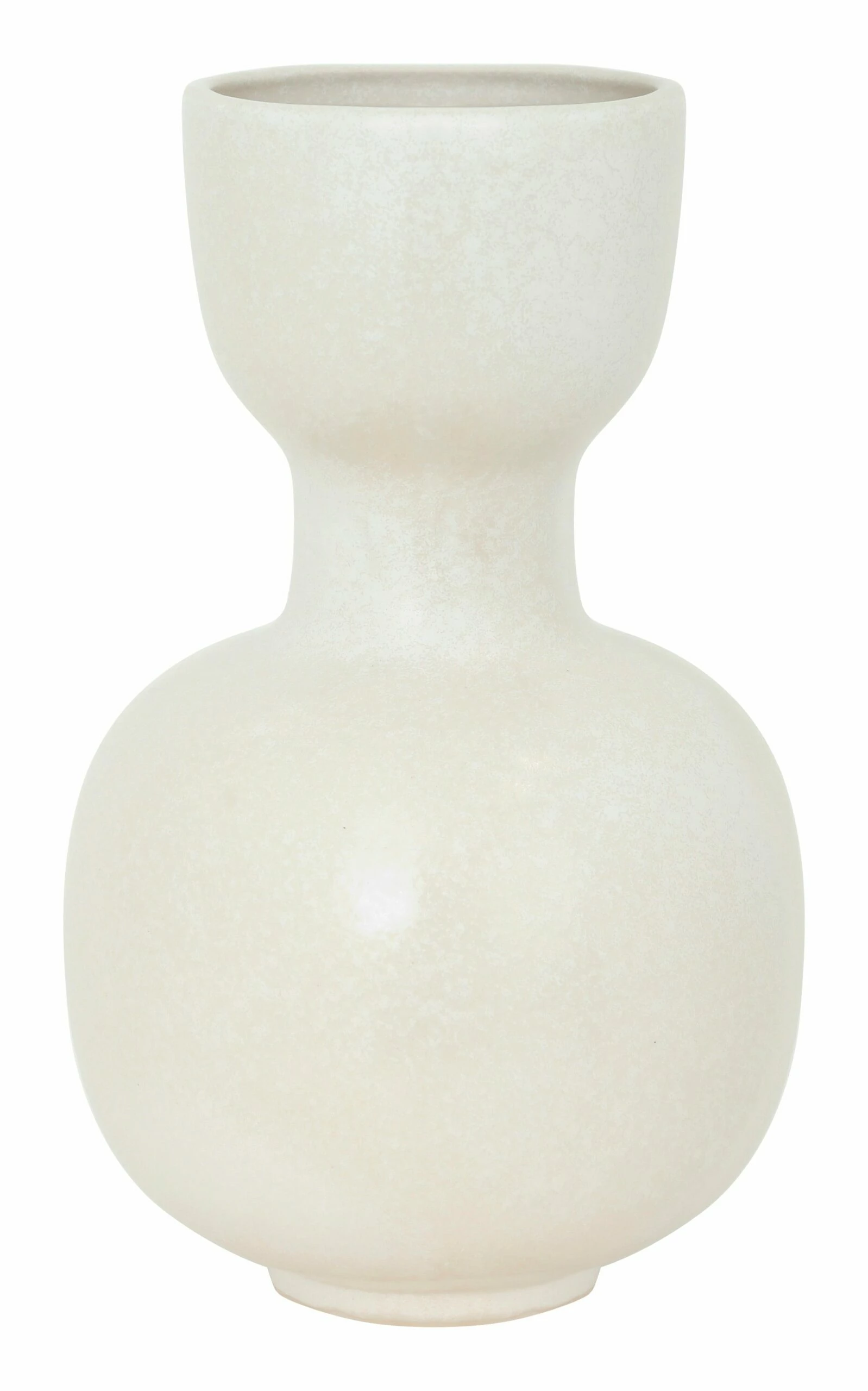 Our Kadoma Vase is simplicity at its finest. Minimal and modern with gorgeous graceful curves, this vessel is crafted from ceramic and finished with a mottled cream glaze. Strong enough to stand on its own thanks to its chic, sculptural shape, Kadoma also makes the perfect base for a bouquet for textural dried or lush fresh florals.
