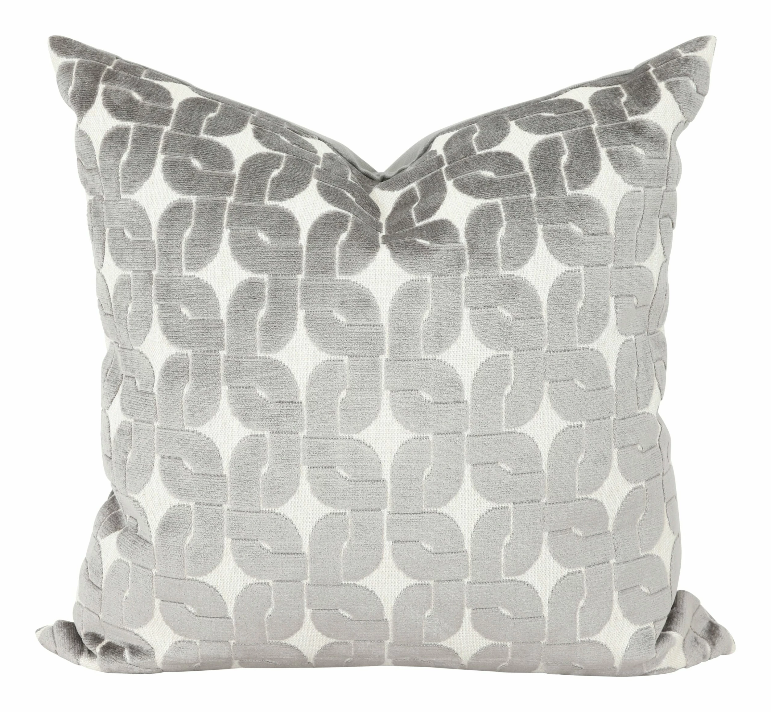 Simplicity gets a moment to shine with our neutral Lattice Pillow. This beauty is patterned with interlocking squares cut from pale grey velvet over a clean white woven ground. We’ve paired it with a grey velvet backing, a hidden zipper closure and a luxe down and feather insert. Great for adding a plush feel to your favorite armchair all on its own, we also love Lattice as a matching pair on the sofa or mixed in with other pillows on the sectional or bed for a soft, subdued layer.