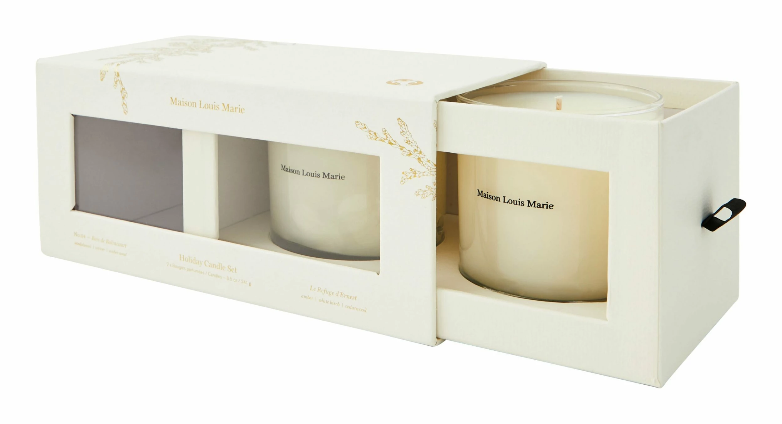 Bring the scents of the season into your home with our dreamy Maison Louis Marie Winter Candle Set. From Belgian candle manufacturer Maison Louis Marie, this special edition candle duo features one of the brand’s most popular scents, Bois de Balincourt, as well as their exclusive holiday fragrance, Le Refuge D’Ernest. Each of these enchanting candles features a carefully crafted scent that draws from founder and candlemaker Marie du Petit Thouars’ memories and family legends. Burn Bois de Balincourt for fresh, earthy notes of sandalwood, cedarwood, vetiver, amberwood and spices, inspired by the ancient, mysterious forest that surrounded her family’s home. Or fill your space with Le Refuge D’Ernest’s inviting notes of applewood, amber, citron, clove leaf, canella bark, white birch, oakmoss, sandalwood and cedarwood — a tribute to the cozy Alpine cabin built by Thouars’ great-great-great-grandfather as a haven for fellow Matterhorn mountain climbers. These scents are mixed into a soy wax blend, which is then poured into a simple glass jar and finished with a cotton wick for a clean burn. A thoughtful gift to the scent-lover on your shopping list, grab a second set to create the perfect ambiance for your own holiday parties.