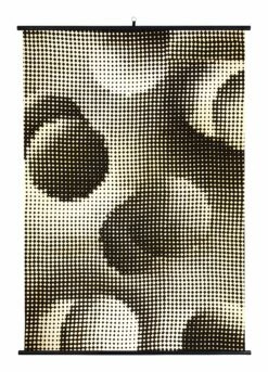 Bring your walls to life with our minimal, modern Matrix Print. Simple yet striking in composition, this monochromatic piece is comprised of pixelated dots in shades of black and cream, which together create a series of dimensional spheres when viewed from a distance. Printed on thick cotton canvas, it’s displayed between two dowel hanging rods in place of a more traditional frame for a fresh and decidedly casual feel. Sure to command attention wherever it goes, we love our Matrix Print adding graphic interest over a mantel or living room sofa.Â