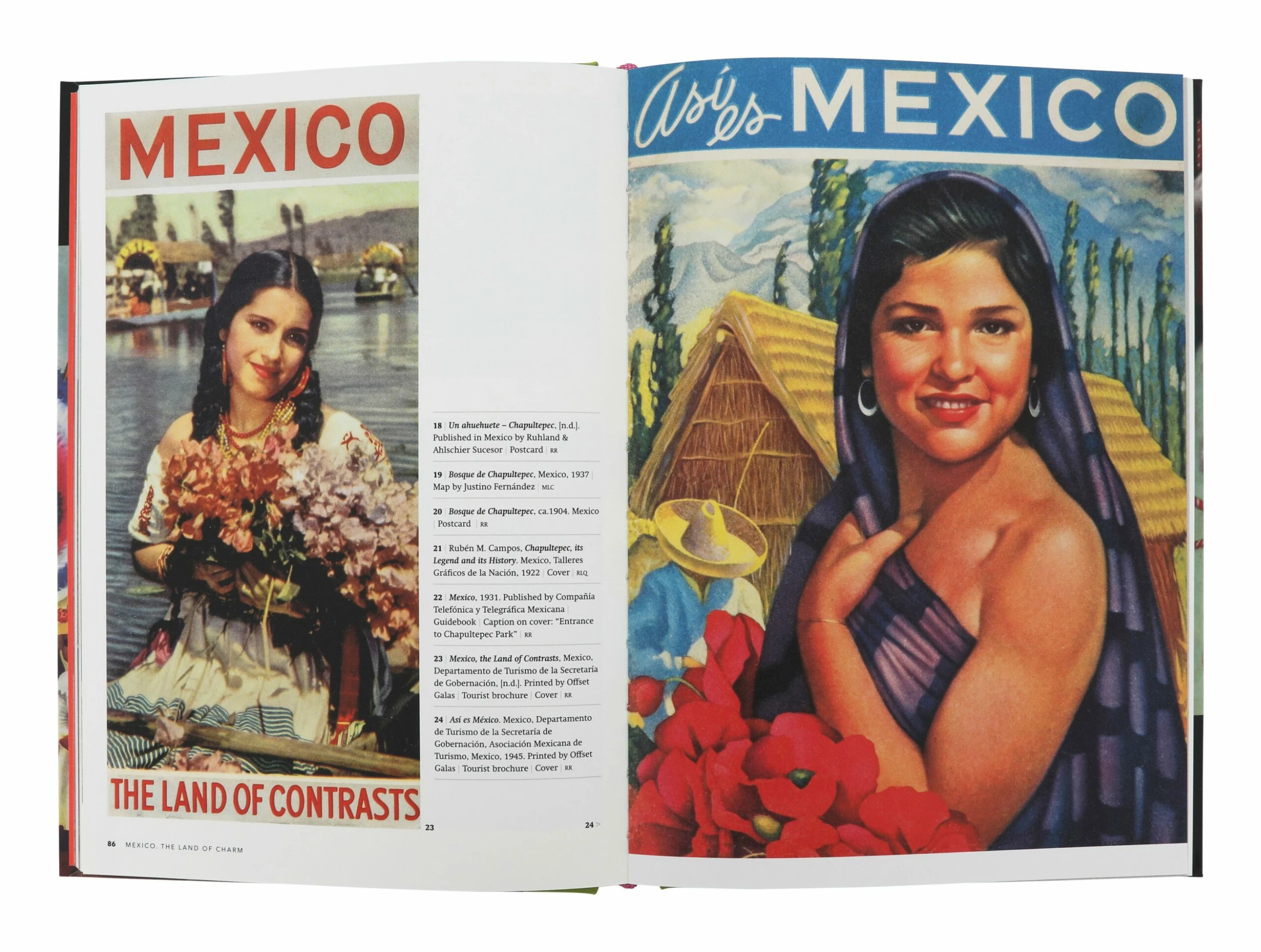 Discover the origins of Mexico’s vibrant visual culture in the pages of Mexico: The Land of Charm. Capturing over four hundred images from Mexican print ephemera, this brightly-colored volume includes illustrations and photos from magazines, brochures, stamps, postcards, posters and other printed materials that were widely circulated from 1910 to 1960. As Mexico developed its own identity following the revolution in the first part of the twentieth century, and tourism from the United States increased, a passionate graphic style emerged to showcase what the country had to offer. Created primarily by Mexican artists, the illustrations collected are a culmination of symbols and archetypes that came to define Mexico, highlighting its pre-Hispanic heritage, figures from the revolution, tourist destinations, fertile farmlands, colorful national dress and vivacious fiestas. Mexico: The Land of Charm celebrates the postwar era when Mexico introduced itself to the world by creating a unique pictorial language that, though idealistic, seized the global imagination.
