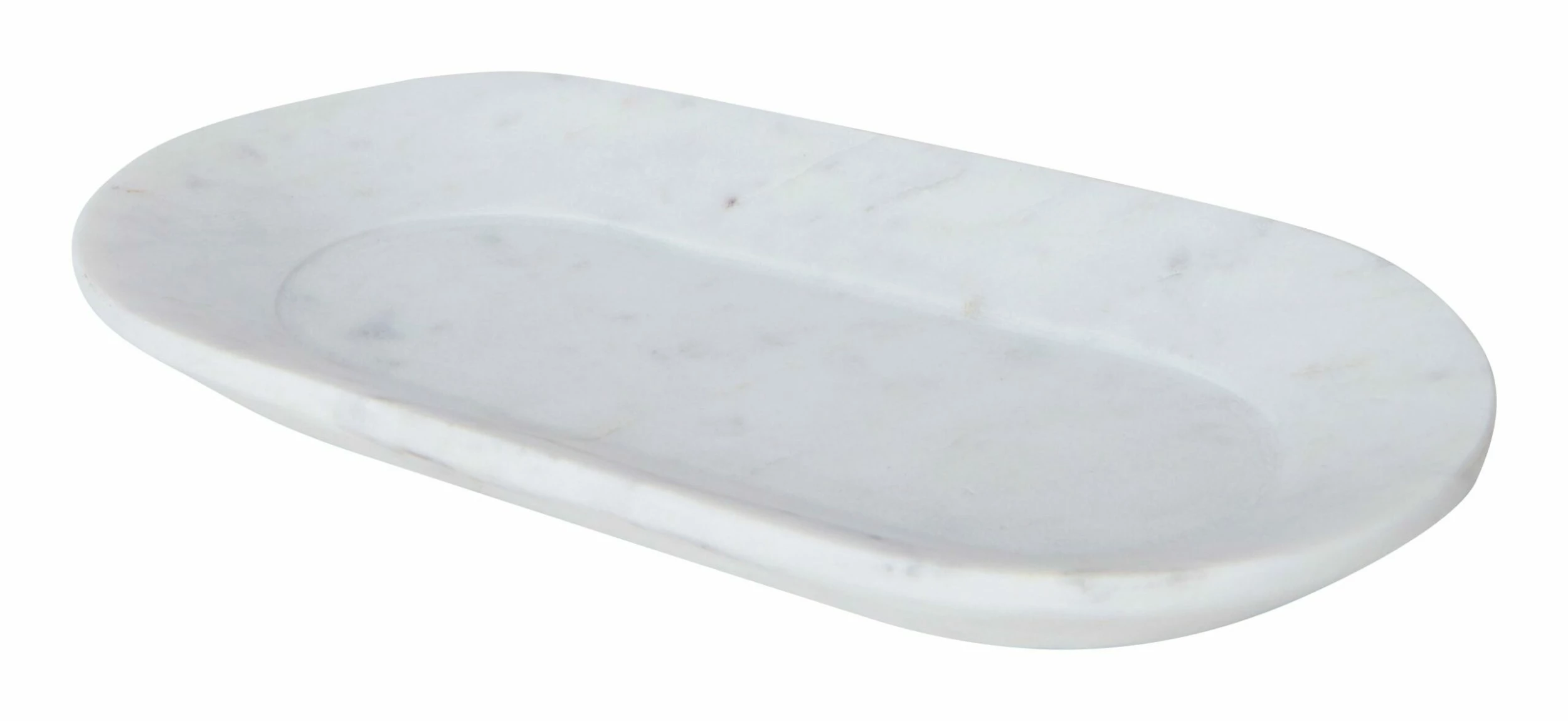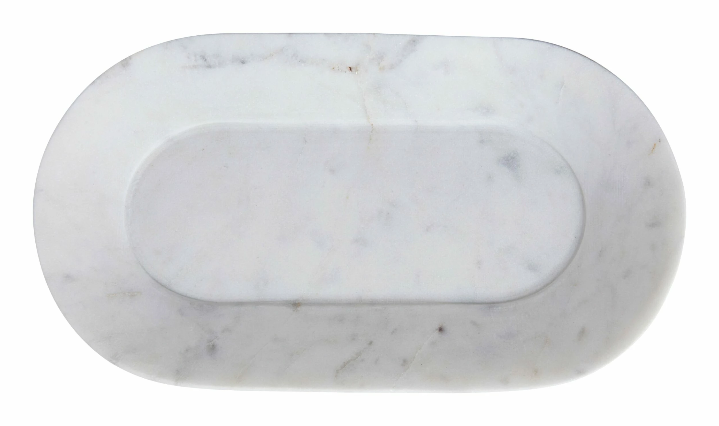 Our versatile Monika Tray can truly do it all. Chic and simple, Monika is carved into a sleek ovoid shape from cool white marble with touches of grey veining. Perfect for serving up small bites or a block of cheese during cocktail hour, we also love this dish as a catchall on an entryway console or as a vanity tray on the dressing table.Â
