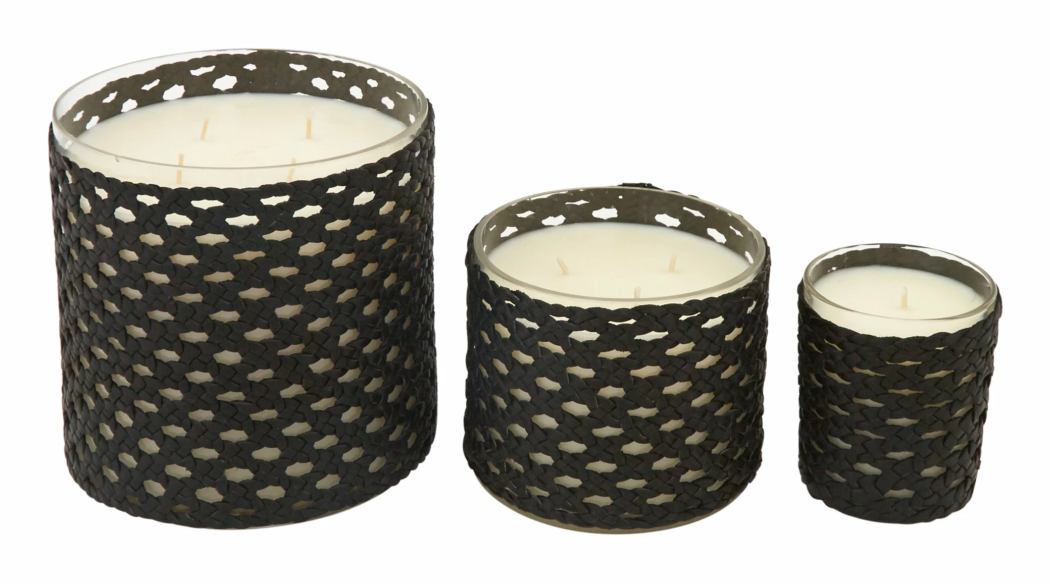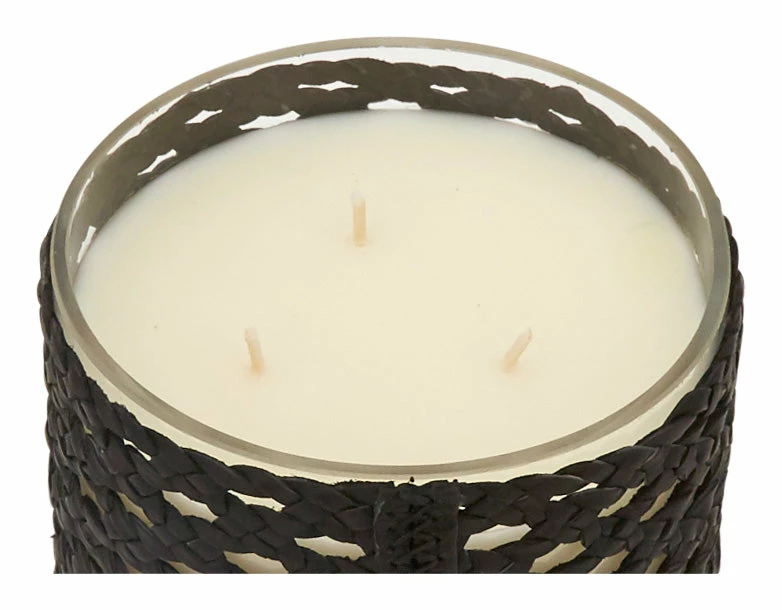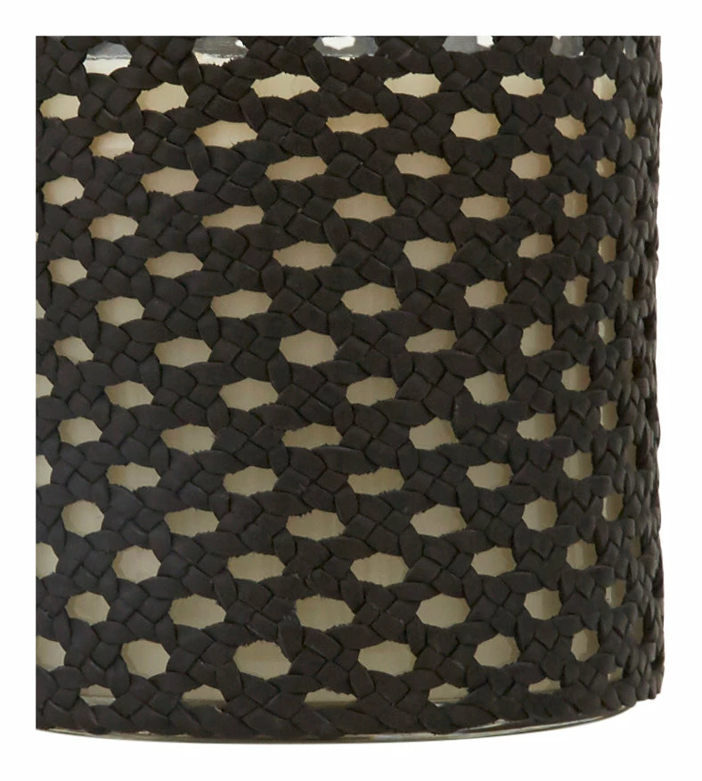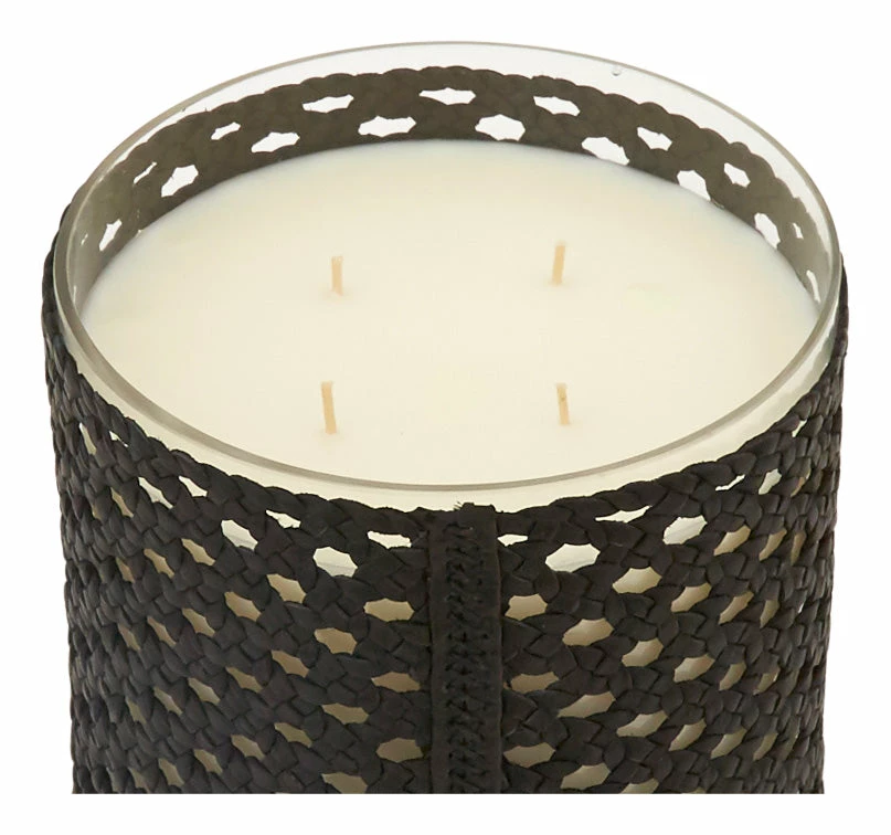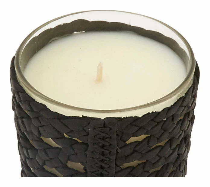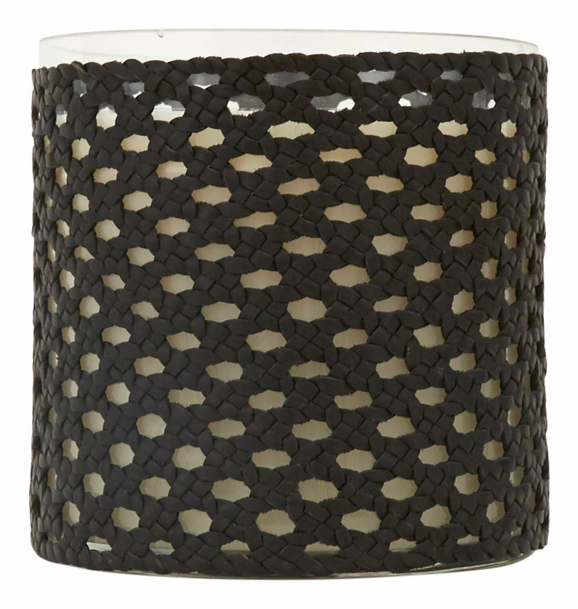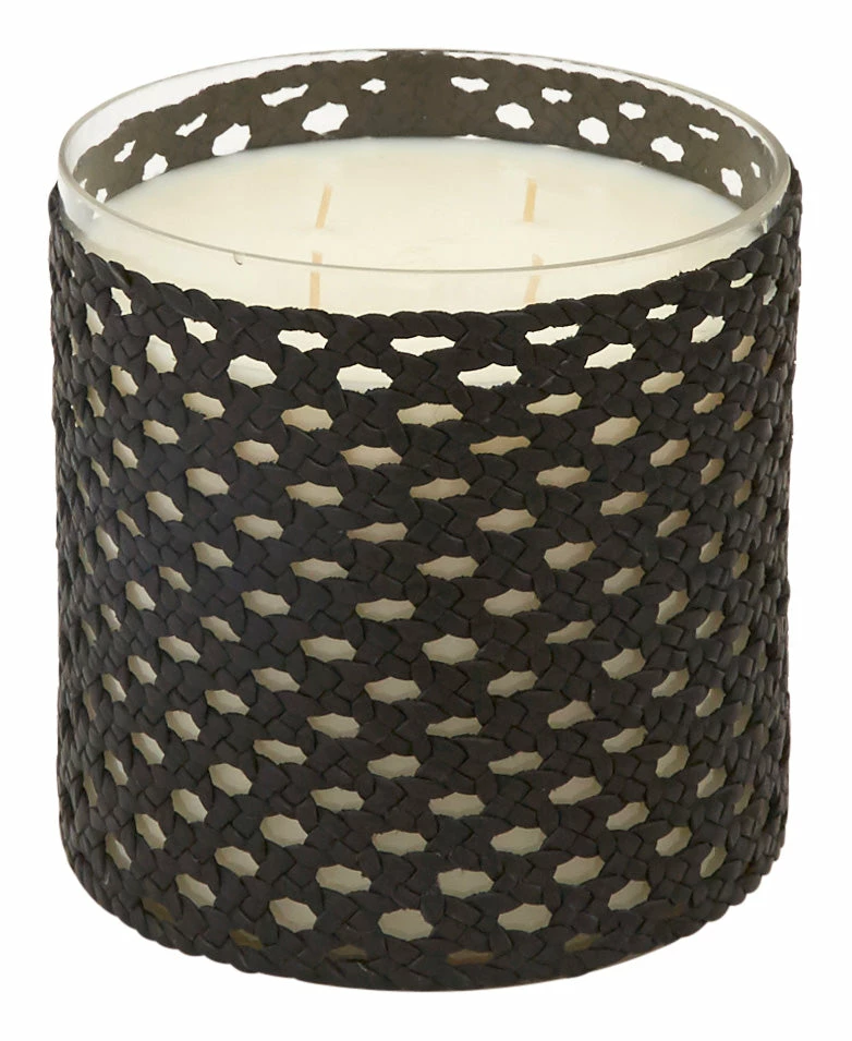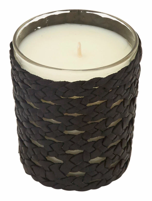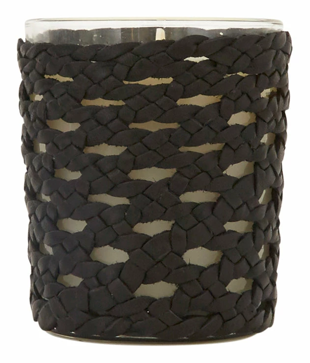 •recycled glass jar wrapped in woven black leather