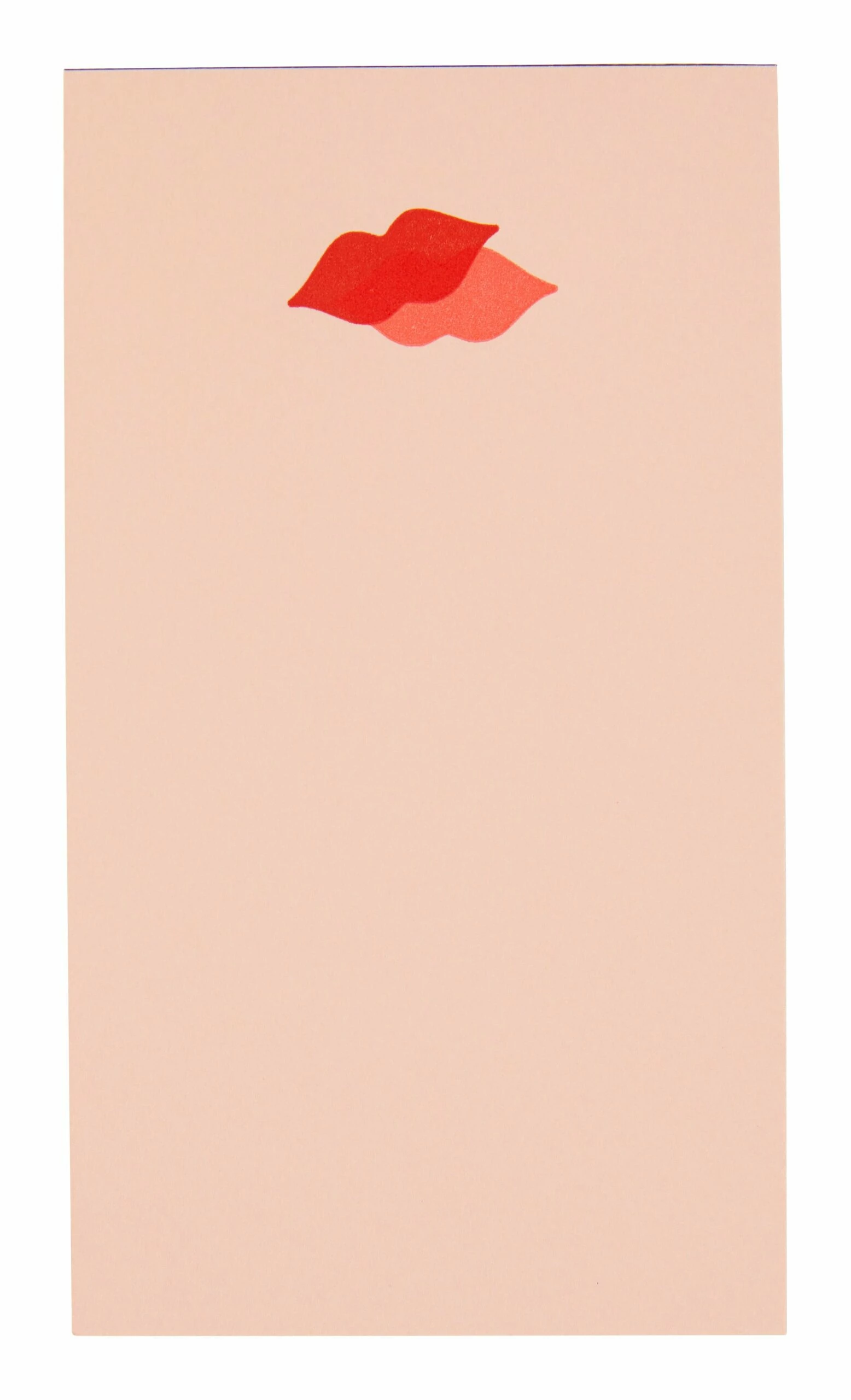 Leave a sweet message to your S/O with our Mouths Mini Notepad. Crafted in Brussels, this blank pad features forty-five sheets of pale pink paper, each decorated with a letterpressed pair of lips using bright red ink and bound together with a matte gold glued edge. Sure to add a charming pop of personality to any workspace, our Mouths Mini Notepad would be perfect for penning a quick reminder, copying important info at your next meeting or jotting down a grocery or daily to-do list.