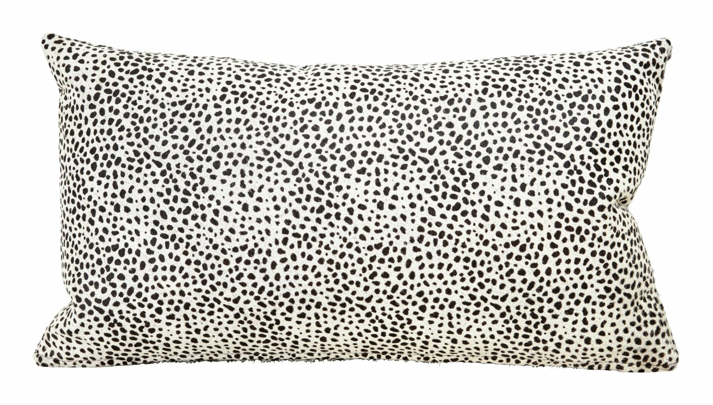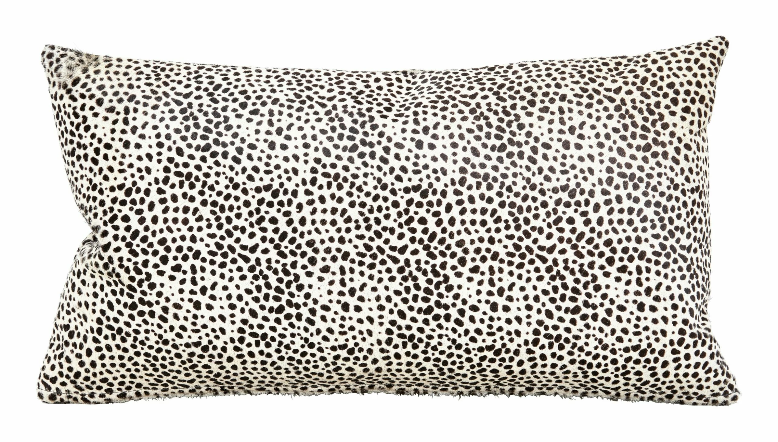 Take a walk on the wild side with our chic Nairobi Pillow. A fresh spin on classic animal prints, this lumbar pillow is crafted from white cowhide stenciled with small, organically-shaped black spots. We’ve finished it with a hidden zipper closure and a soft down and feather pillow insert for a plush feel. The perfect finishing touch for any sophisticated, modern space, we love Nairobi on a solid-colored sofa or bed or mixed in with other layers on the bed for a charming pop of pattern.