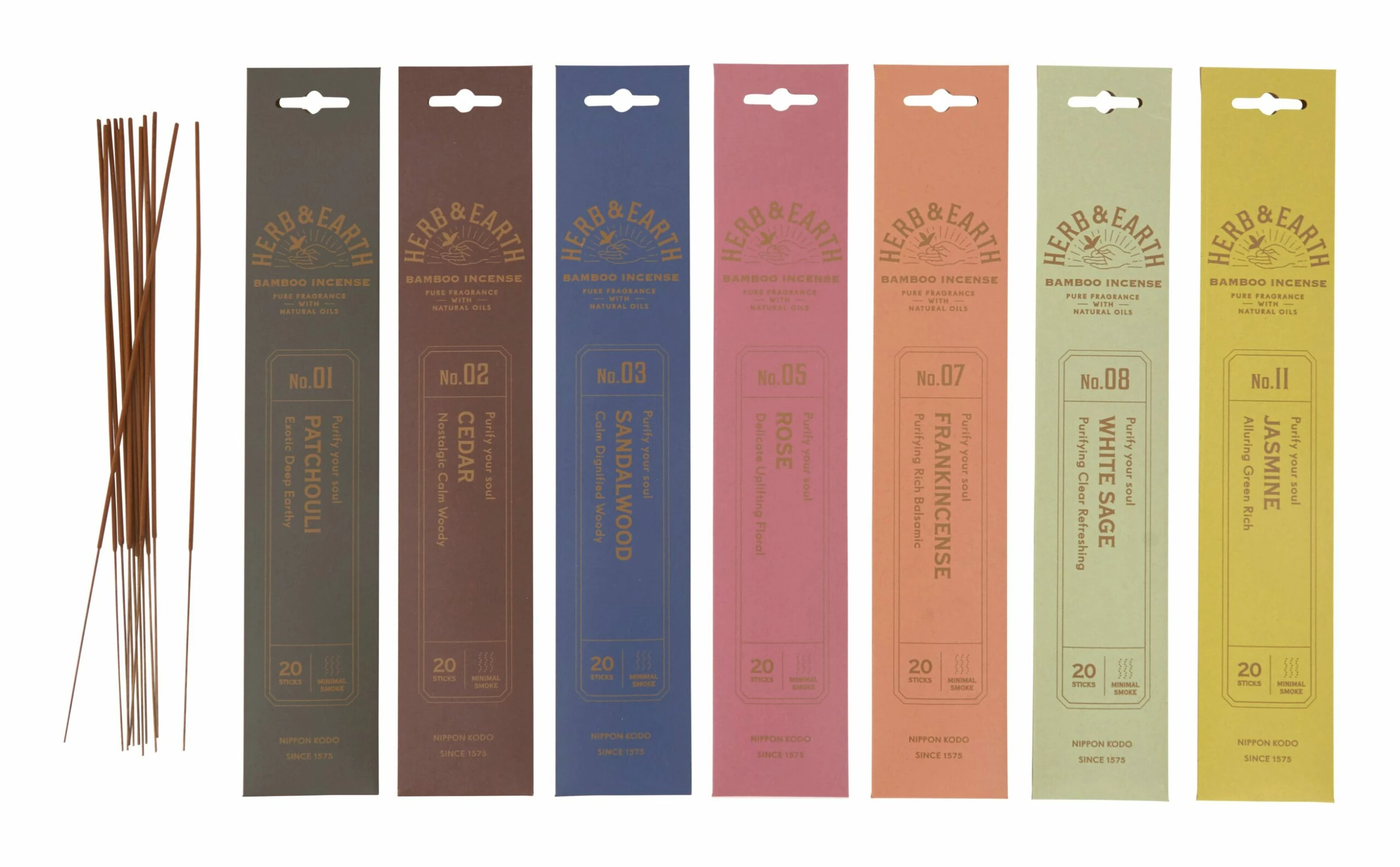 Fill your space with the enchanting scents of our Nippon Kodo Incense. A piece of Japanese history, these incense sticks are crafted using four hundred year old skills inherited from Takai Juemon, a 16th century artisan who supplied incense to the emperor and his court in the Tensho era. Following some of these original formulas, each stick is crafted from bamboo wood and infused with a carefully selected and sustainably sourced blend of natural aromatic oils. This unique material produces less smoke when burned, allowing more of the pure fragrance to shine through. Sure to refresh any room of the house, choose from seven classic scents.