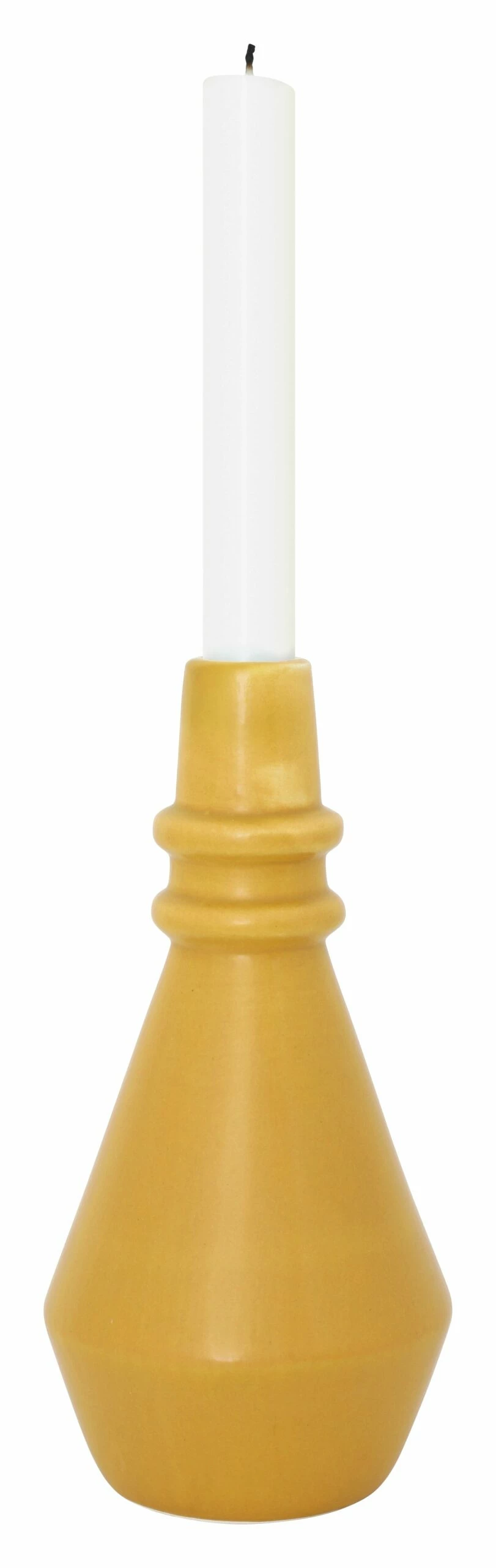 Bring a bold pop of color to any tabletop vignette with our Oriole Taper Holder. Crafted from stoneware, this vessel pairs a simple, angular shape with a bright mustard yellow glaze. Perfectly sized to hold a standard taper, go with a neutral candle for a classic feel or pair Oriole with a contrasting but equally vibrant hue for a more eclectic vibe. We also love it as a bud vase filled with a few stems.