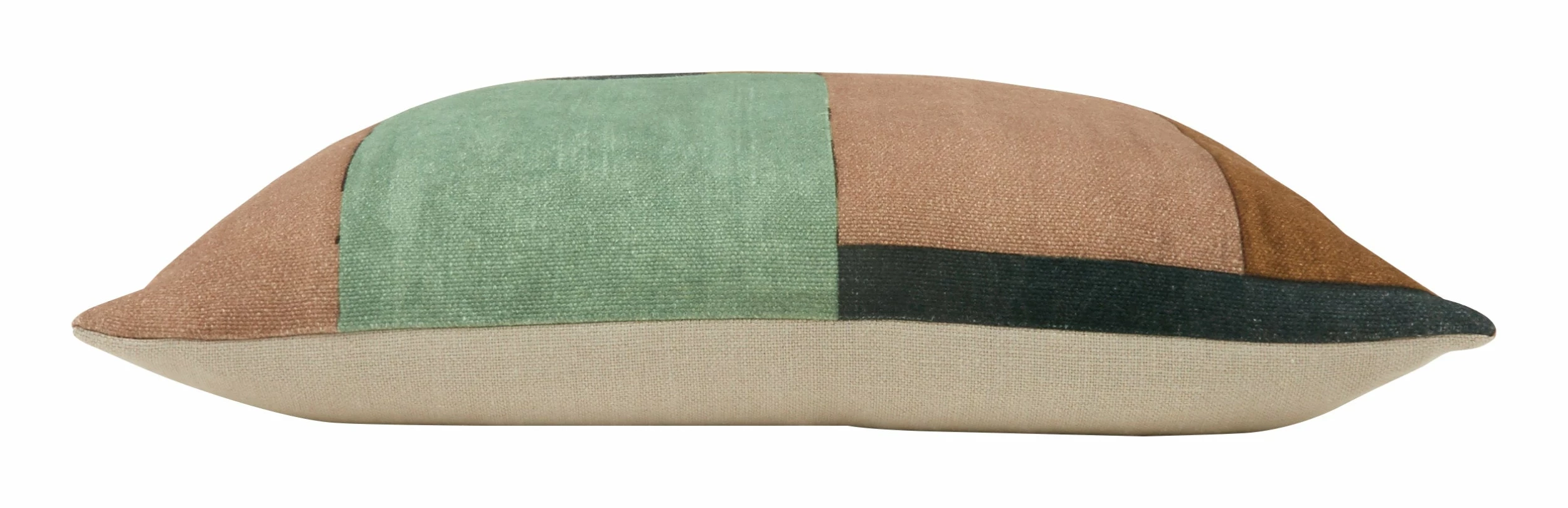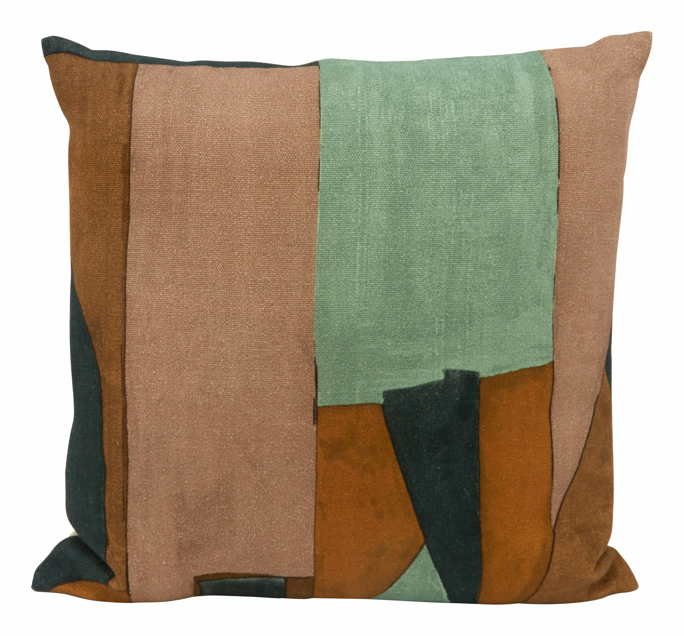 A chic study in color and form, our Piece Tobacco Pillow is certain to stand out wherever it goes. Inspired by the Cubist art movement of the early 20th century, Piece is patterned with oversized abstract shapes in a fresh palette of black, pale green, soft pink and warm shades of brown. It’s finished with a neutral linen backing, a hidden zipper closure and a plush down and feather insert. Perfect for bringing a pop of geometry to a solid colored sofa or chair, we also love Piece mixed in with other pillows in similar hues.