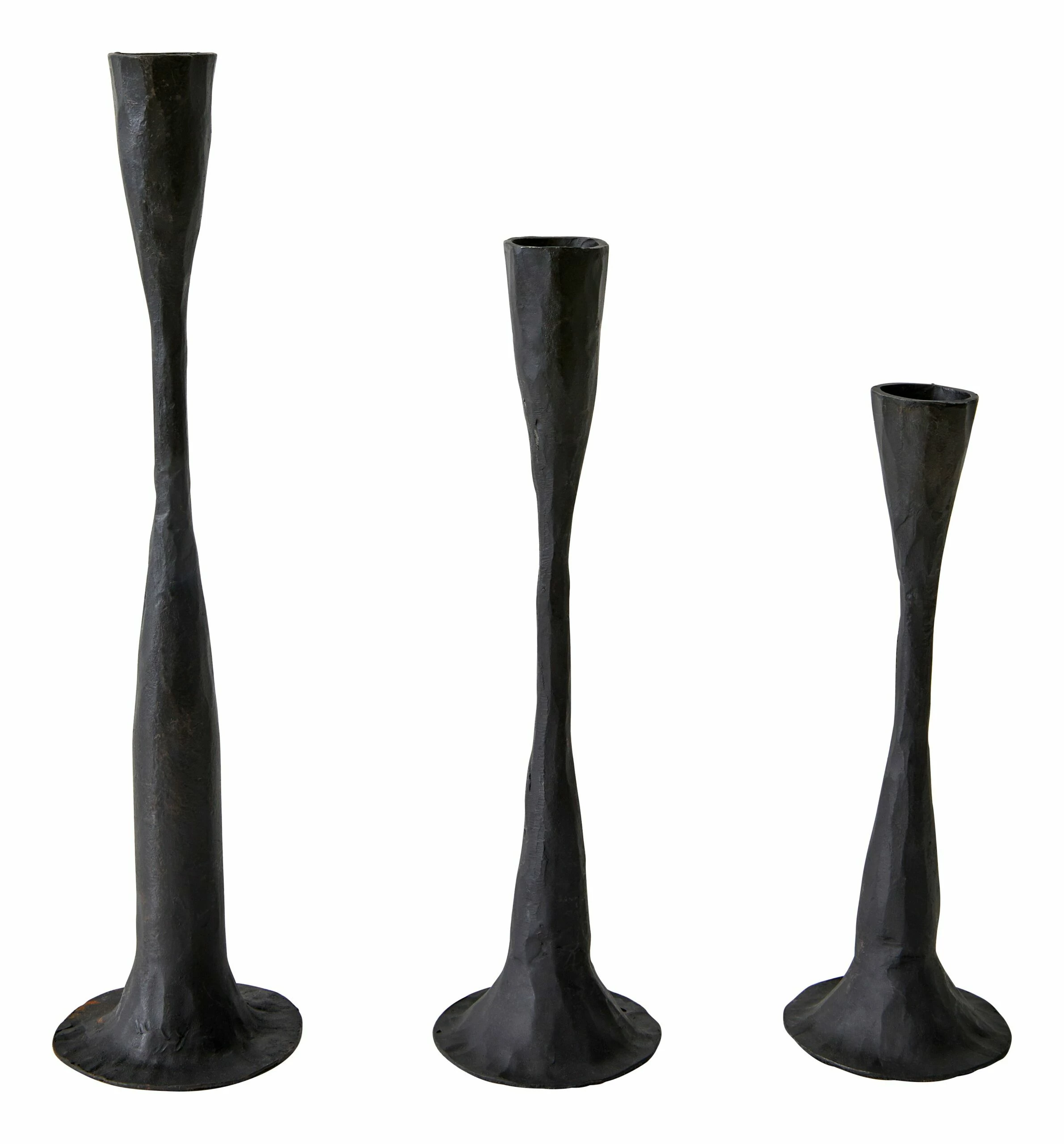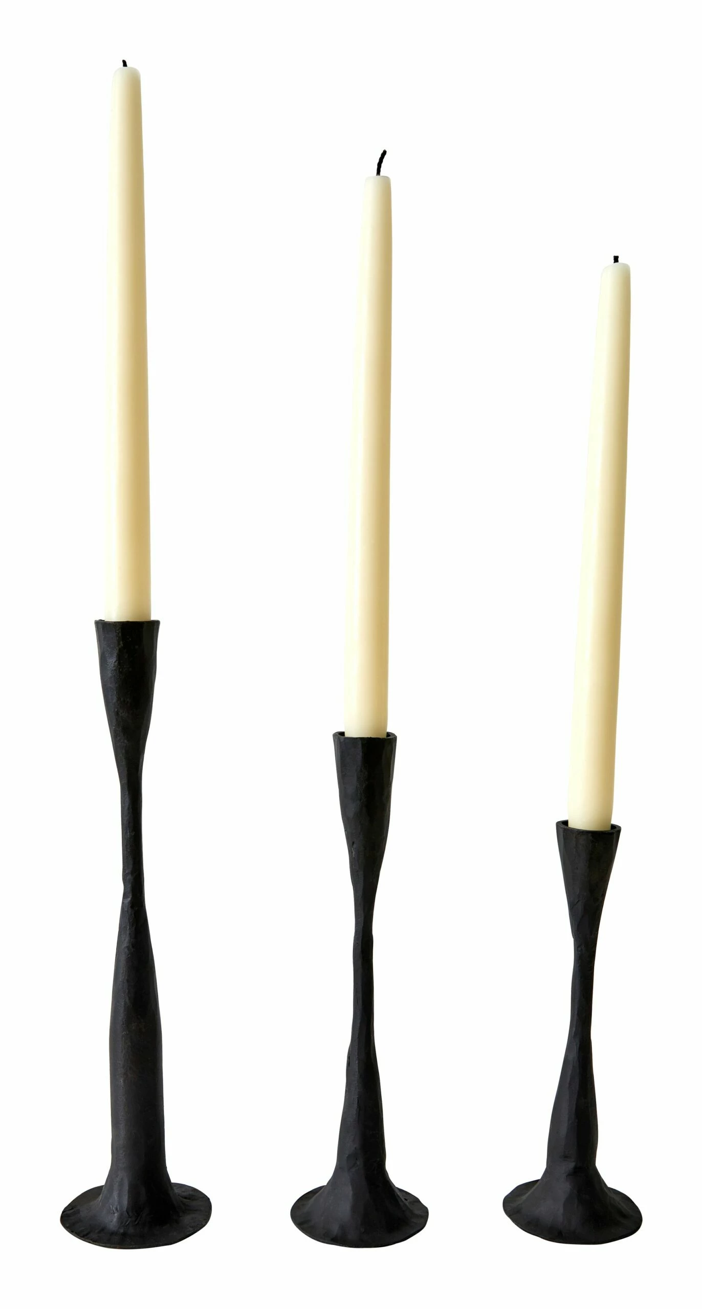 Set the mood for an evening in with the help of our classic Reagan Taper Holders. Simple in design, these candle holders are crafted from black iron into slim, hourglass-shaped silhouettes with a rustic, rough-hewn feel. Perfectly sized to hold a standard taper candle, our Reagan Taper Holders would be great in multiples on the dining table, where they can cast a cozy, flickering glow on whatever you’re serving up.Â