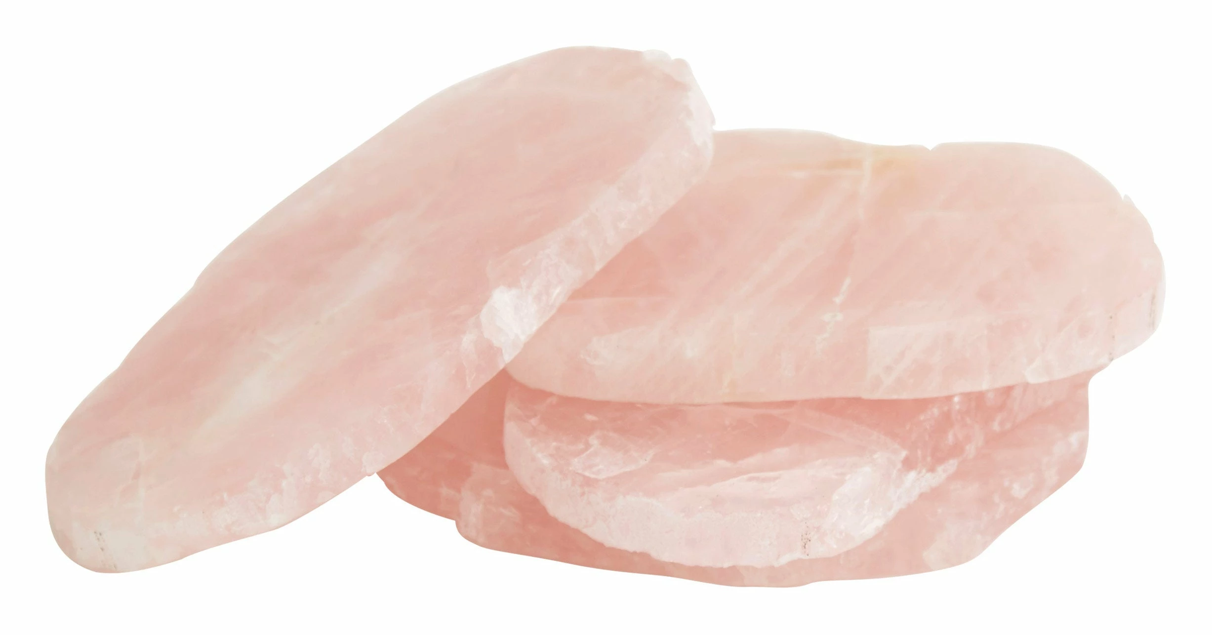 Add organic beauty to your tabletop with a set of our stunning Rose Quartz Coasters. These unique drink rests are cut from partially translucent, semi-precious gemstones and polished to a smooth finish, enhancing their gorgeous pale pink hue. For a touch of contrast, their textured rocky edges have been left untouched. Perfectly sized for a cocktail glass or mug, we think they’re pretty enough to be left out on the coffee table or bar even when you’re not putting them to use. A centuries-old symbol for love, healing and peace, a set of these natural beauties would also make a thoughtful gift to your special someone. With natural colors and forms crafted by nature, each of our Rose Quartz Coasters is truly one-of-a-kind.