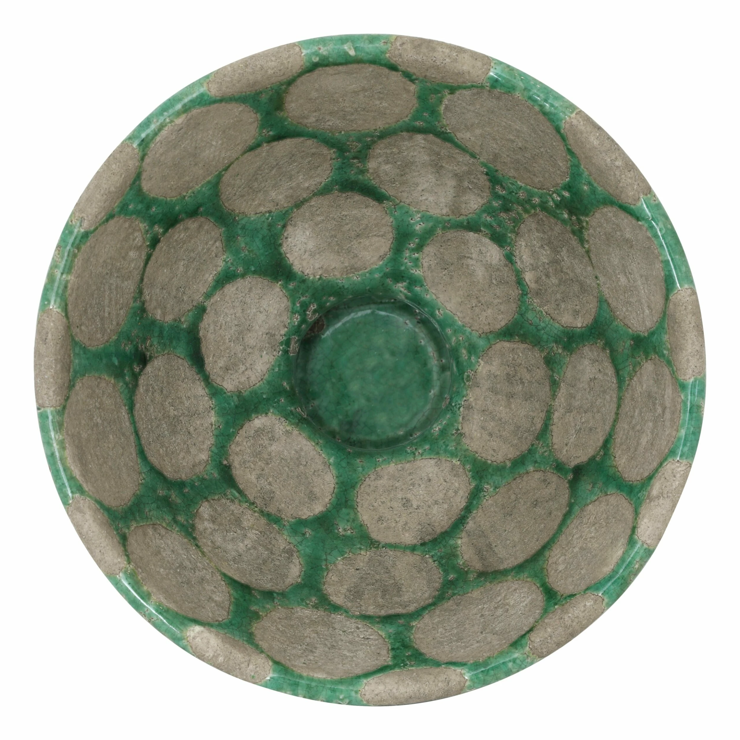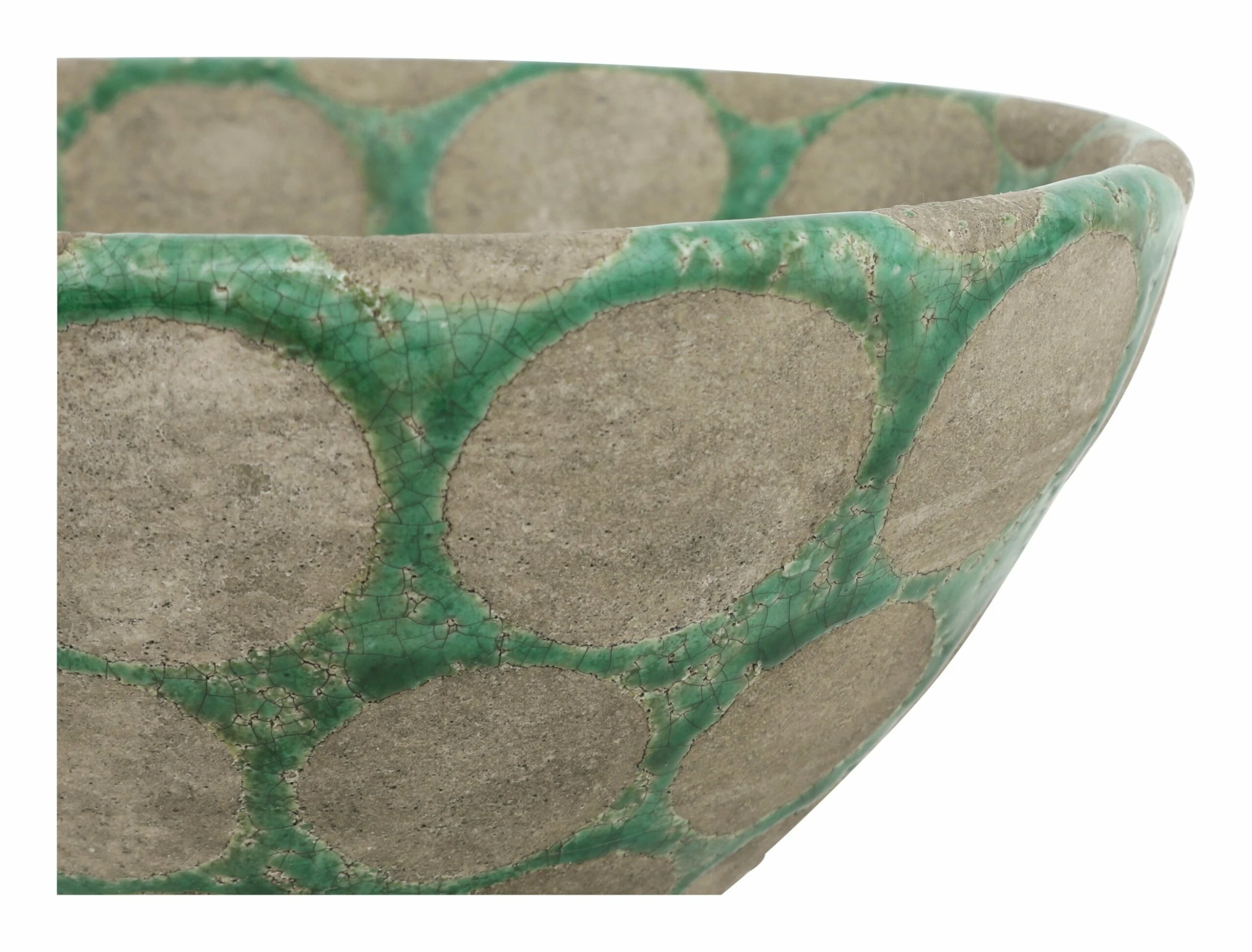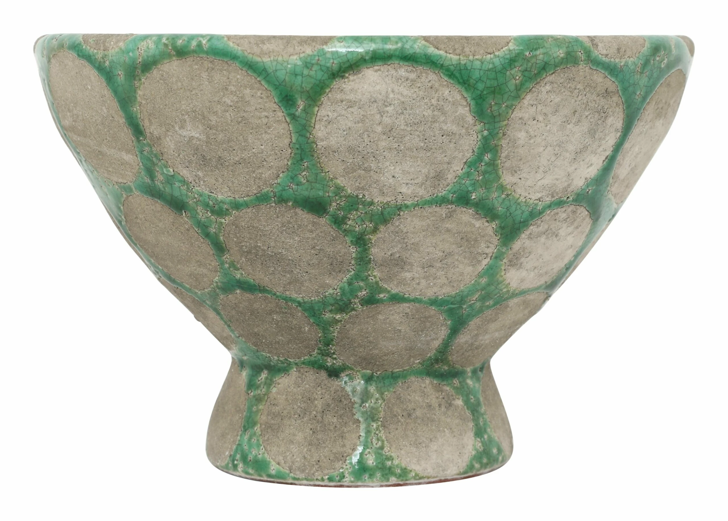 Add a rustic-modern feel to any room of the house with our Spot Footed Bowl. Inspired by mid-century pottery, this versatile vessel is handcrafted from raw grey clay, paired with a glossy, bright green glaze to create striking contrast and a charming polka-dotted pattern. With its simple shape and earthy texture, Spot would be perfect all on its own but even better filled with a display of citrus fruits on the bar or an arrangement of feather moss and cut echeveria. We also love it bringing a pop of color to the entryway table as a catchall for keys.