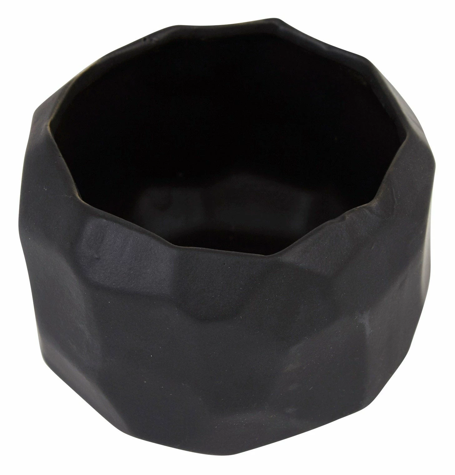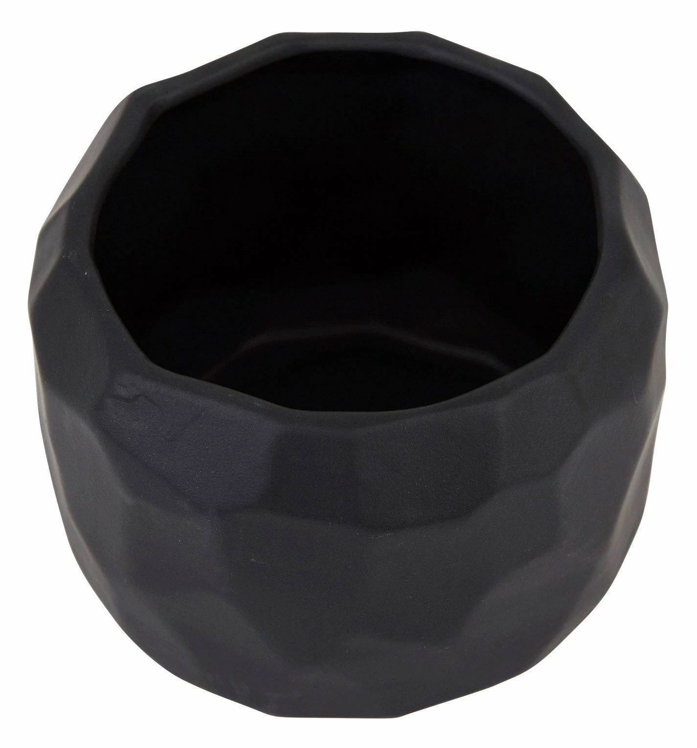 Our ceramic Stark Pot features a faceted design with a saturated matte black glaze. A floral arrangement of whites and greens would be an absolutely stunning contrast.