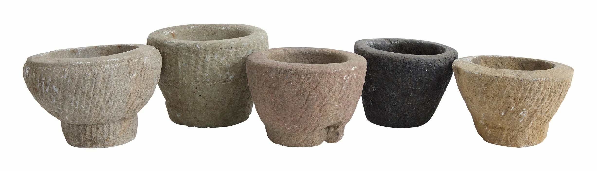 Our textural Stone Mason Bowls come to us from India, where they were hand carved from natural stone. We think one of these petite dishes would make a lovely addition to a rustic tabletop as a salt cellar or sugar bowl. They’d be equally useful on a desktop or entryway table as a perfectly weathered catch-all with a global feel. True handmade artifacts, each of our Stone Mason Bowls are unique in shape, color and organic details.