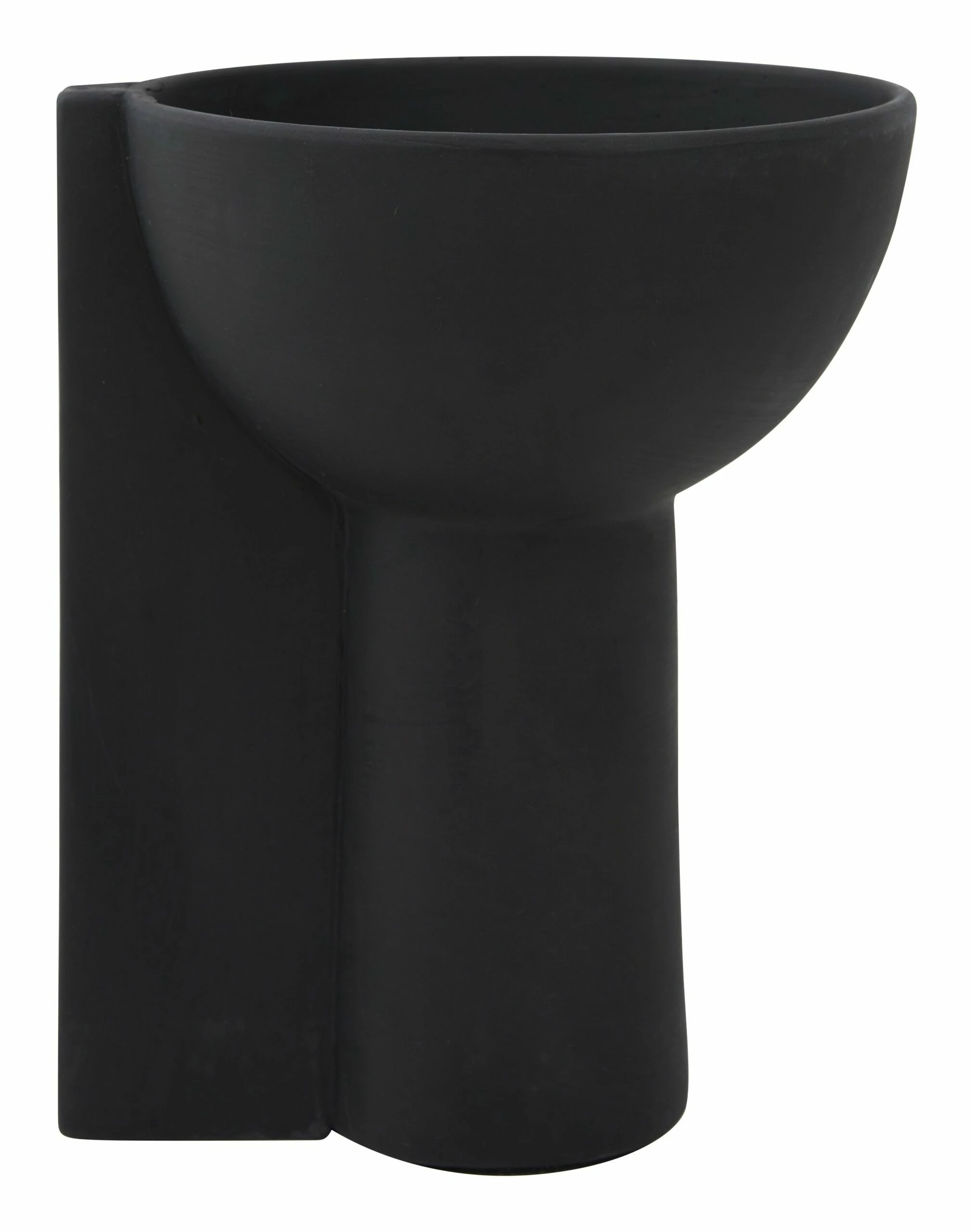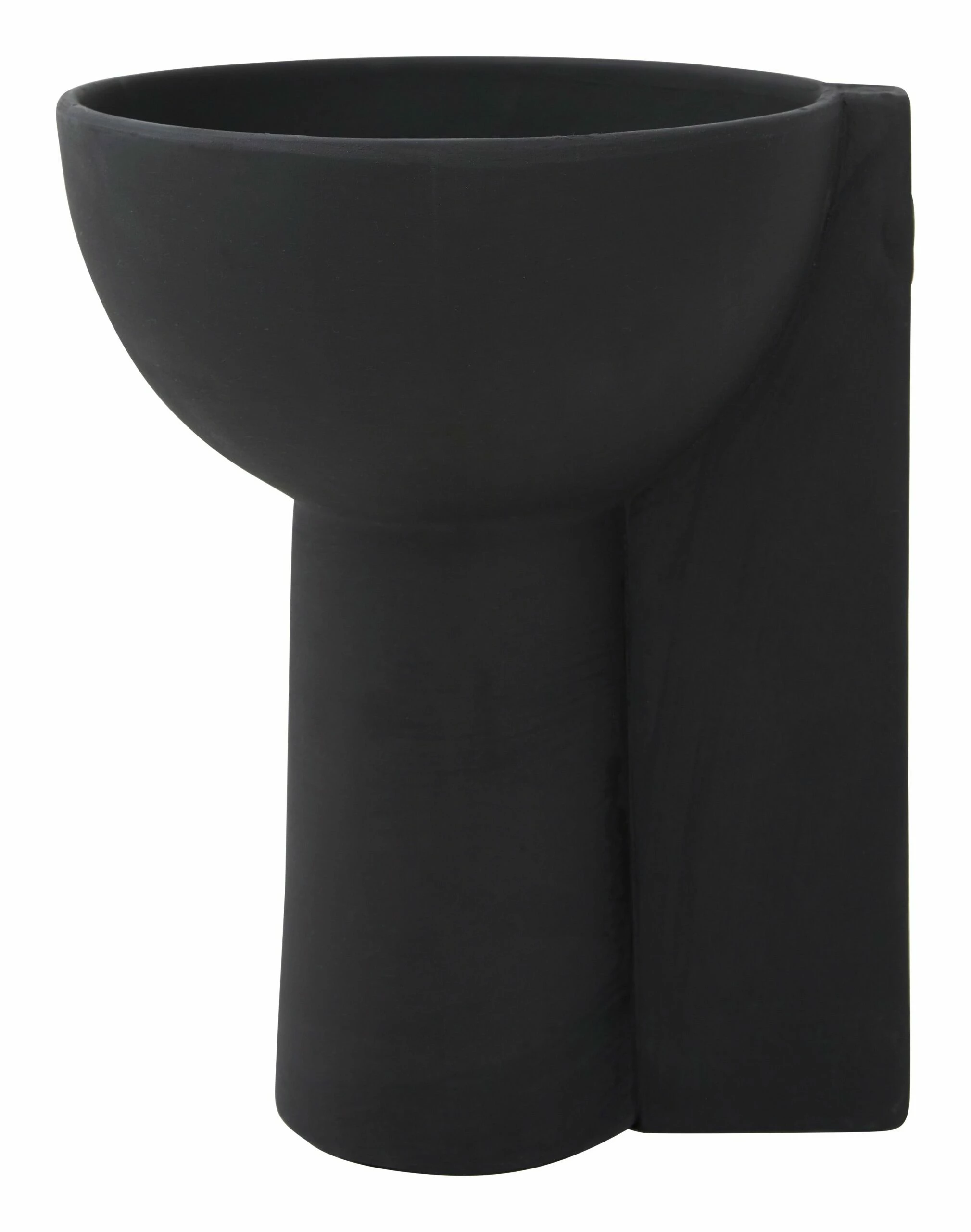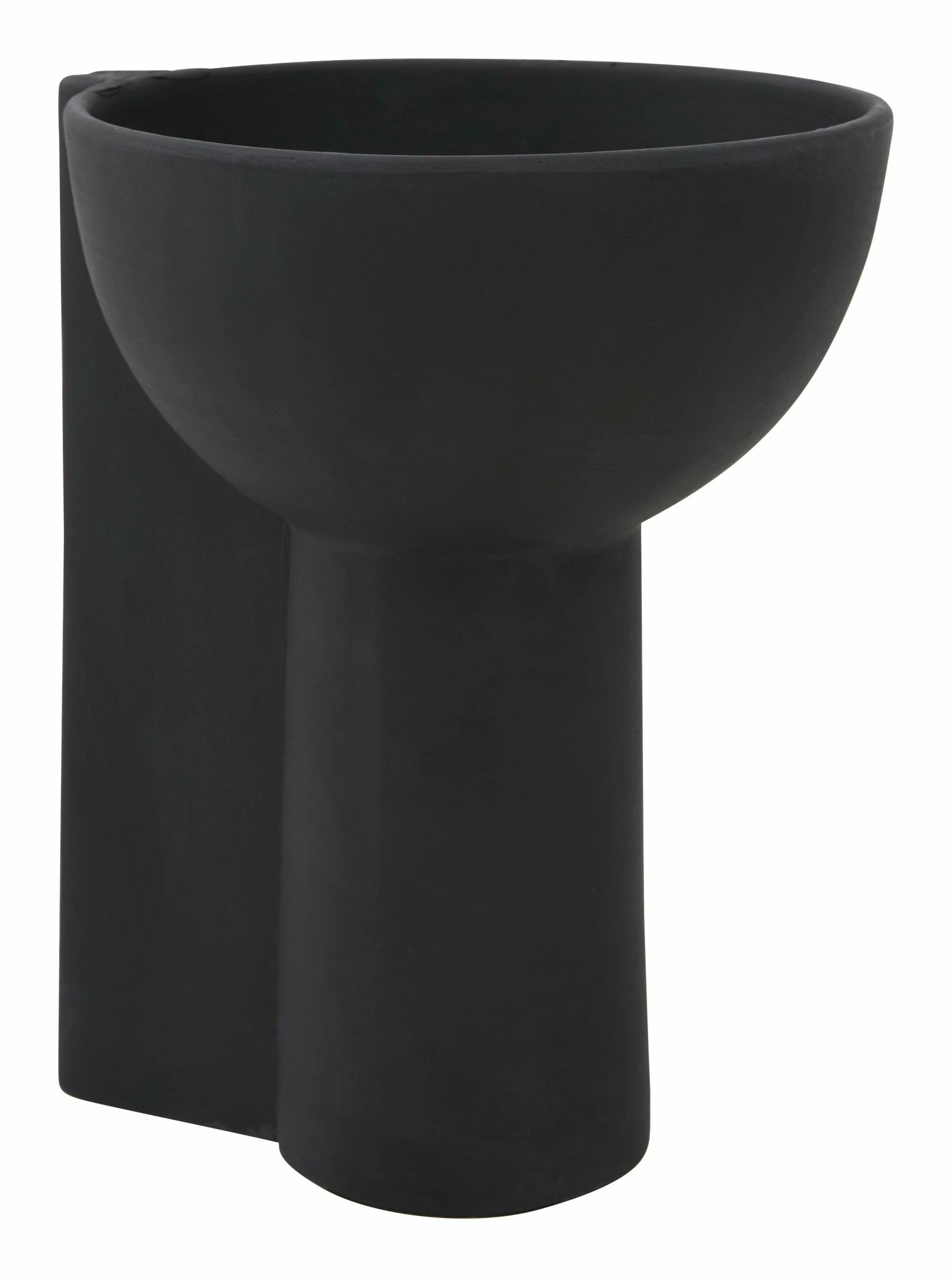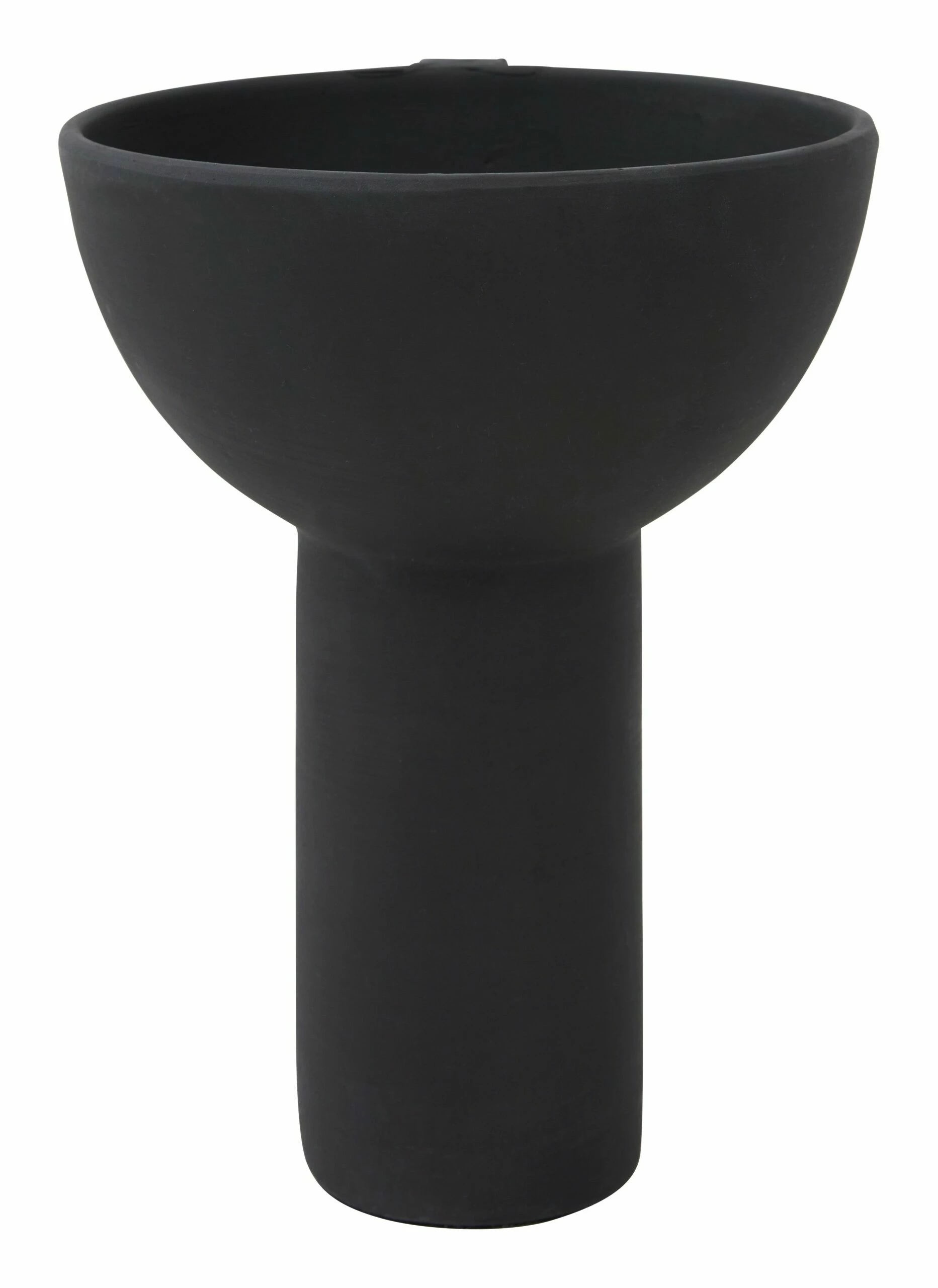 Instantly elevate any tabletop vignette with our simple yet bold Titus Compote. Crafted from terracotta, this Brutalist-inspired vessel pairs a classic pedestal base with a vertical, blocky form, all of which is coated in a matte black glaze. A true statement-maker all on its own, Titus is sure to command attention standing solo on a bookshelf but would also be great as a sculptural catchall dish on an entryway console or living room sideboard. We also love it filled with a low-maintenance arrangement of cut moss and air plants for an effortless dining table centerpiece.
