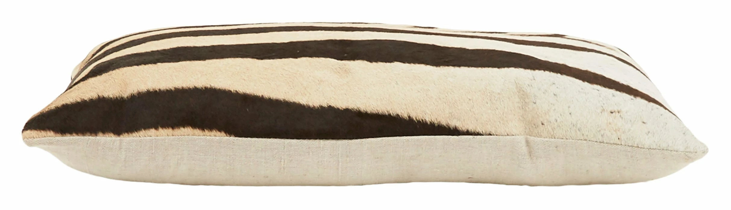 Add a safari-chic layer to your sofa with our textural Zebra Pillow. Handcrafted in South Africa, this exotic beauty features a genuine zebra hide front, paired with a neutral linen backing and filled with a plush down and feather insert. Perfect for a sophisticated pop of animal print, we love it on its own or mixed in with a herd of other pillows for an eclectic feel. Animal lovers, fear not — this hide is sourced only from registered conservation agencies and is the by-product of either natural death in the wild or responsible culling practices.